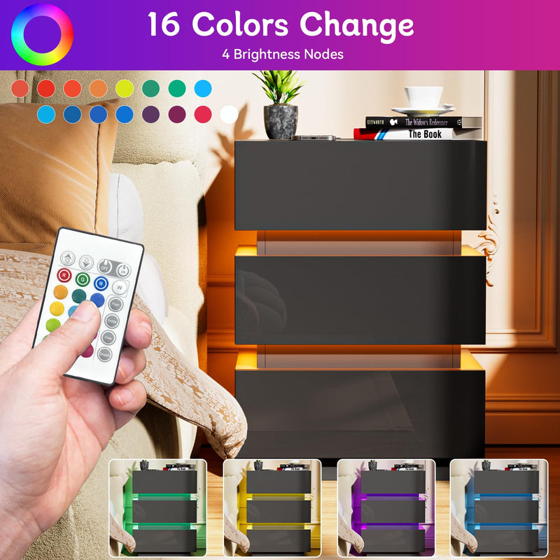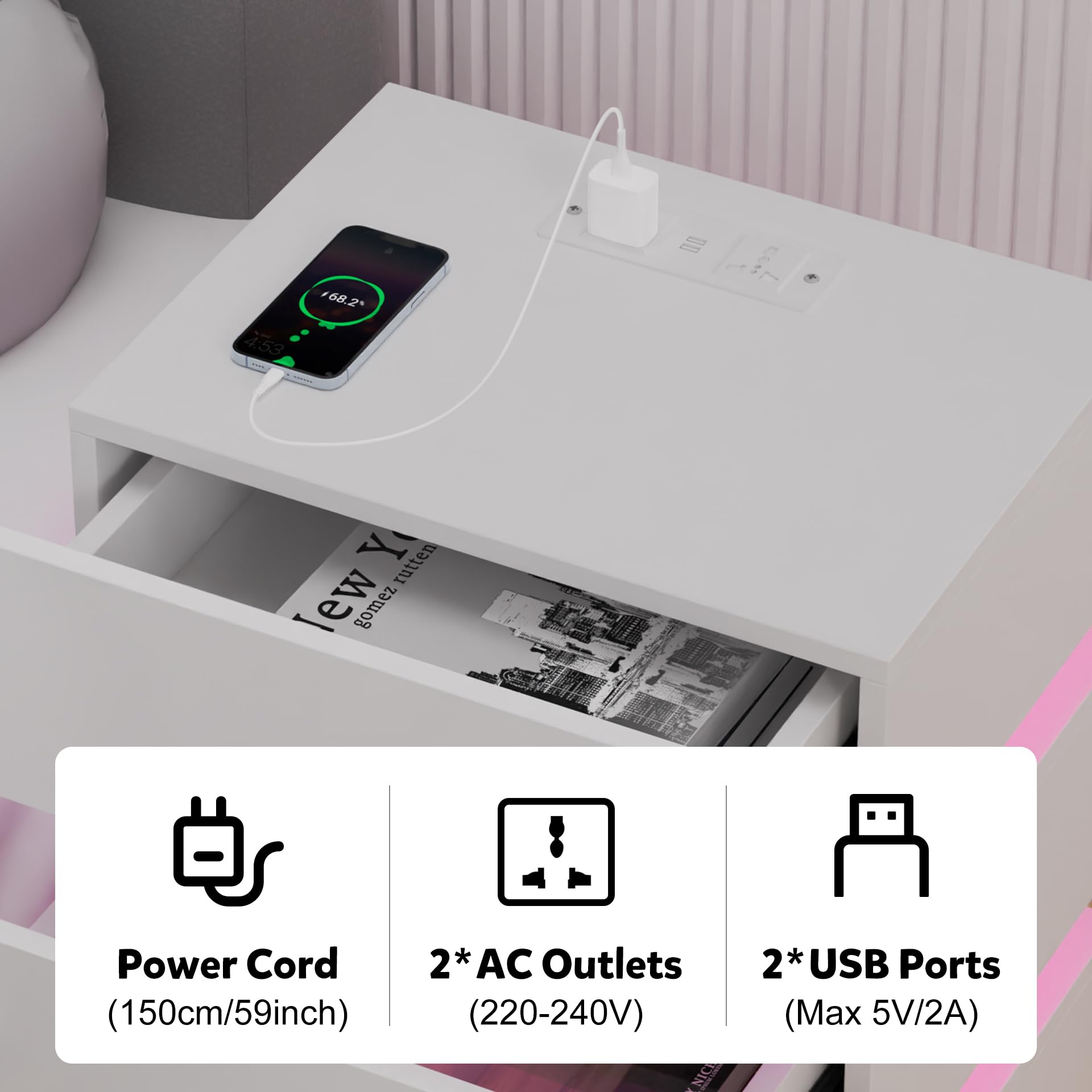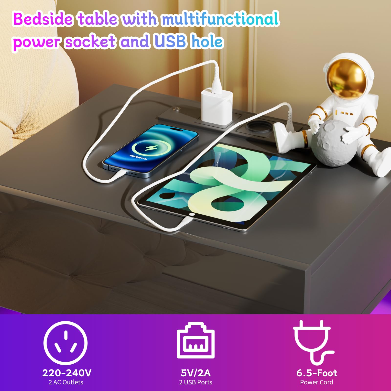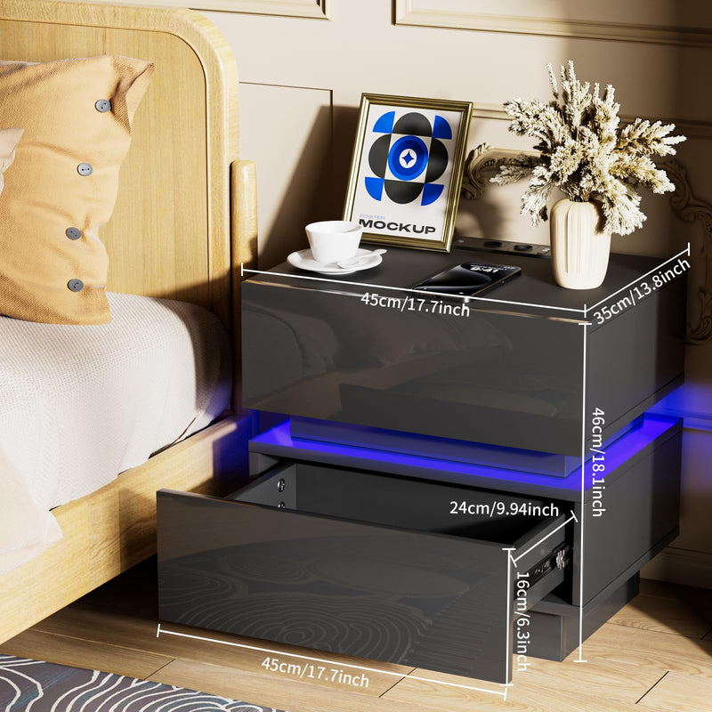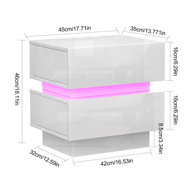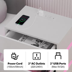 - 【Prise et ports USB】 - La table de chevet brillant est équipée d'une prise multifonction. La prise standard européenne dispose de 2 ports AC (220-250 V/15 A) et de 2 ports USB (5 V/2 A). Avec cette table de nuit avec fonction de chargement, les appareils mobiles tels que les téléphones portables, les tablettes, les lampes de table, les ordinateurs portables, les mini ventilateurs, etc. peuvent être facilement chargés.
