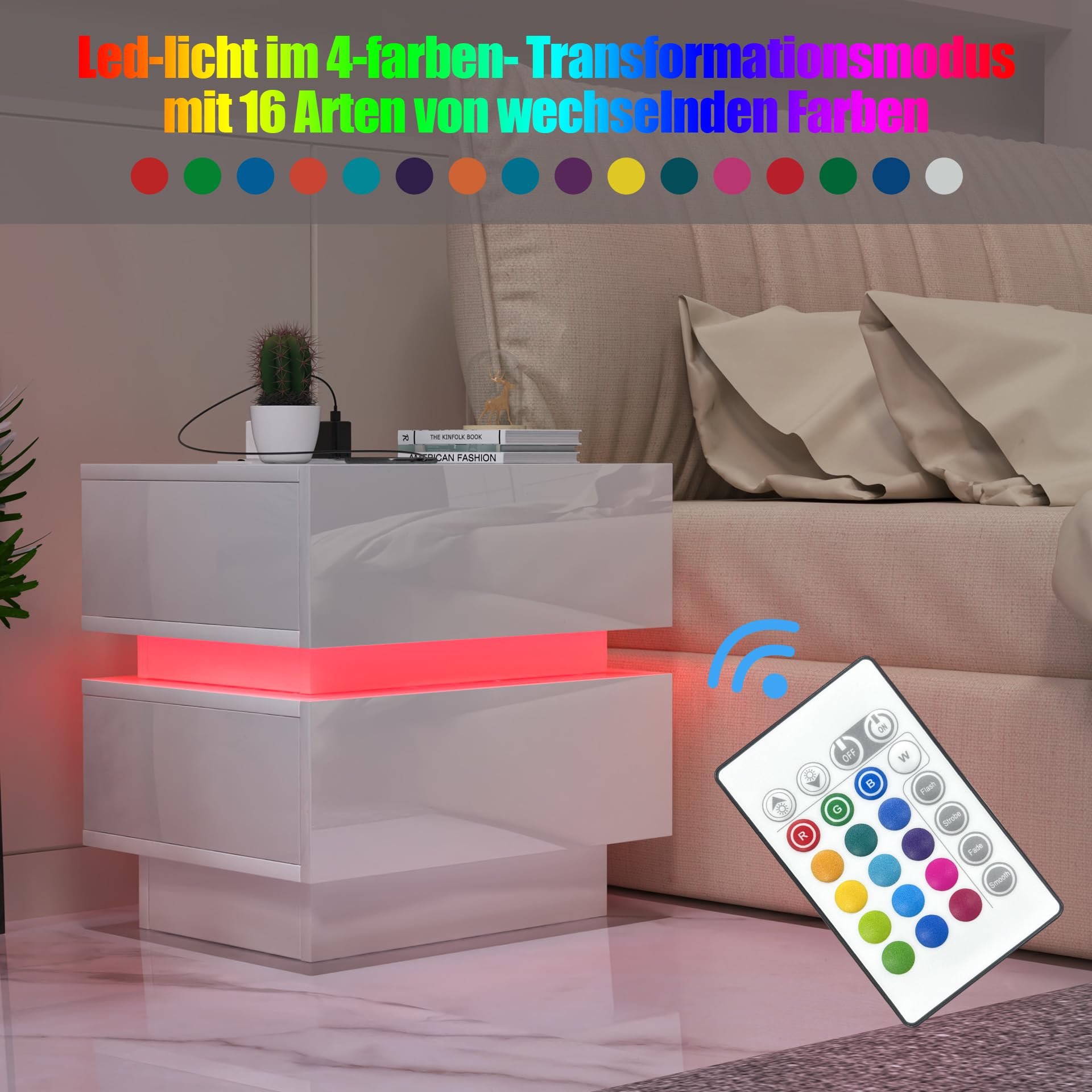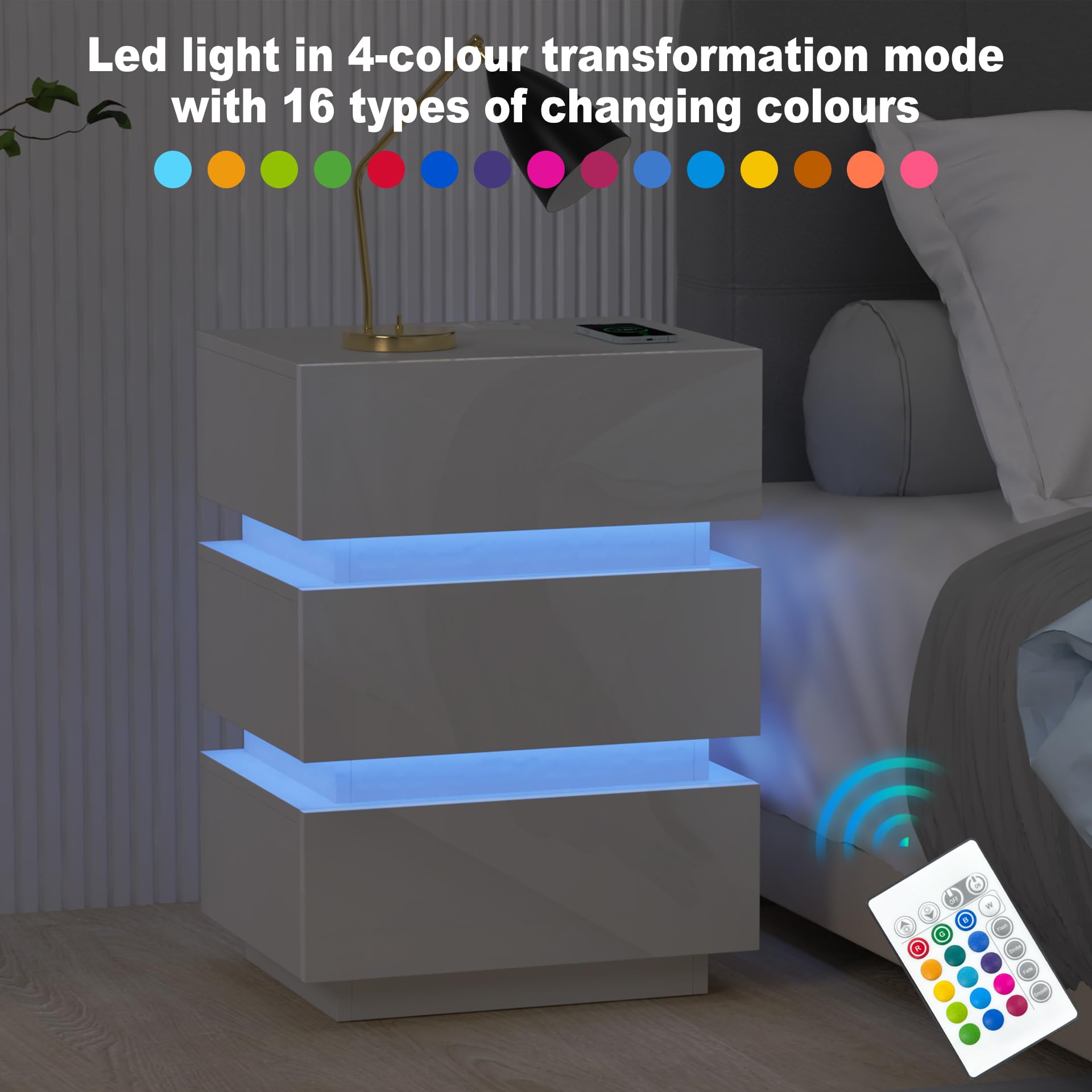 - 【16 Couleurs Réglables】- la table de nuit est livrée avec de belles formes de couleurs différentes. 16 couleurs changeantes, 16 réglages de vitesse, 4 modes de luminosité au choix. Pour des raisons pratiques, cette table de chevet prend en charge une télécommande infrarouge pour le contrôle.