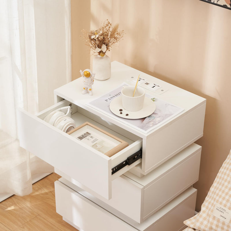 - 【Matériaux de Haute Qualité】- La table de nuit est fabriquée en panneau de particules de qualité E1 respectueux de l'environnement, qui est durable et a une surface lisse qui est très facile à nettoyer. La surface du tiroir est pourvue d'une finition brillante raffinée qui lui donne un aspect élégant et beau. Grâce à son design silencieux, la commode est silencieuse et silencieuse lorsqu'elle est tirée.