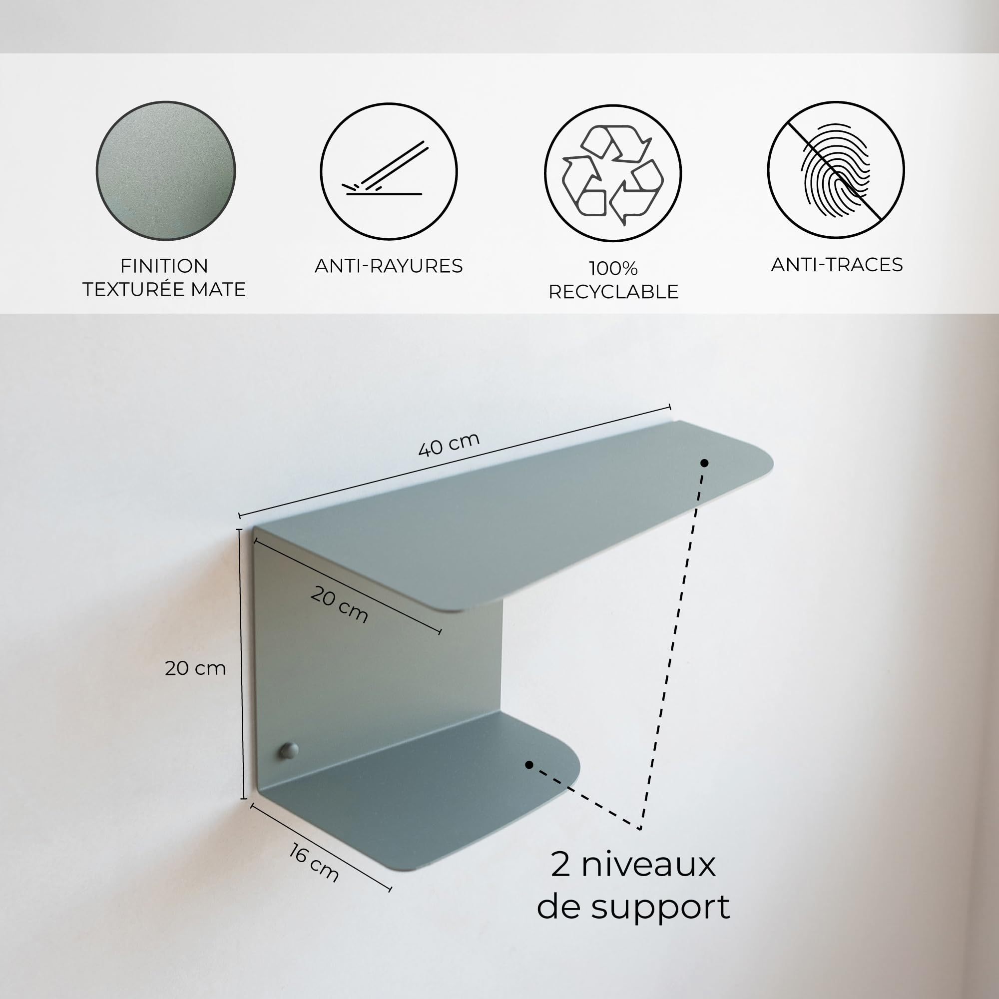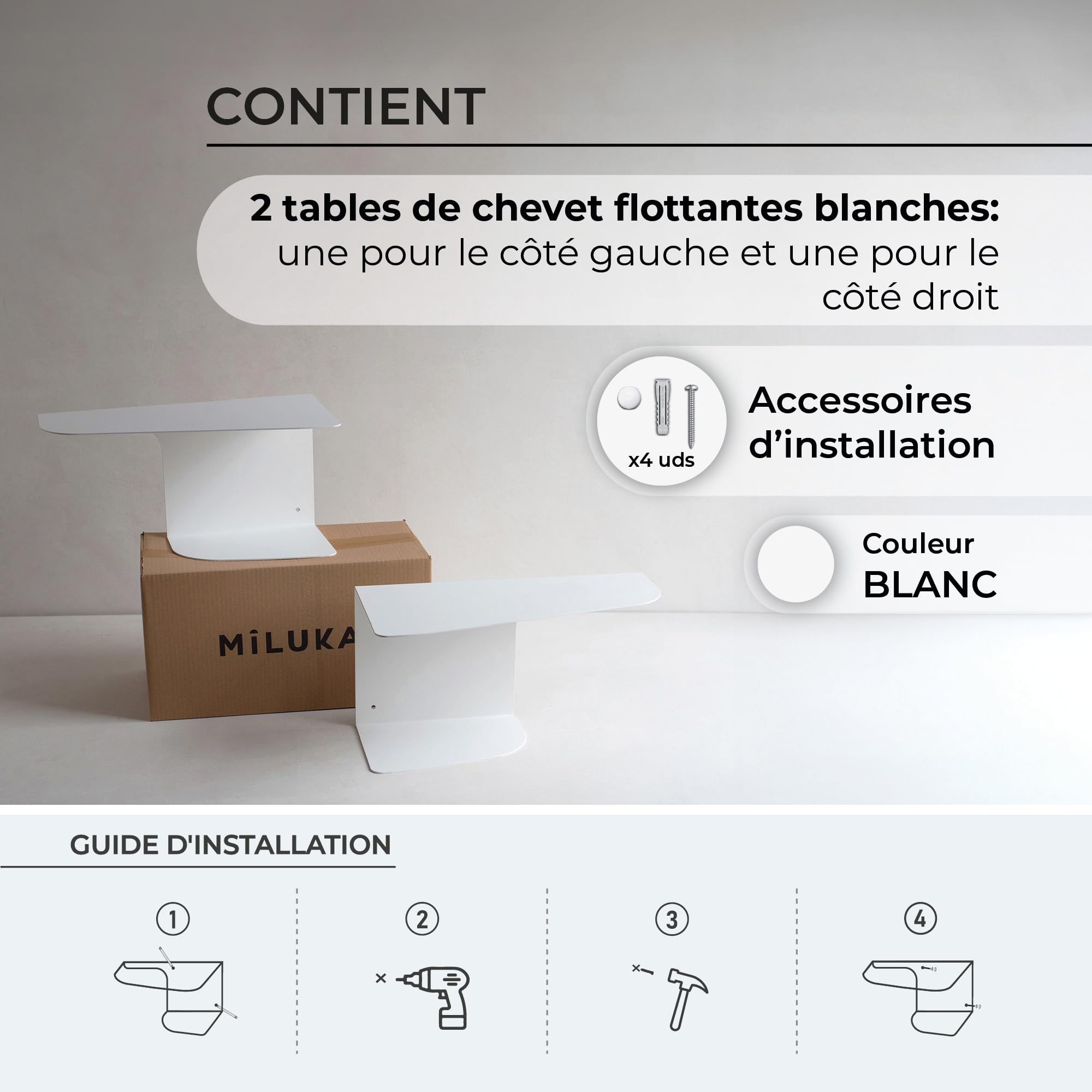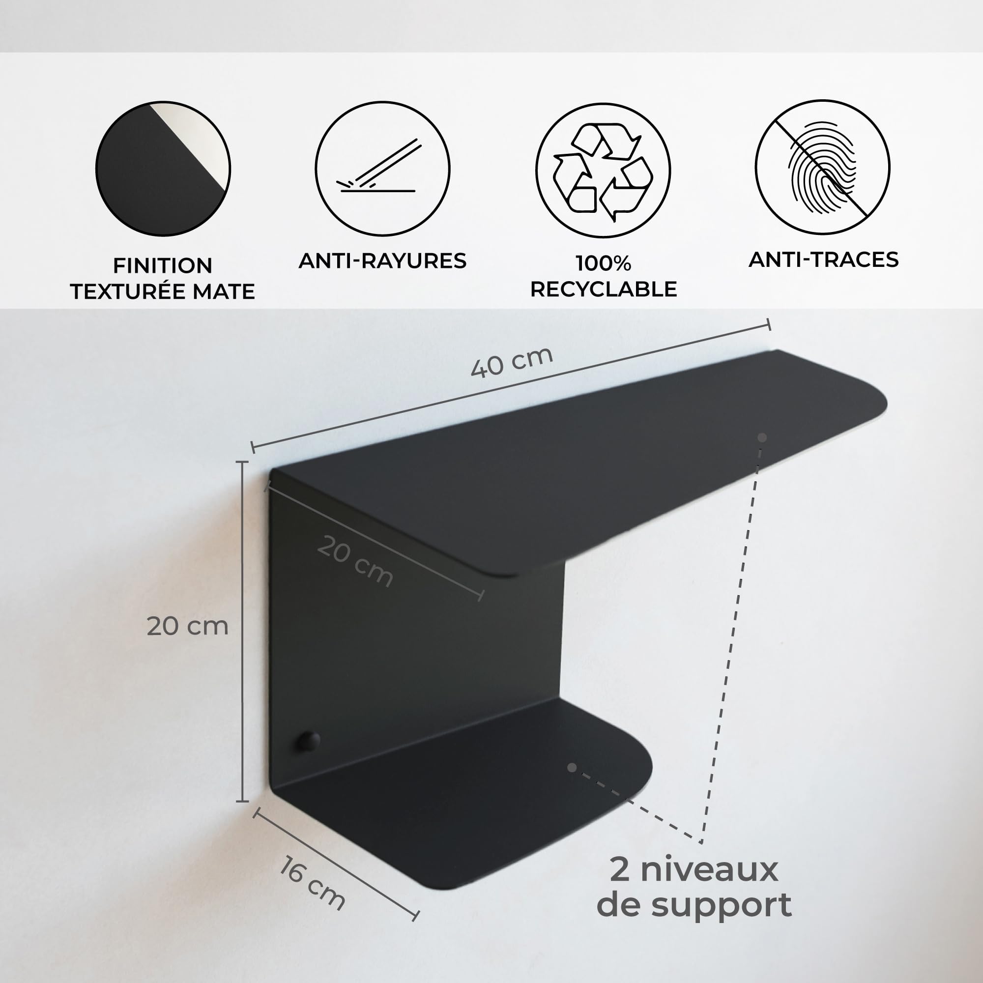 - Robuste et résistant : fabriqué en acier thermolaqué de haute qualité de 2 mm d'épaisseur. Chaque table de chevet flottante supporte 18 kg. Sa finition mate texturée apporte une touche sophistiquée, tandis que la surface anti-traces permet un entretien facile et prolongé