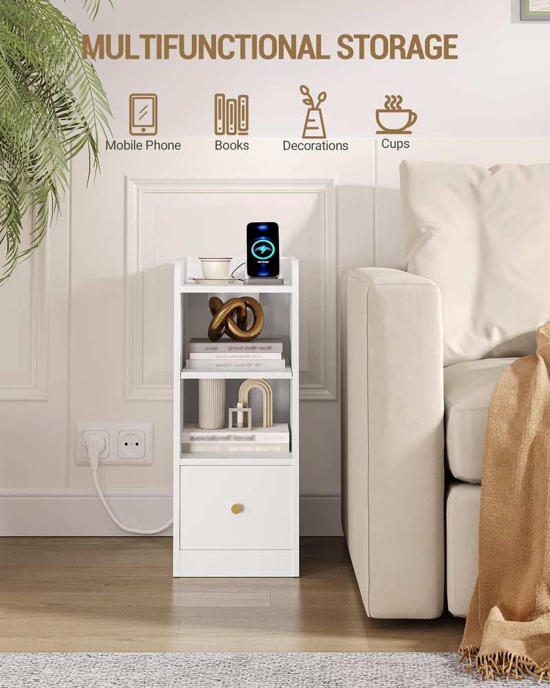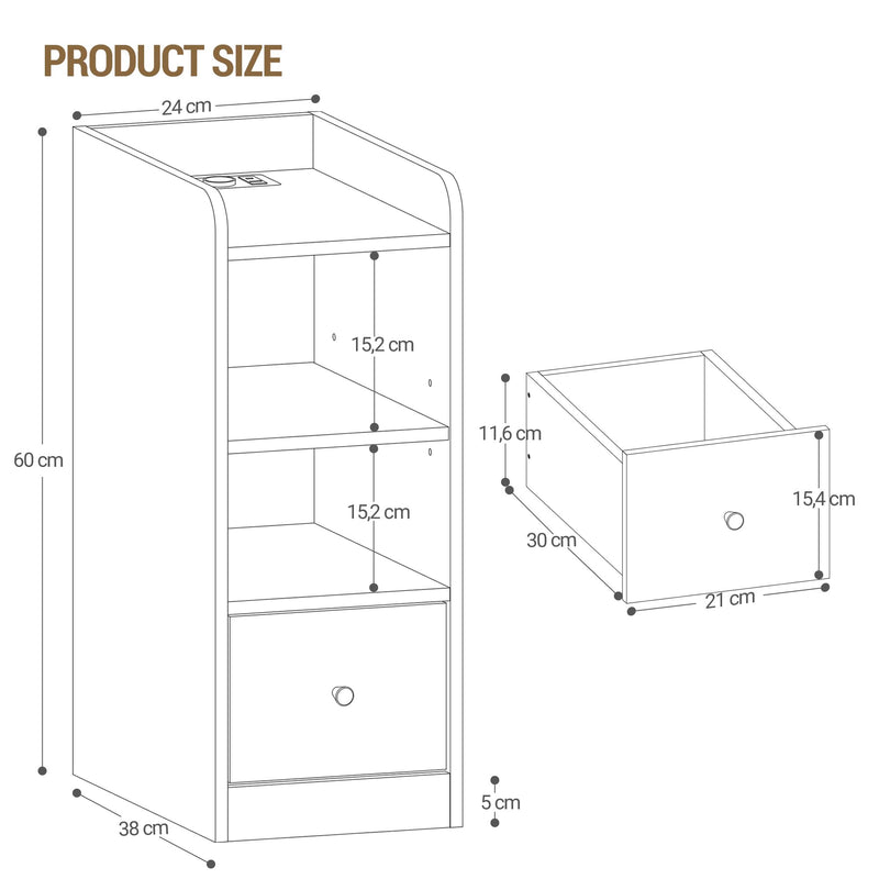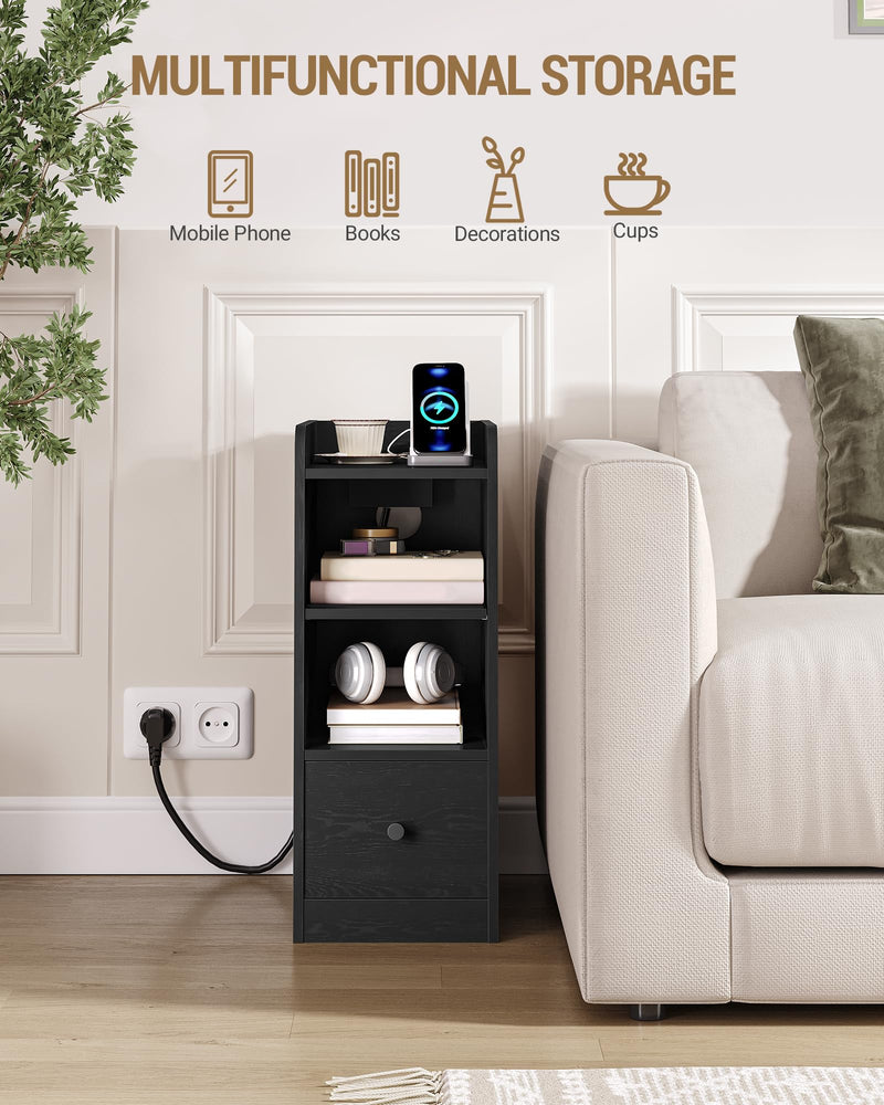 - 【Avec Prise de Charge】Cette table de nuit a plus qu'une simple fonction de rangement, c'est le compagnon idéal pour votre téléphone portable, votre tablette et autres appareils électroniques ! Lorsque votre appareil est à court d'énergie, il suffit de connecter la table d'appoint pour le recharger. Elle prend également en charge les ports USB et de type C, de sorte que vous n'avez plus à vous soucier des problèmes liés à l'incompatibilité des prises!