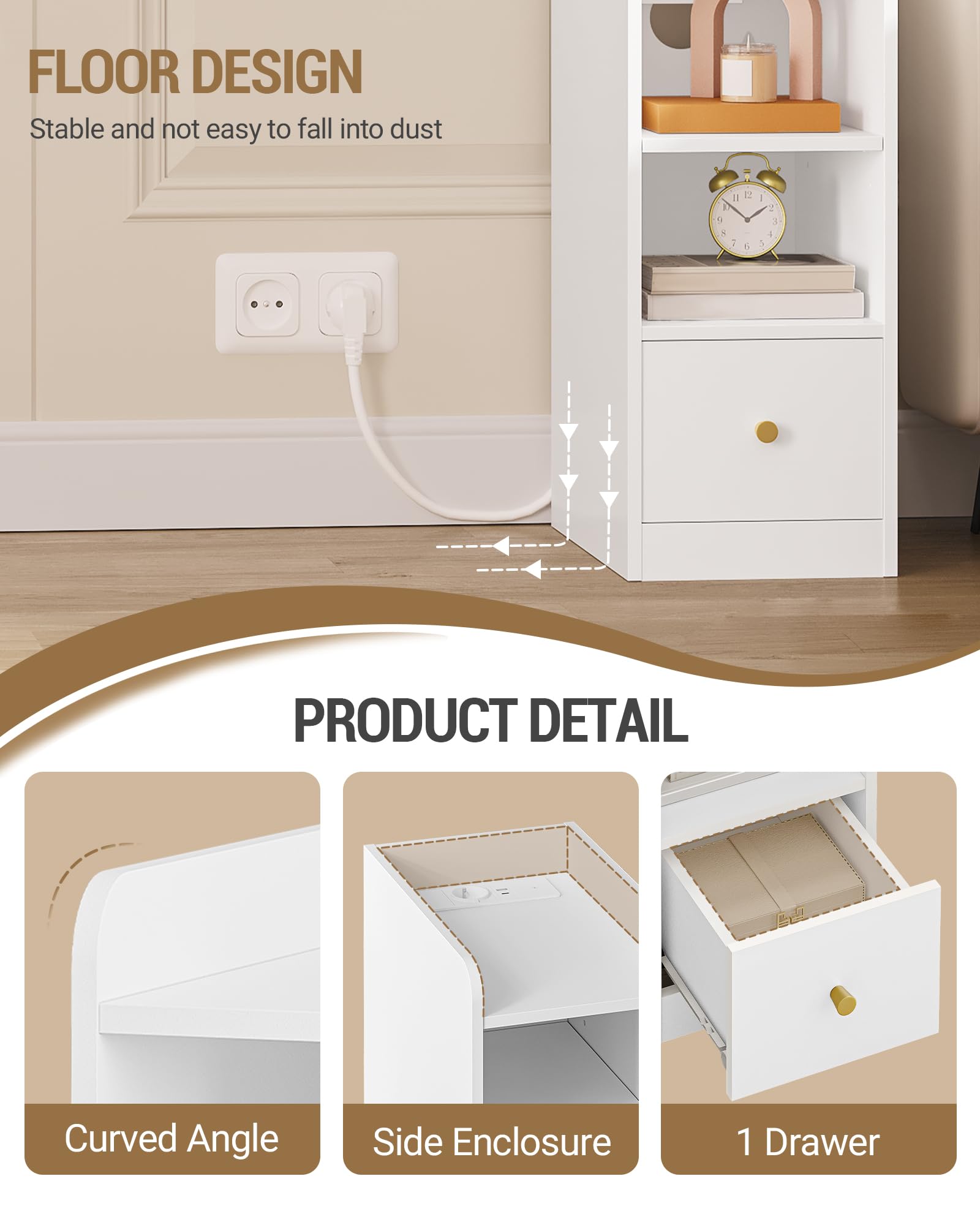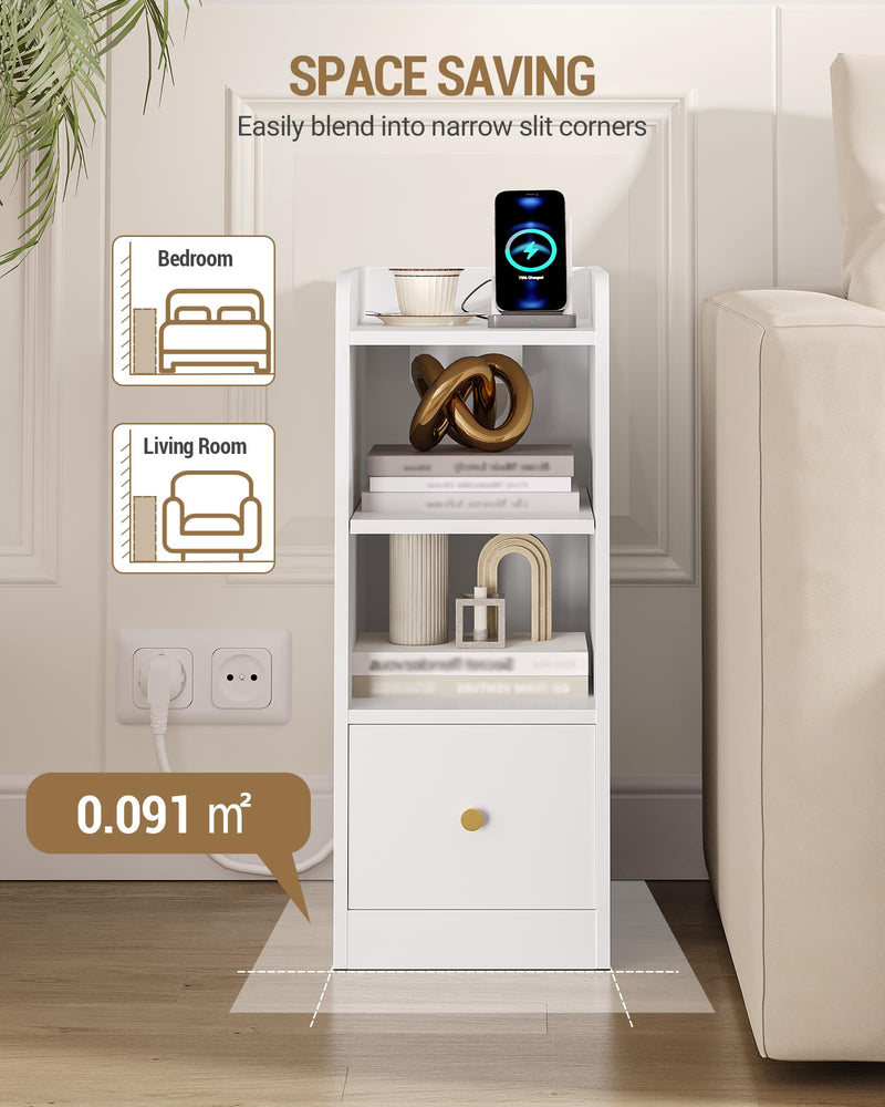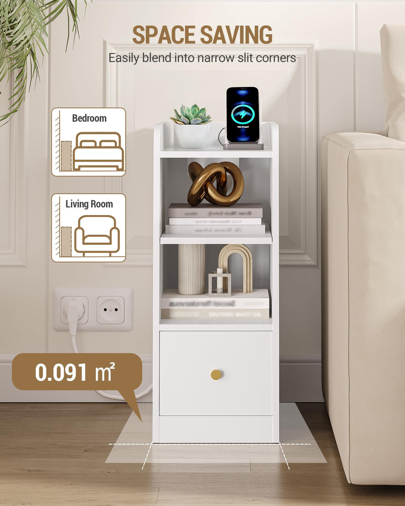 - 【Peu Encombrante】Cette table de chevet étroite présente un design minimaliste avec des lignes douces et un faible encombrement. Elle utilise intelligemment chaque centimètre d'espace dans votre chambre à coucher, la rendant plus ordonnée et plus spacieuse. Que vous la placiez à côté de votre lit ou près du mur, elle s'adaptera parfaitement à votre style d'intérieur.