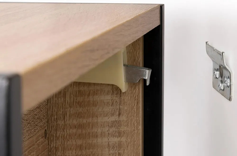 Attention: Ce produit est destiné à être fixé au mur. Veillez à respecter le poids maximal recommandé et à suivre attentivement les instructions d'installation pour éviter tout risque de basculement ou d'effondrement. De plus, les tiroirs de ce produit peuvent présenter des risques de pincement. Manipulez-les avec soin pour éviter toute blessure.