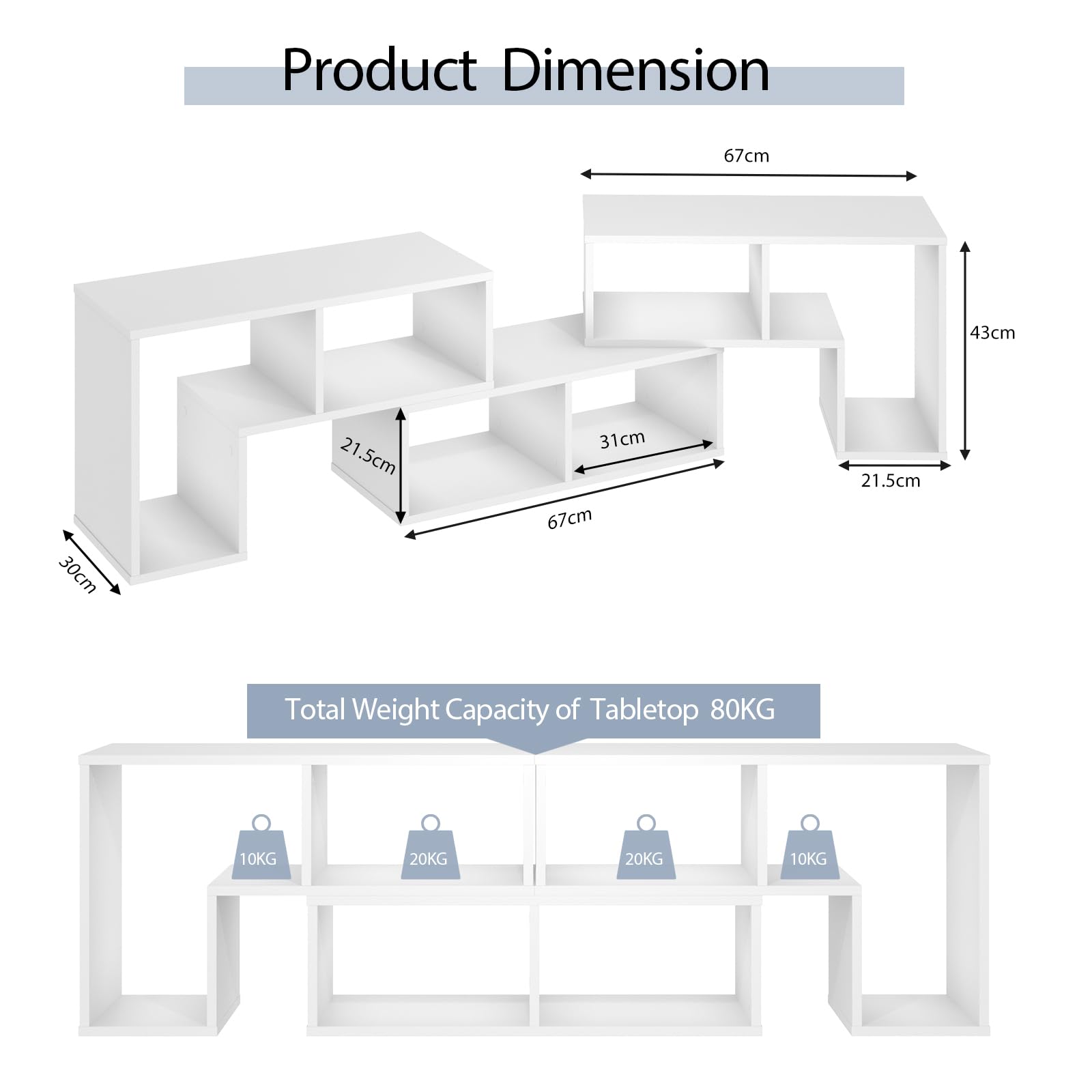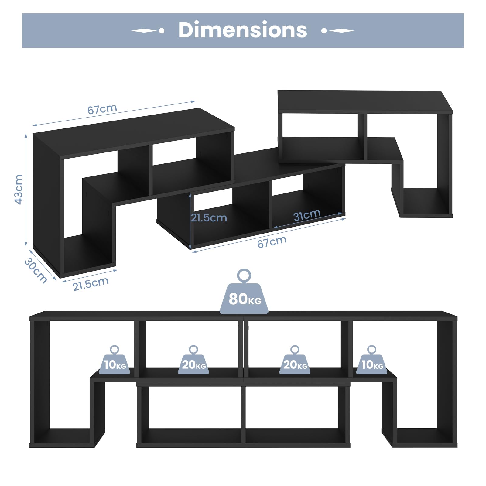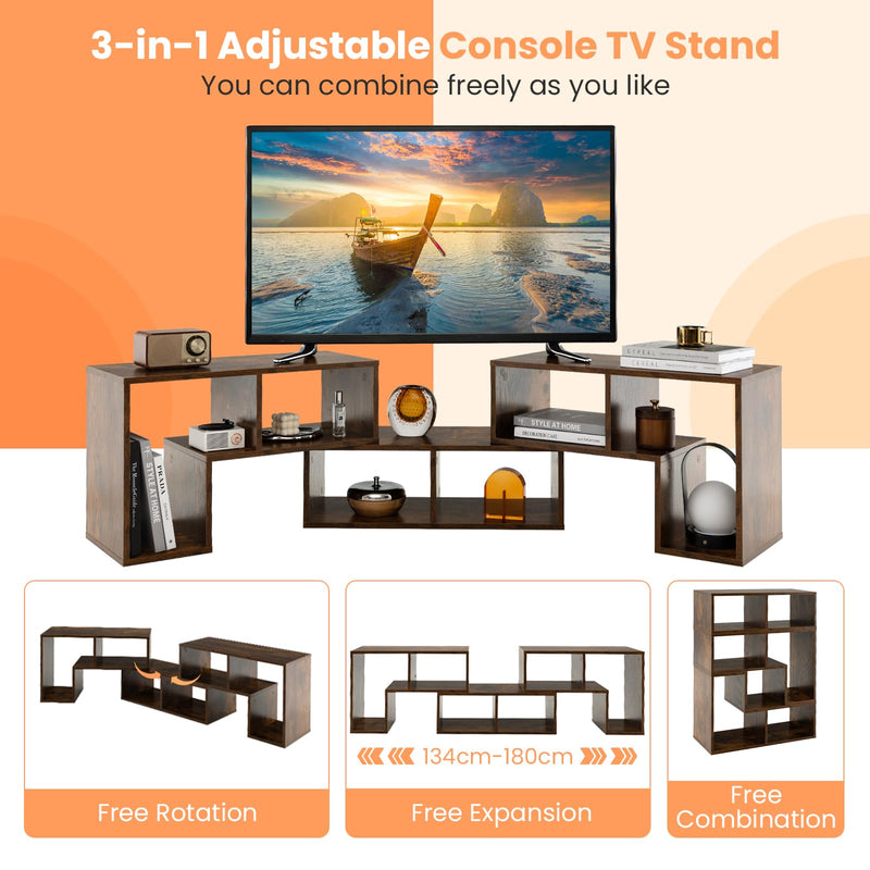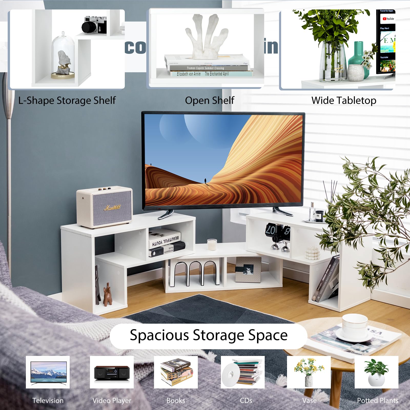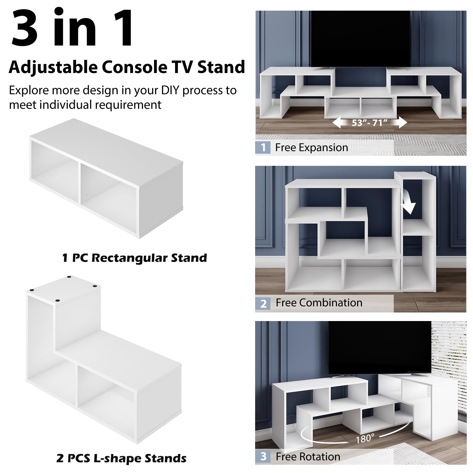 - 📺 COMBINABLE À VOLONTÉ : Avec 2 étagères en forme de L et une étagère rectangulaire, ce meuble TV peut être combiné de multiples façons pour des usages différents. Cette conception lui permet de s'étendre de 135 cm à 180 cm de long.