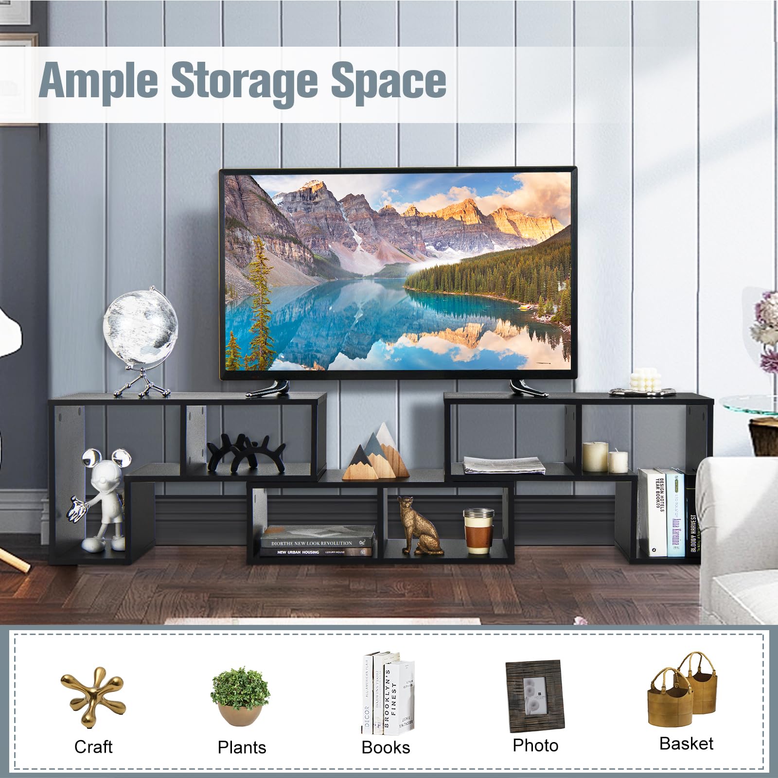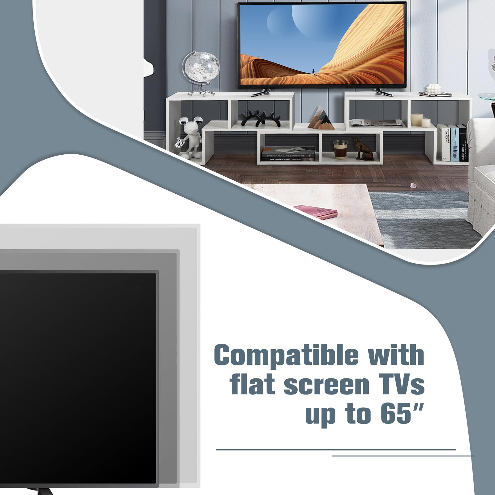 - 📺 DESIGN CRÉATIF : Contrairement aux meubles TV traditionnels, avec l'apparence simple et le design original, notre produit donne une atmosphère moderne et vivante. Nous avons également préparé des autocollants qui peuvent couvrir les trous de vis disgracieux, rendant l'aspect belle propre.