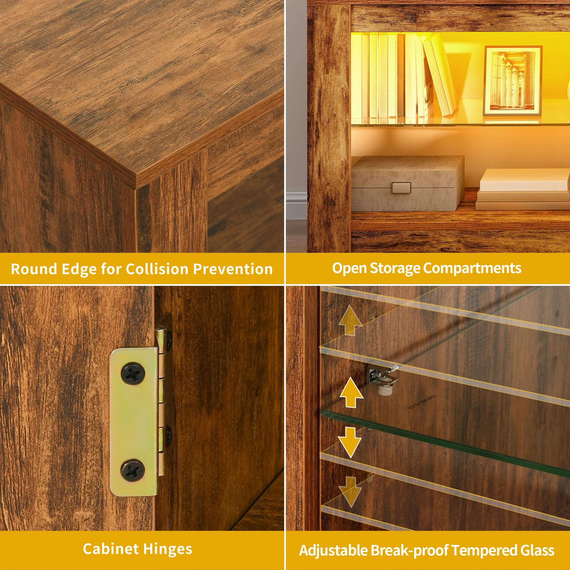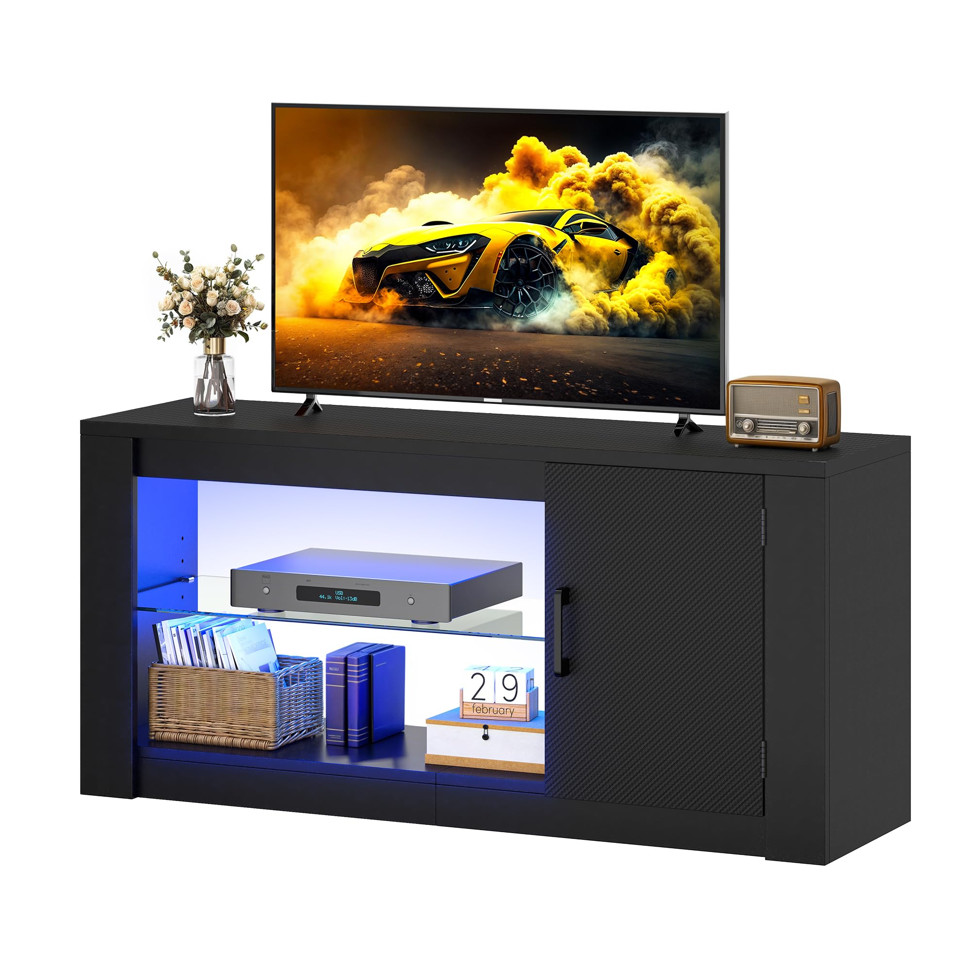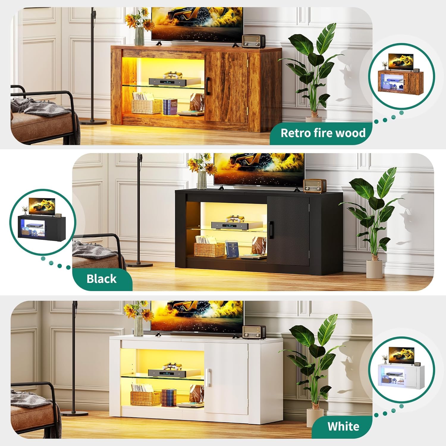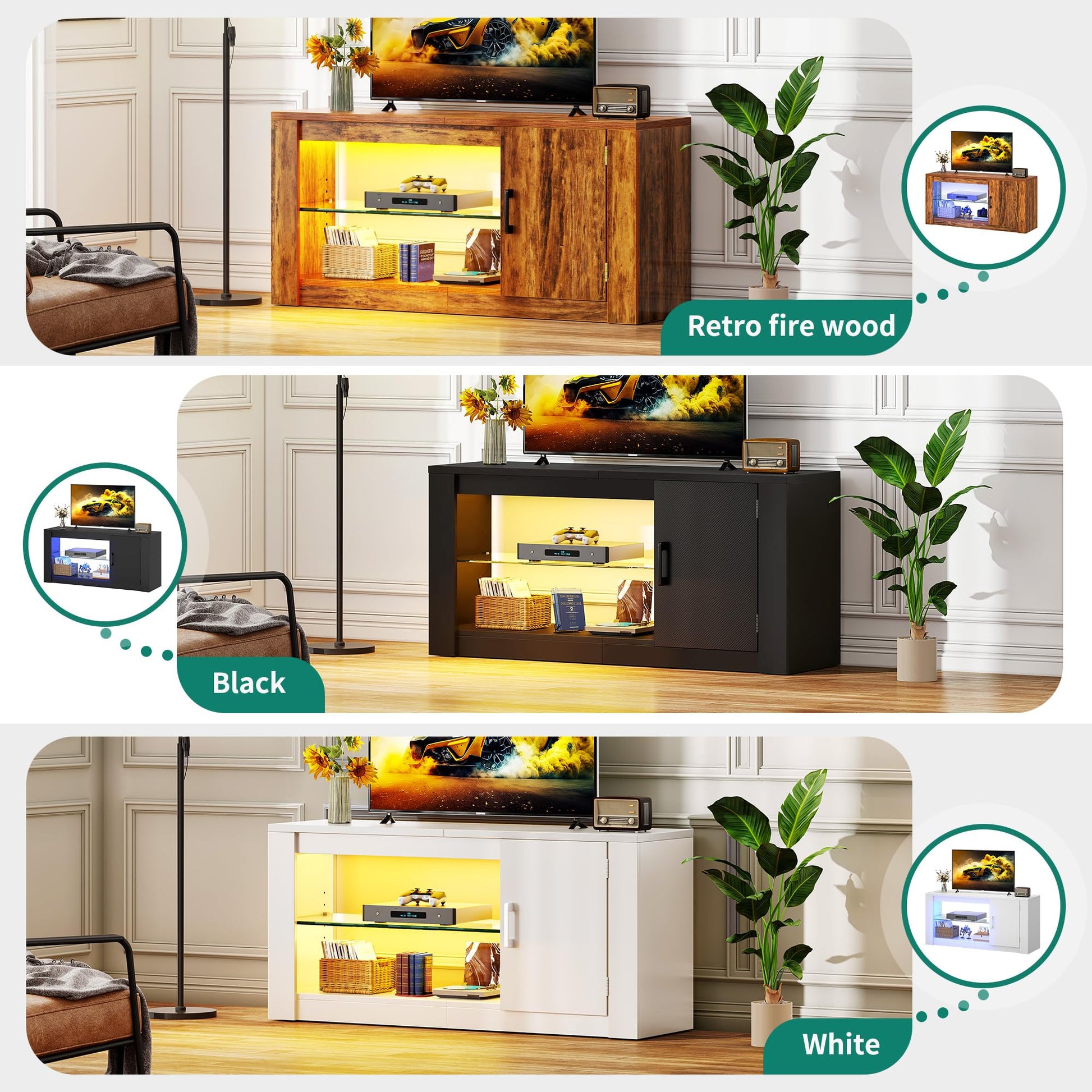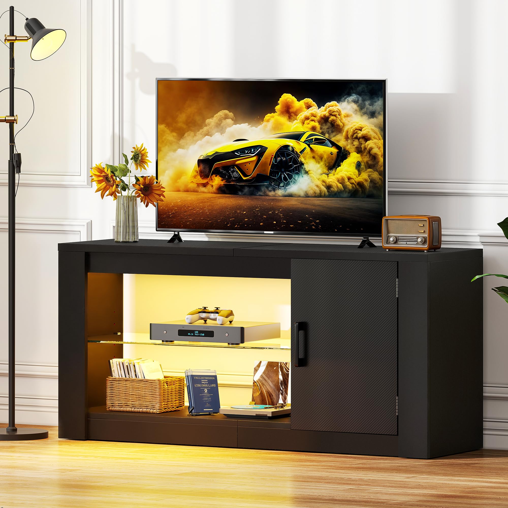 - Espace de rangement spacieux: avec 2 étagères ouvertes et une armoire, le Centre de divertissement TV offre beaucoup d'espace de rangement.