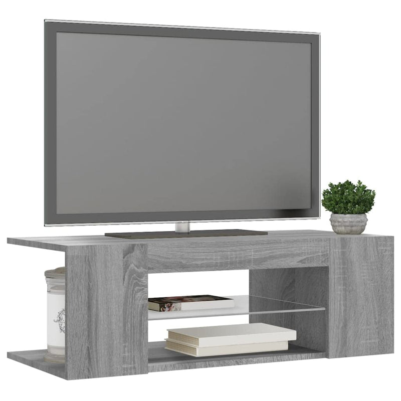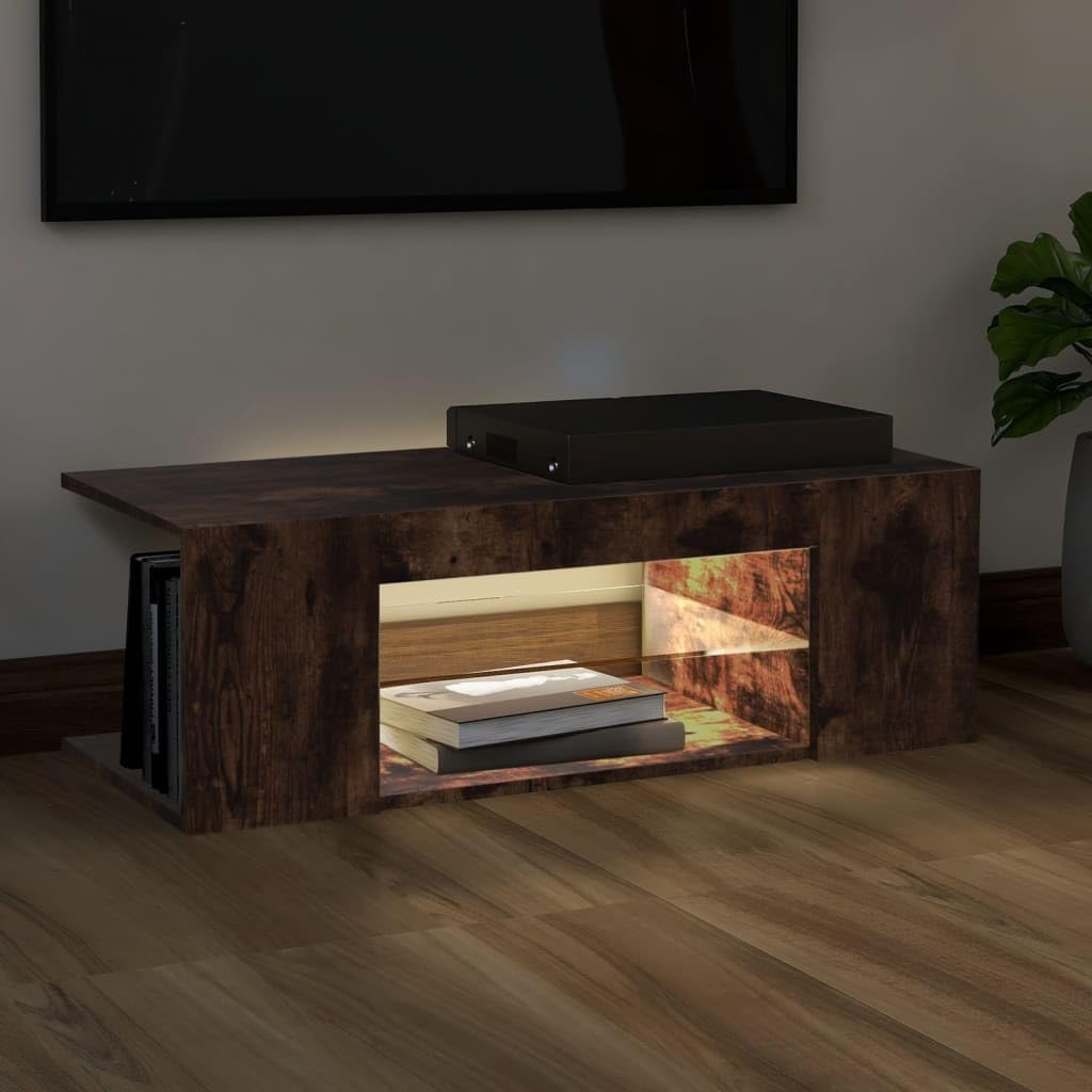 - Avec un design à la fois tendance et pratique, ce meuble TV avec éclairage LED deviendra certainement un point central de votre pièce