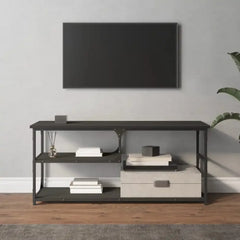 This robust TV cabinet is certainly designed to be a focus of your room with a fashionable but practical design. Durable material: Engineering wood is of exceptional quality with smooth surface and also has strength, stability and moisture resistance. Stable frame: The TV cabinet frame is made of steel. Steel is an exceptionally hard and resistant material. It offers robustness and stability. Large storage space: The TV cabinet offers enough space to keep DVD players, game consoles, streaming devices and media outlets on hand and well organized. Robust top: The robust top of the multimedia cabinet is ideal for placing your TV and stereo systems or a few decorative items like vases or potted plants. Industrial style: The multimedia unit adds a charming industrial style to your current interior decoration. It adds the design inspired by old factories and industrial space to your living space.