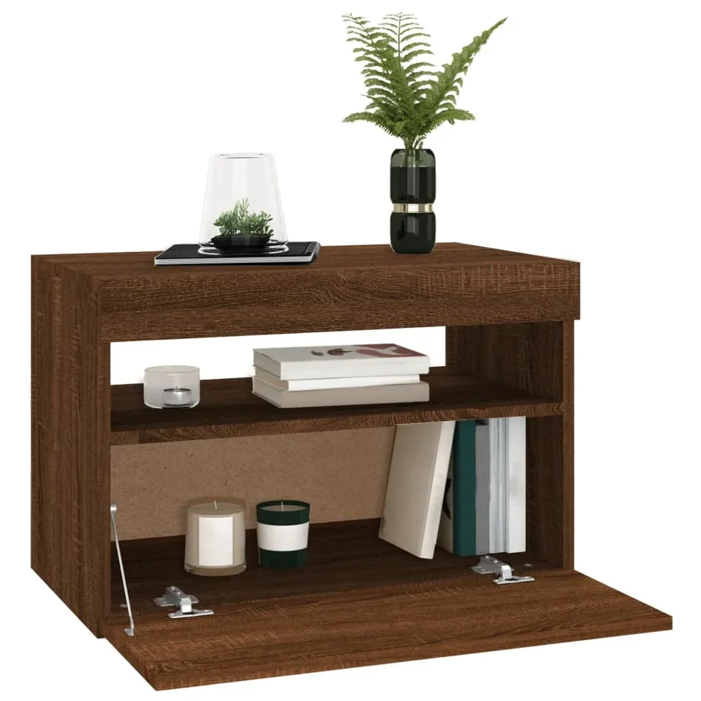Meuble tv moderne avec éclairage LED chêne brun