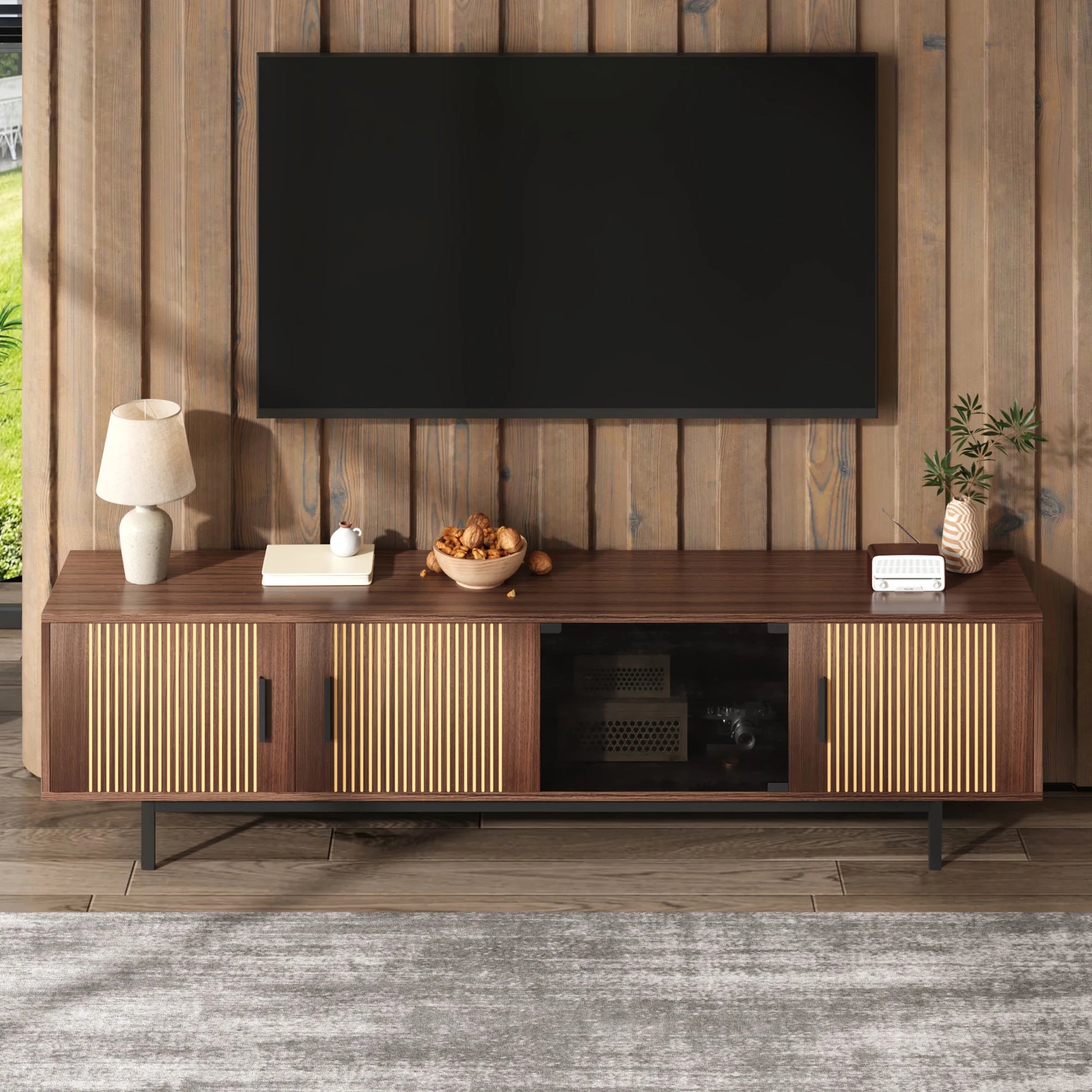 Stilvolles Design: Auch diese TV-Station verfügt über ein modernes Design mit modernem Innenleben, wodurch ein elegantes und modernes Design entsteht. Die Türen sind ebenfalls sehr funktional, dennoch sind sie mit einem modernen Touch gestaltet.