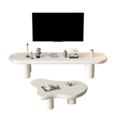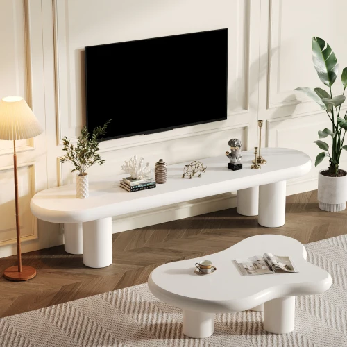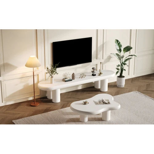 Perfect Match: Simple TV Table + Creative Cloud Coffee Table: This combination gives your living room double charm! The white TV table features an elegant design with rounded edges for added safety and is combined with a unique cloud-shaped coffee table. It is both practical and artistic and effortlessly creates a modern living style.