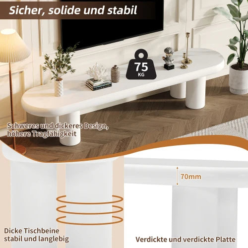 The combination of this simple TV table and the creative cloud coffee table brings a perfect combination of functionality and aesthetics to modern homes. The TV table (160 × 40 × 40 cm) features a rounded and polished design that is safe and space-saving and offers space for a 65-inch TV. The cloud coffee table (97 × 67 × 32 cm) has a unique shape, a load capacity of 80 kg and a felt lining on the bottom to protect the floor. Both are made of high density fiberboard, have a waterproof and easy to clean surface and are easy to install. The TV table is robust and durable, while the cloud table is light and artful. By using it together, you can not only optimize the distribution of a small room, but also improve the overall style. It is the ideal choice for anyone who aspires to a high quality life.