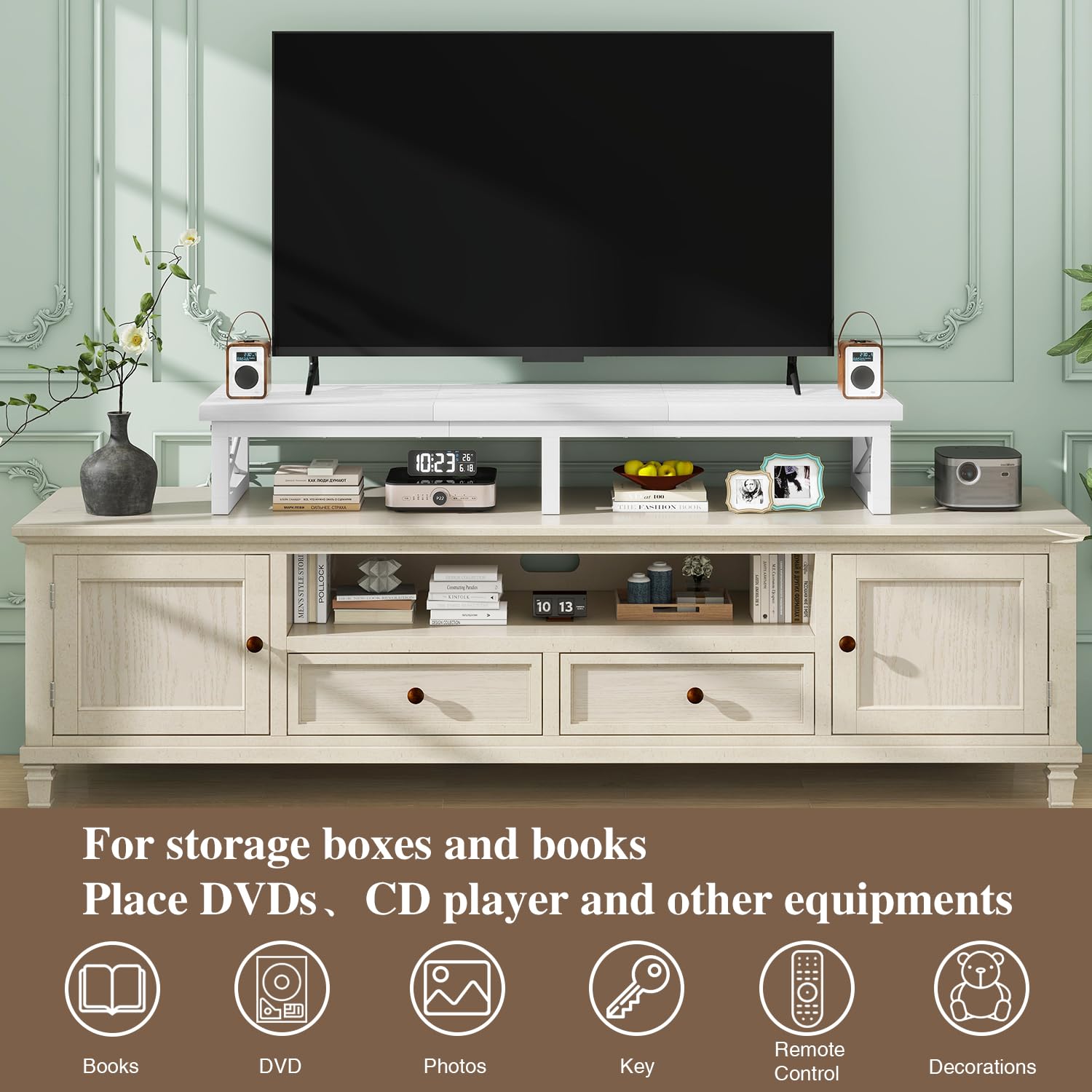 - Multifunctional: This riser stand can be used as a TV riser, monitor riser or as a stand for TV, laptop and other multimedia devices.
