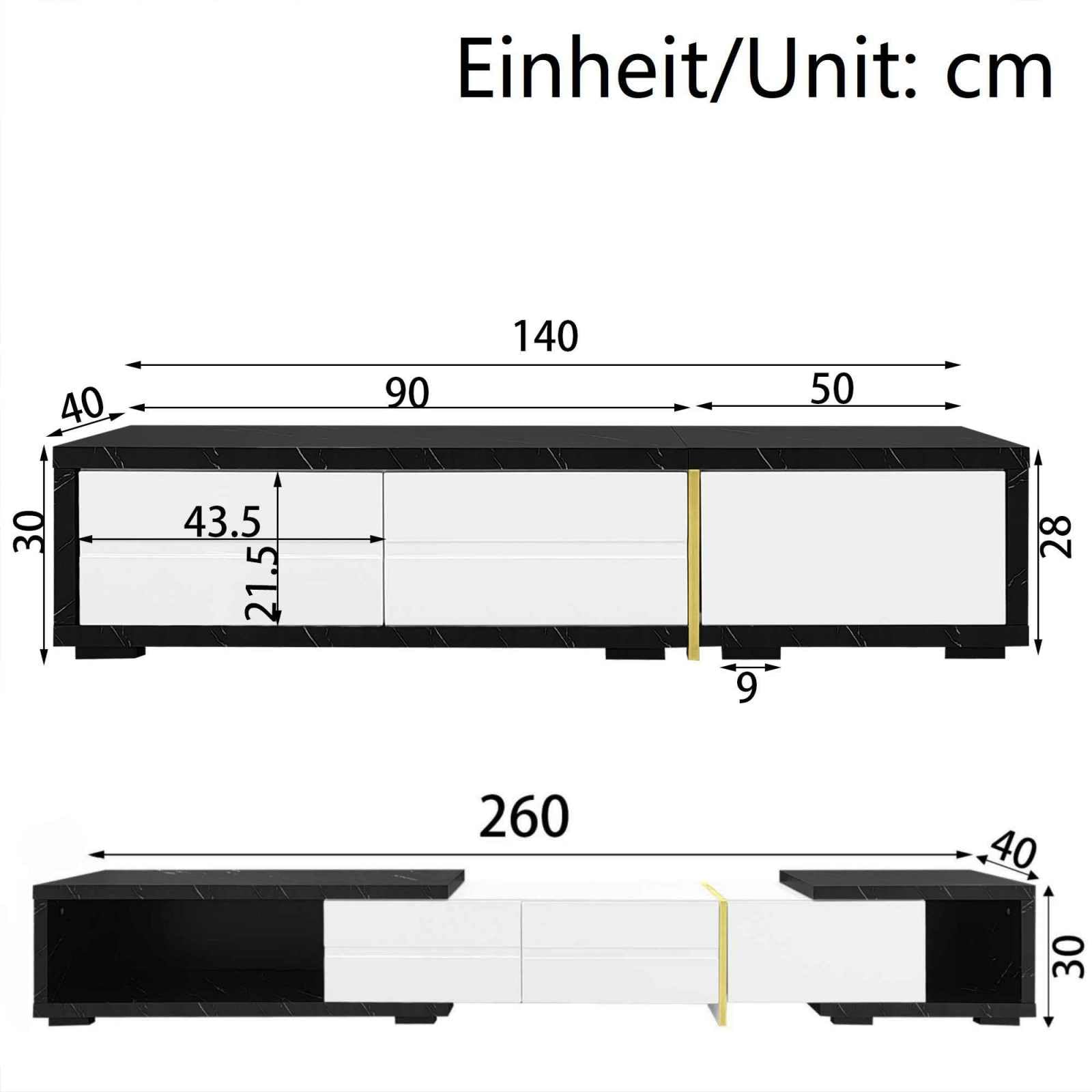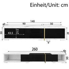 - DESIGN INNOVANT : avec une extension flexible de 140 cm à 260 cm, ce meuble TV s'adapte parfaitement à un large éventail de tailles de pièces. Qu'il s'agisse d'un salon spacieux ou d'un petit espace compact, vous trouverez la bonne configuration. Cette conception réglable permet un agencement plus flexible et polyvalent des meubles, qui répond aux besoins individuels des différents environnements domestiques.