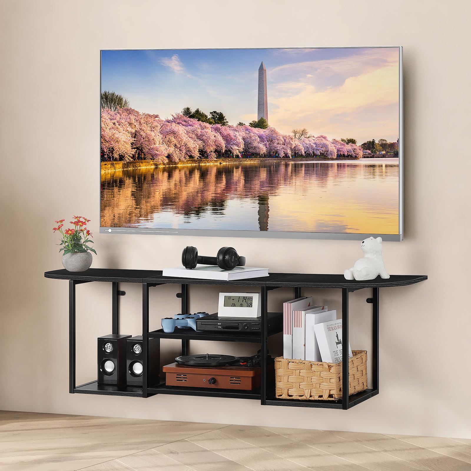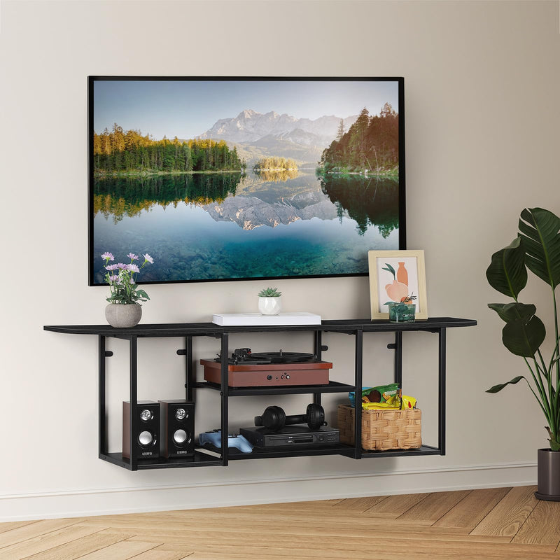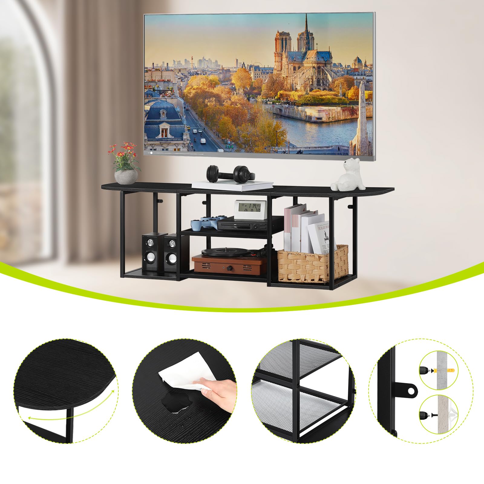 - Meuble TV au design moderne et polyvalent : notre meuble TV mural combine des lignes épurées et une finition noire mate pour un attrait contemporain, adaptable à divers styles de décoration. Le rangement ouvert du meuble TV facilite le rangement et rend les articles clairs en un coup d'œil.