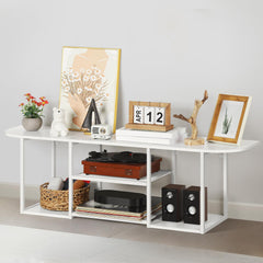 - Rangement peu encombrant : les étagères ouvertes (34 cm de profondeur) organisent les consoles, la décoration et les câbles sans gaspiller d'espace au sol.