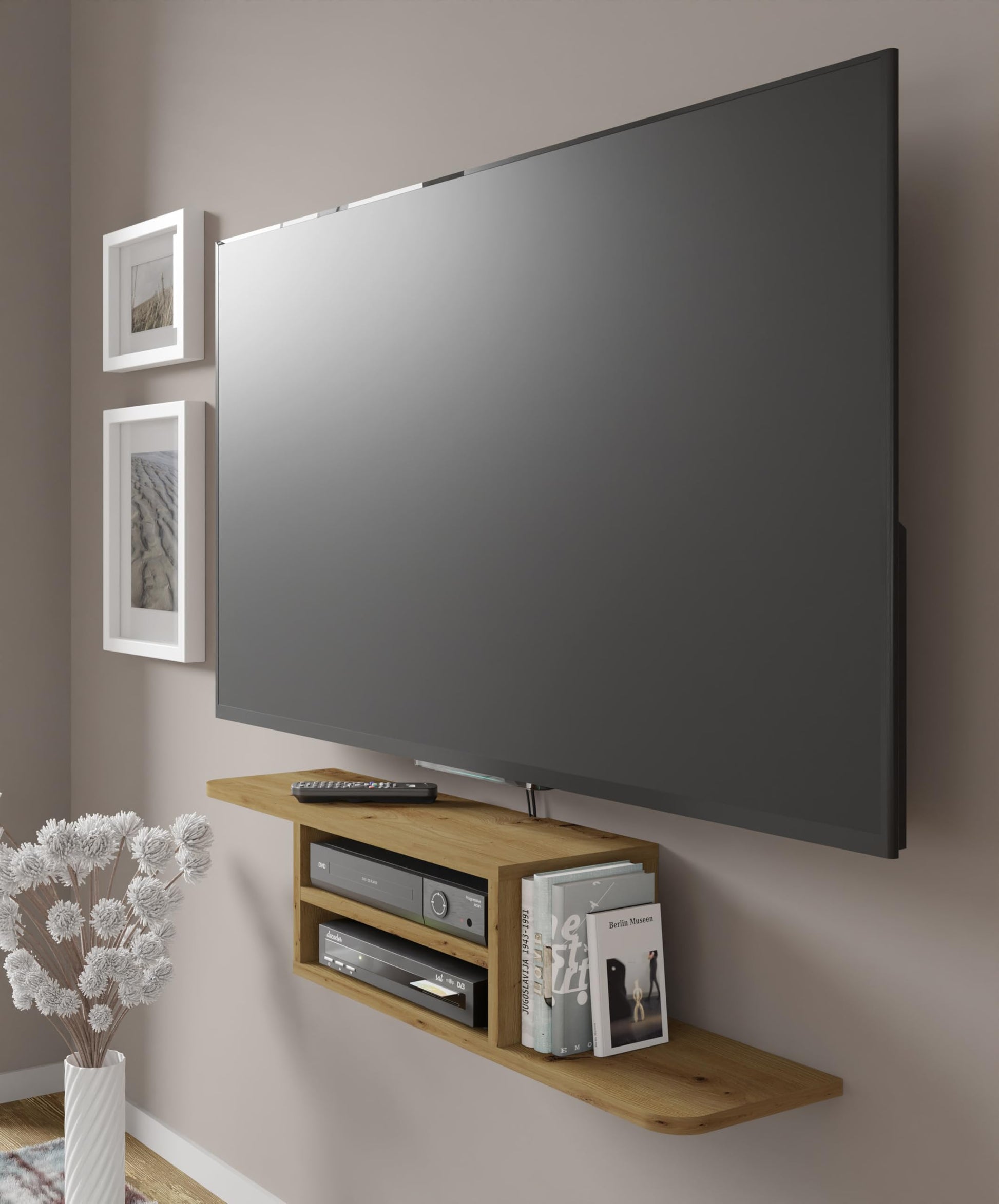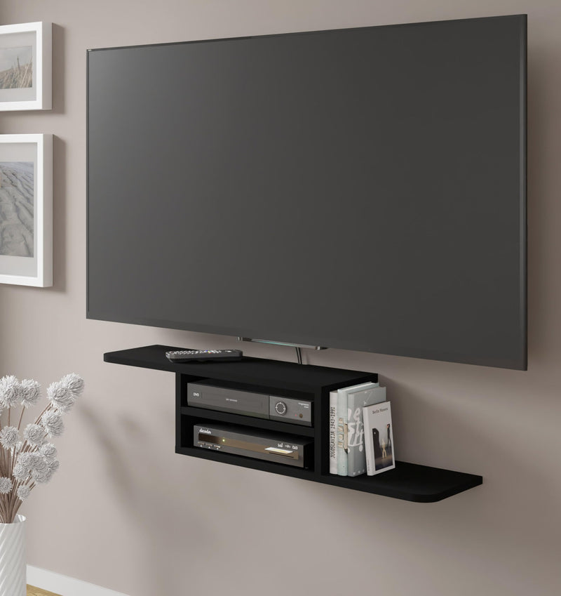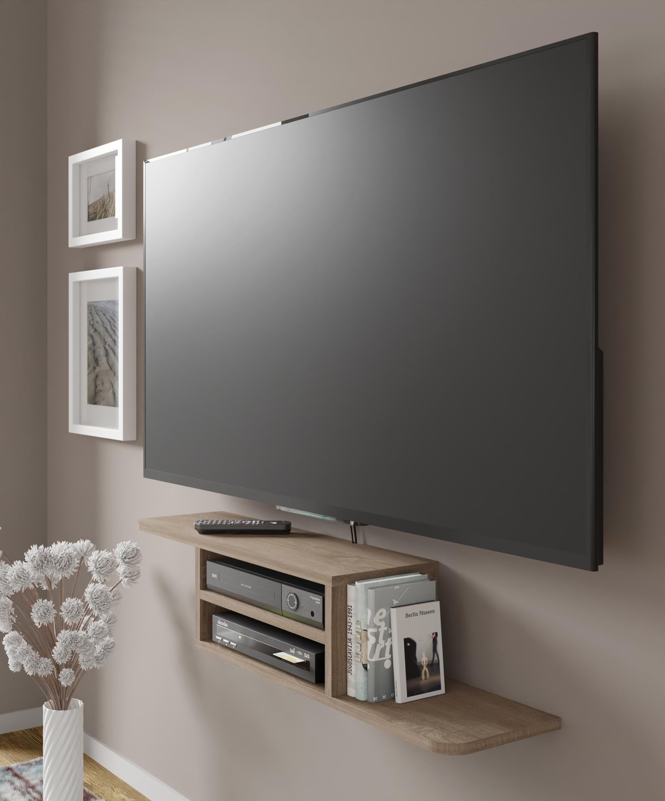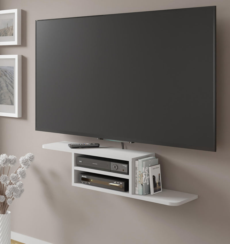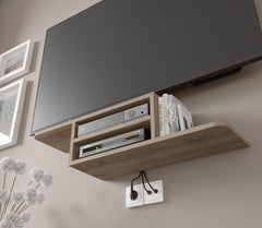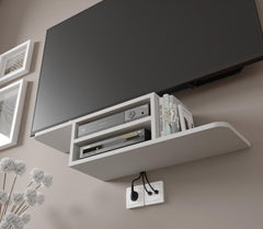 - The unit can be used as a wall shelf or TV table. Flap for cable in the upper and lower plates