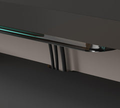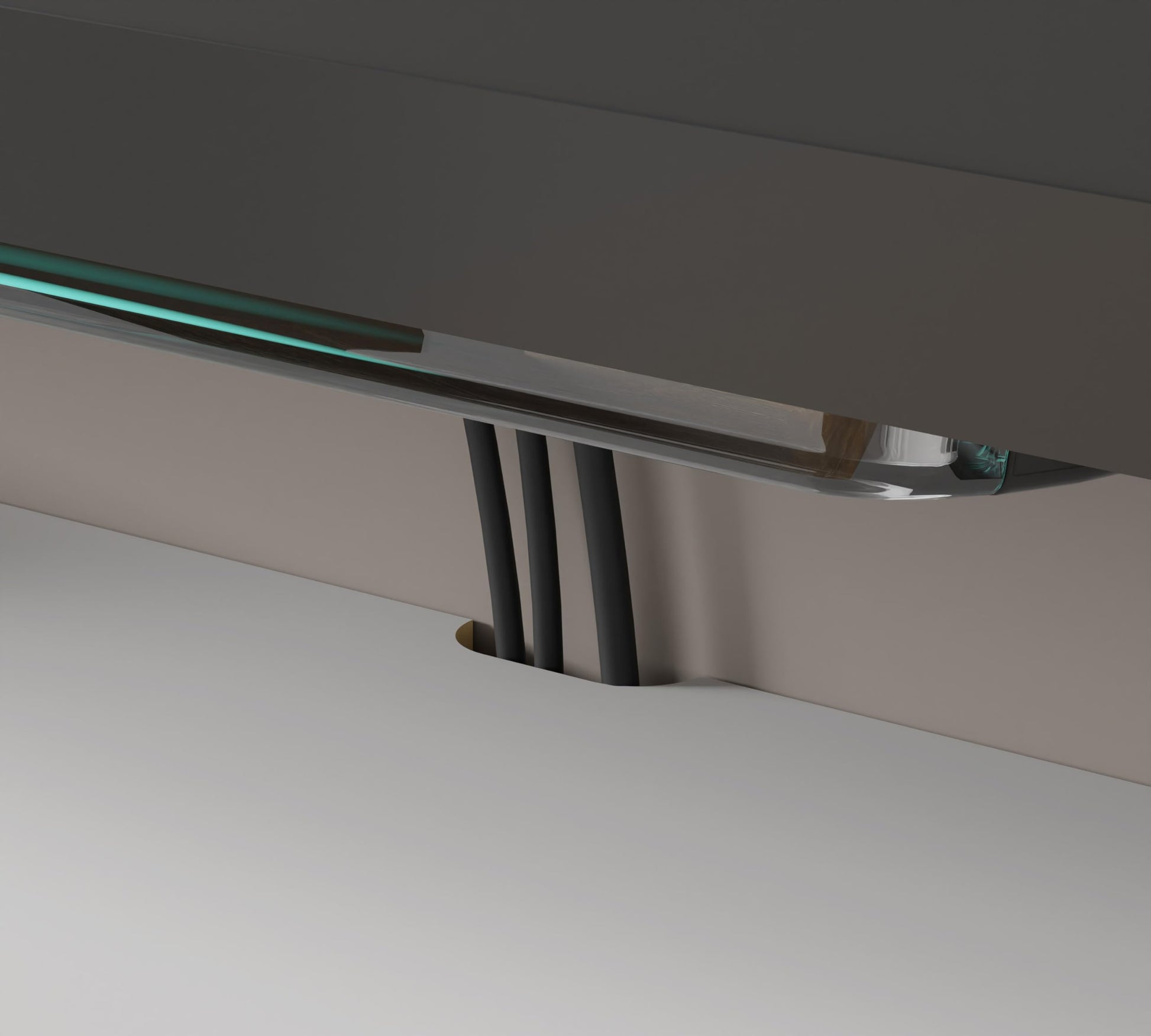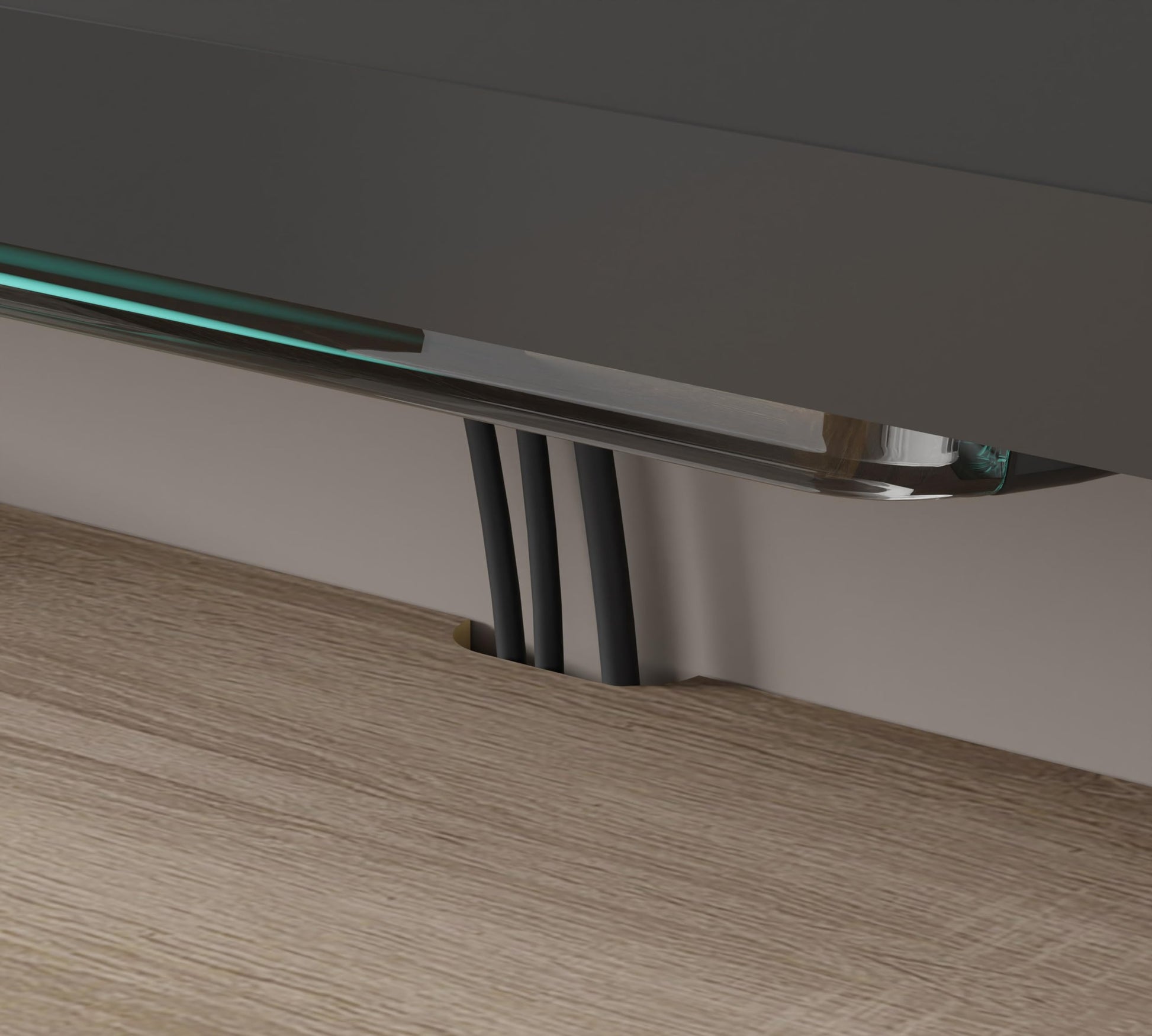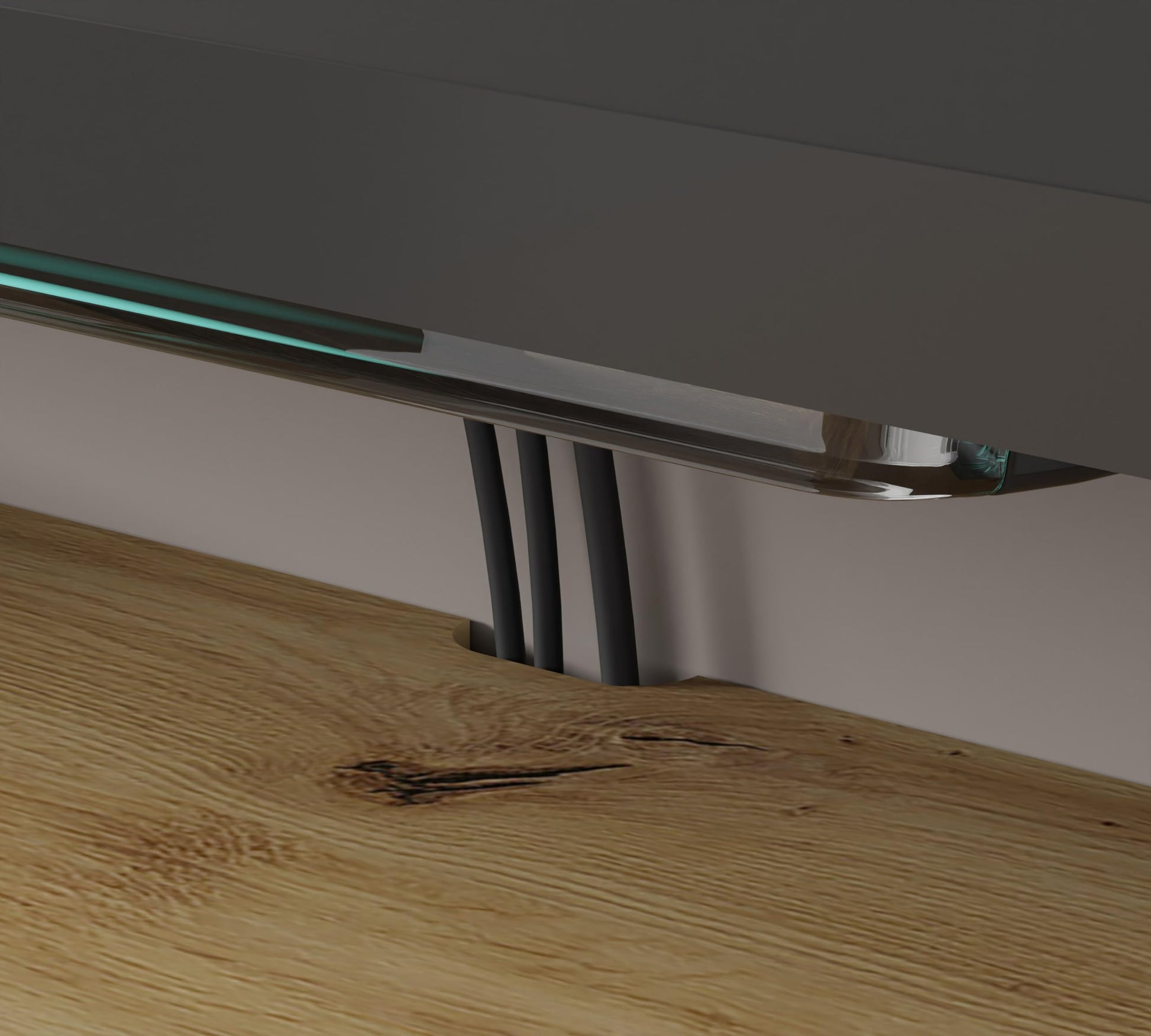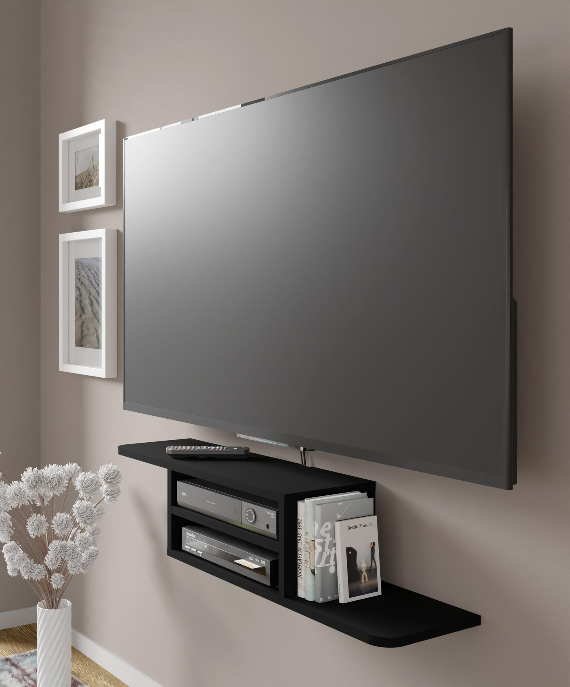 - The unit can be used as a wall shelf or TV table. Flap for cable in the upper and lower plates