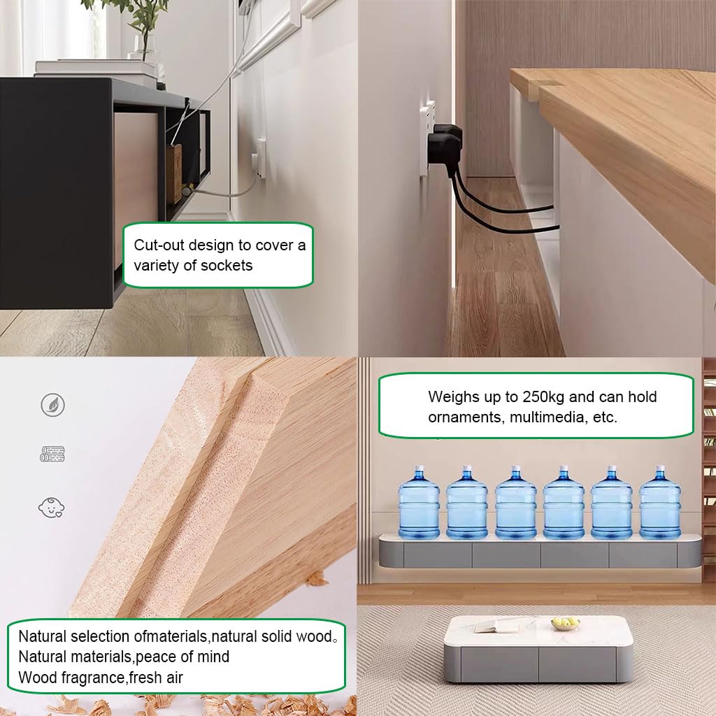 XDXINY Meuble TV suspendu en bois massif pour salon, maison, table basse, meuble TV de 140, 160, 180, 200, 220, 240 cm, plusieurs tailles disponibles (Noir, 140 x 20 x 24 cm)