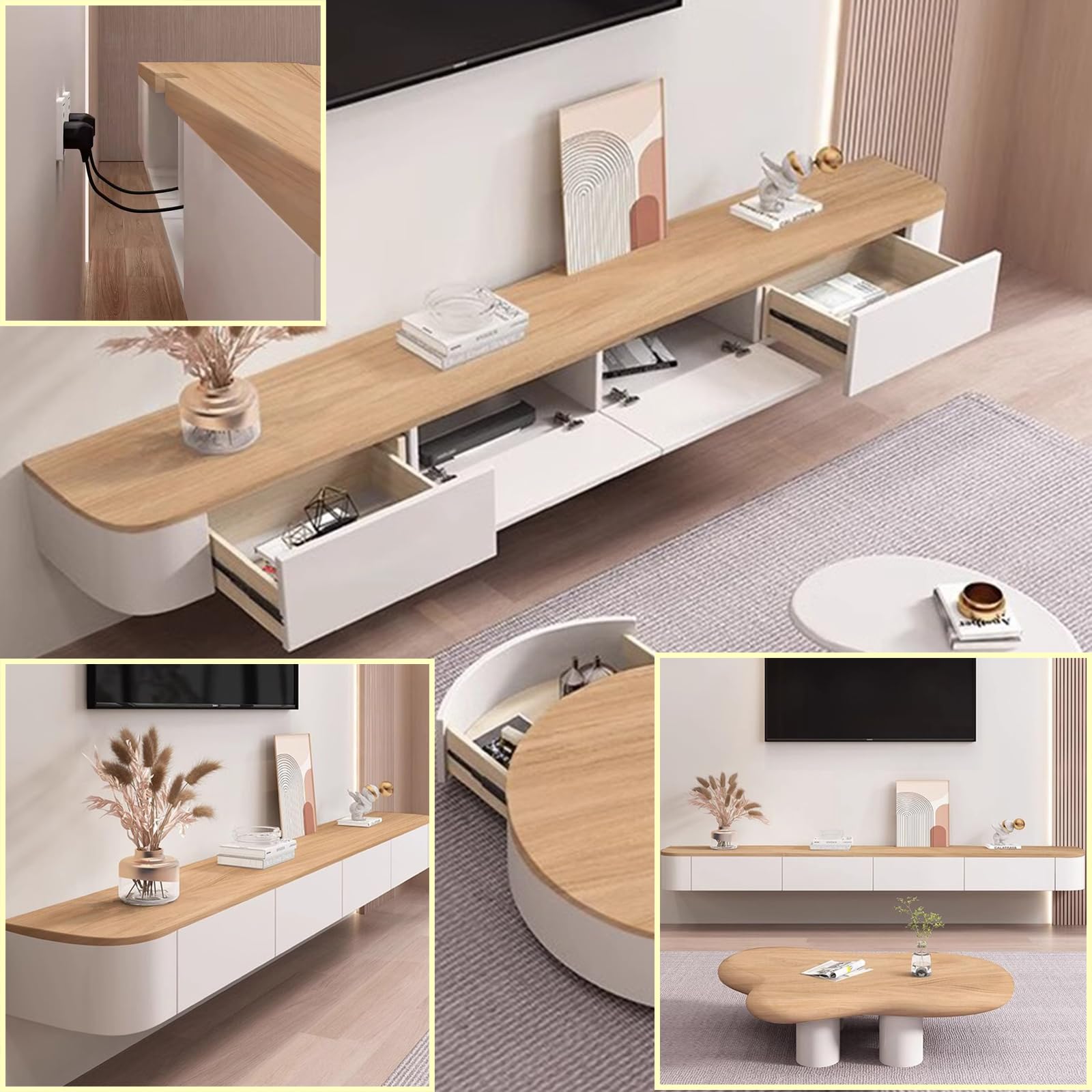 - Son design garantit la sécurité : meuble aux coins arrondis, beau et sans danger. Conception réfléchie, trous de filetage dédiés. Rail coulissant silencieux, se pousse et se tire en douceur. Design ajouré à l'arrière, permettant d’accueillir toutes sortes de prises.