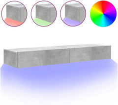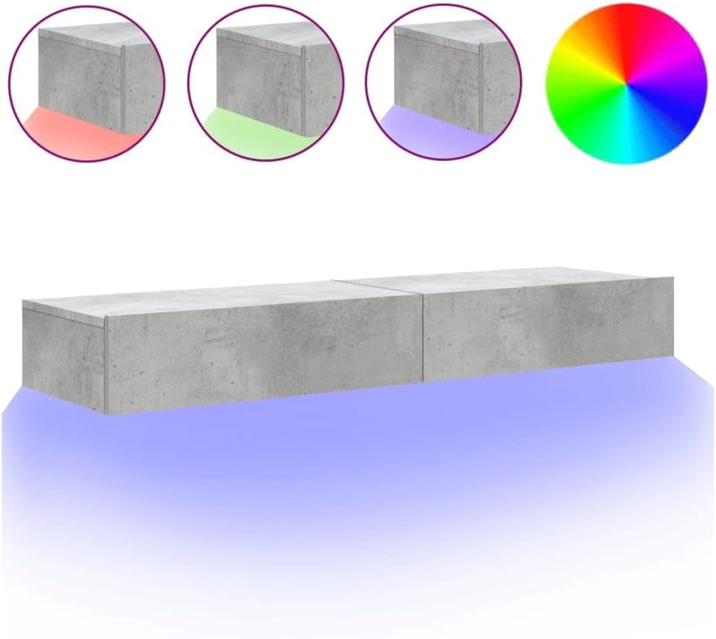 With a stylish yet practical design, these TV units with LED lighting are destined to become a focal point in your room. Practical material: Engineered wood is of exceptional quality with smooth surface and also has strength, stability and moisture resistance. Made of engineered wood, the LED TV stand is easy to clean.Large storage space:Storage space makes it easy to organize items in this wall cabinet.RGB LED lights: The TV stand is with RGB LED lights, which have different menus to change the color of the lights and let the color adjust automatically. LED lights emphasize the modern look and contribute to the trendy atmosphere.Elegant appearance: The clean lines and elegant design make the TV unit perfect to fit into your home. Good to know: This product has a USB connector, but the certified 5V USB power source is not included. Screws and wall plugs for the inside of the wall are not included. We advise you to find and use screws and anchors that are suitable specifically for your walls. If you are not sure, you can consult a professional. Please read and follow each step of the instructions.