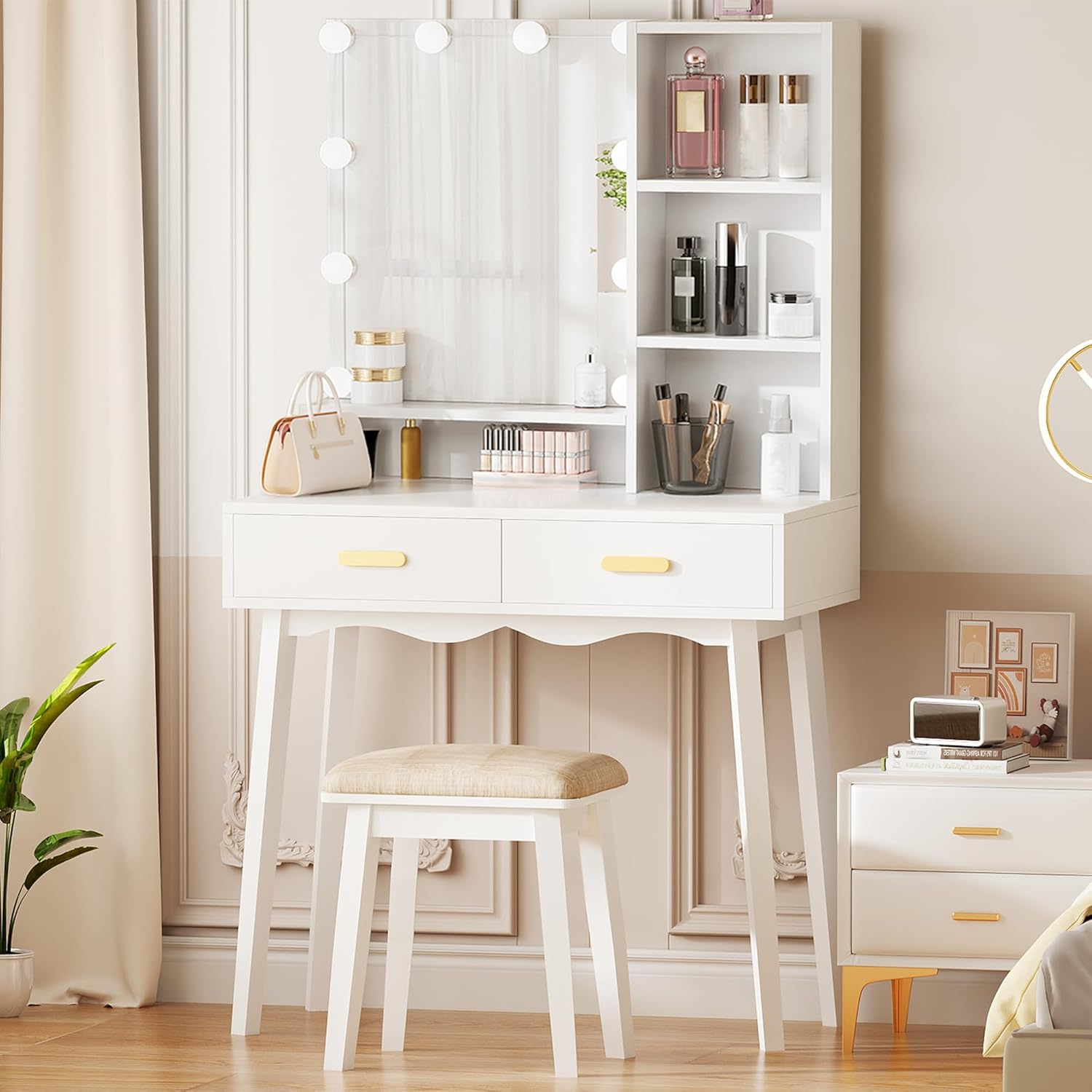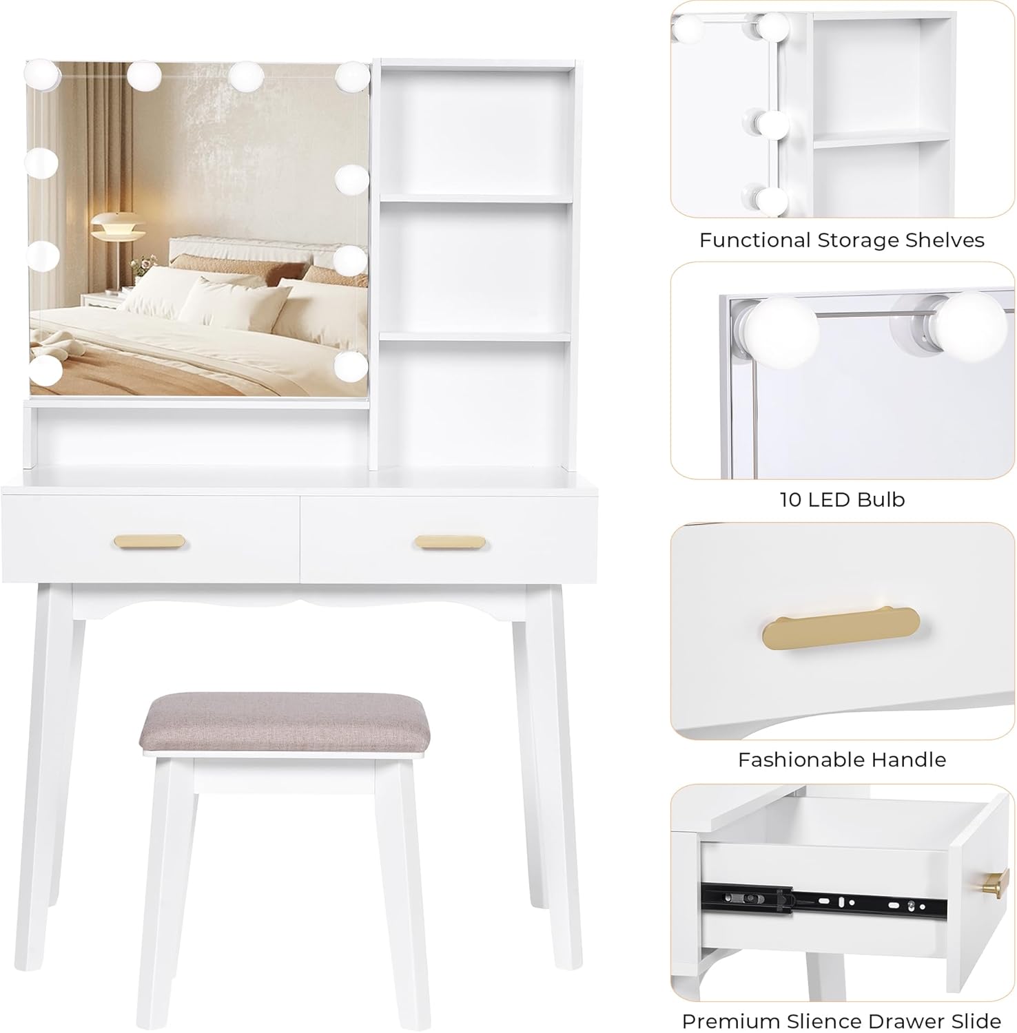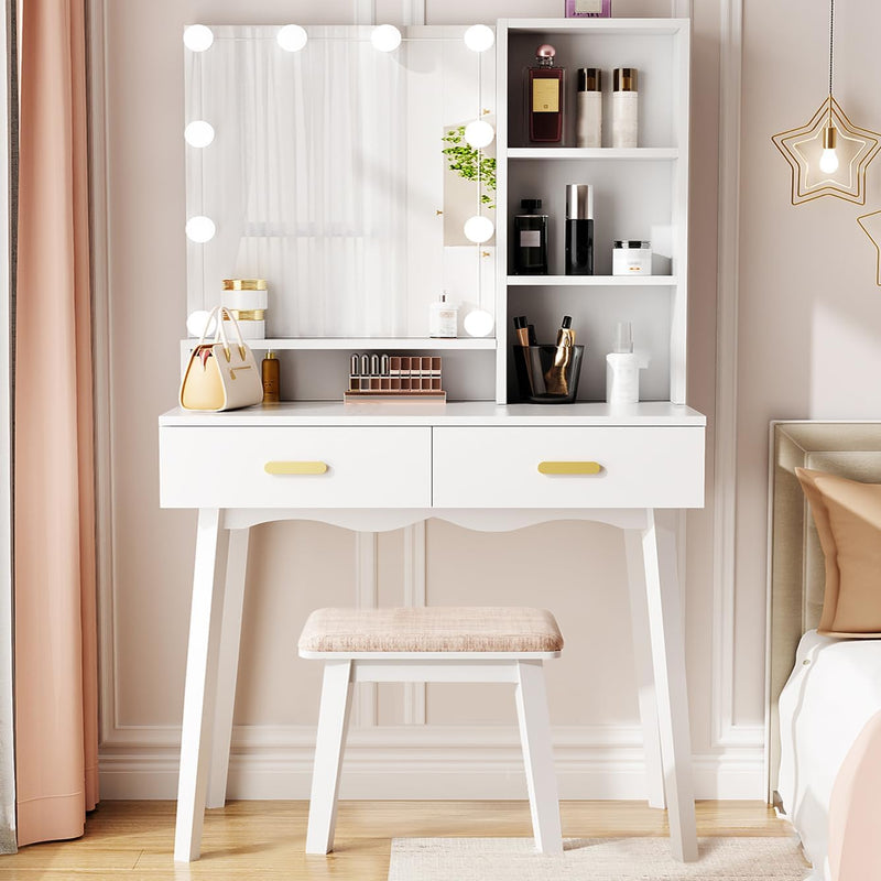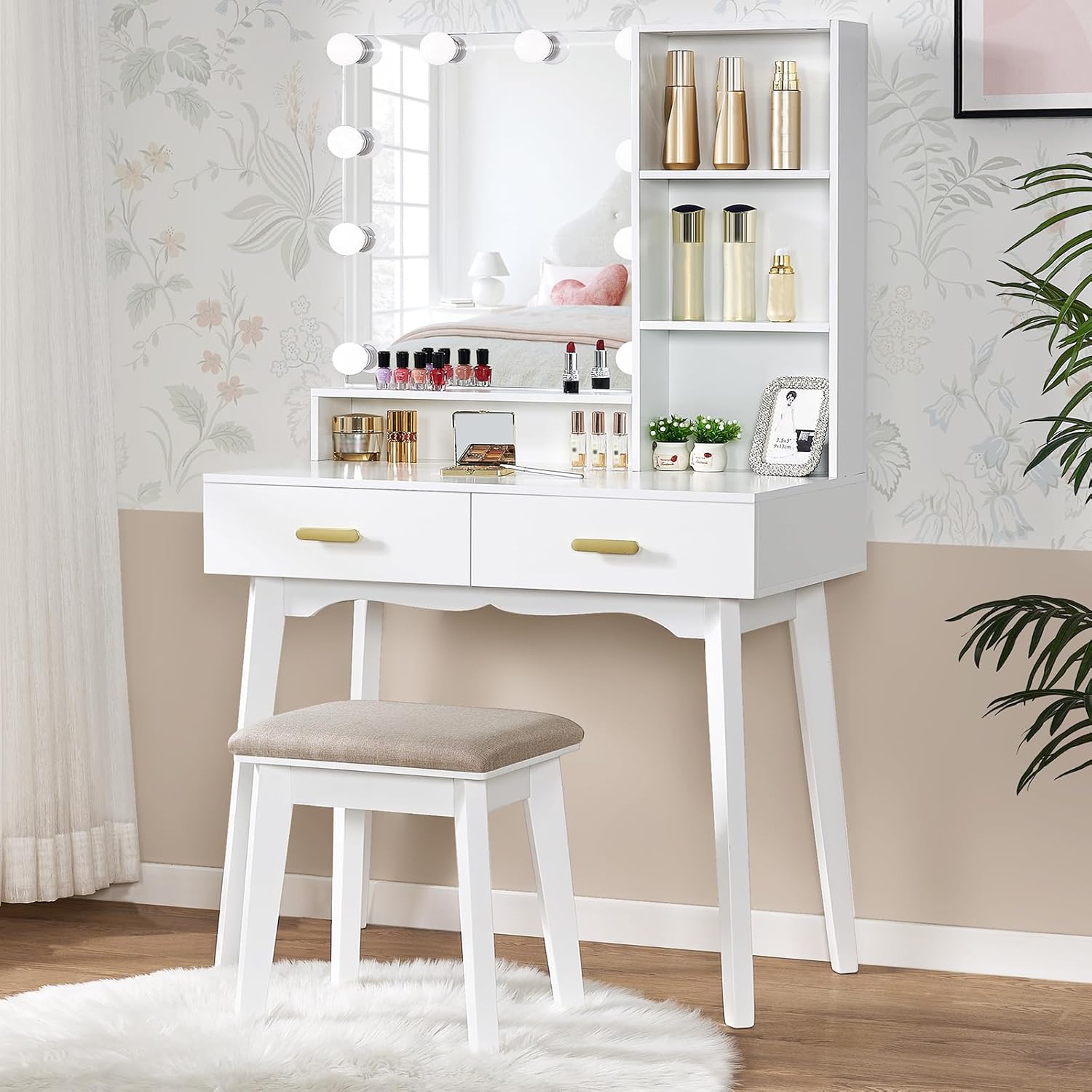 - 【Grande capacité de stockage】La coiffeuse offre un grand espace de rangement pour les produits cosmétiques, les parfums, les lotions, les brosses, les accessoires pour cheveux, les bijoux et autres ustensiles de beauté. Vous pouvez dire adieu à la petite table désordonnée et commencer une vie meilleure avec notre coiffeuse