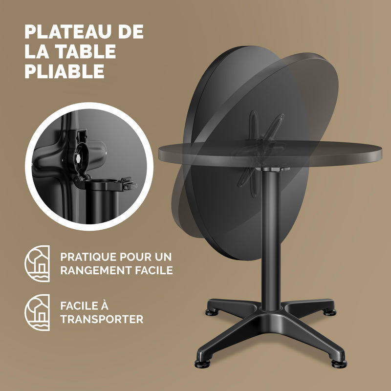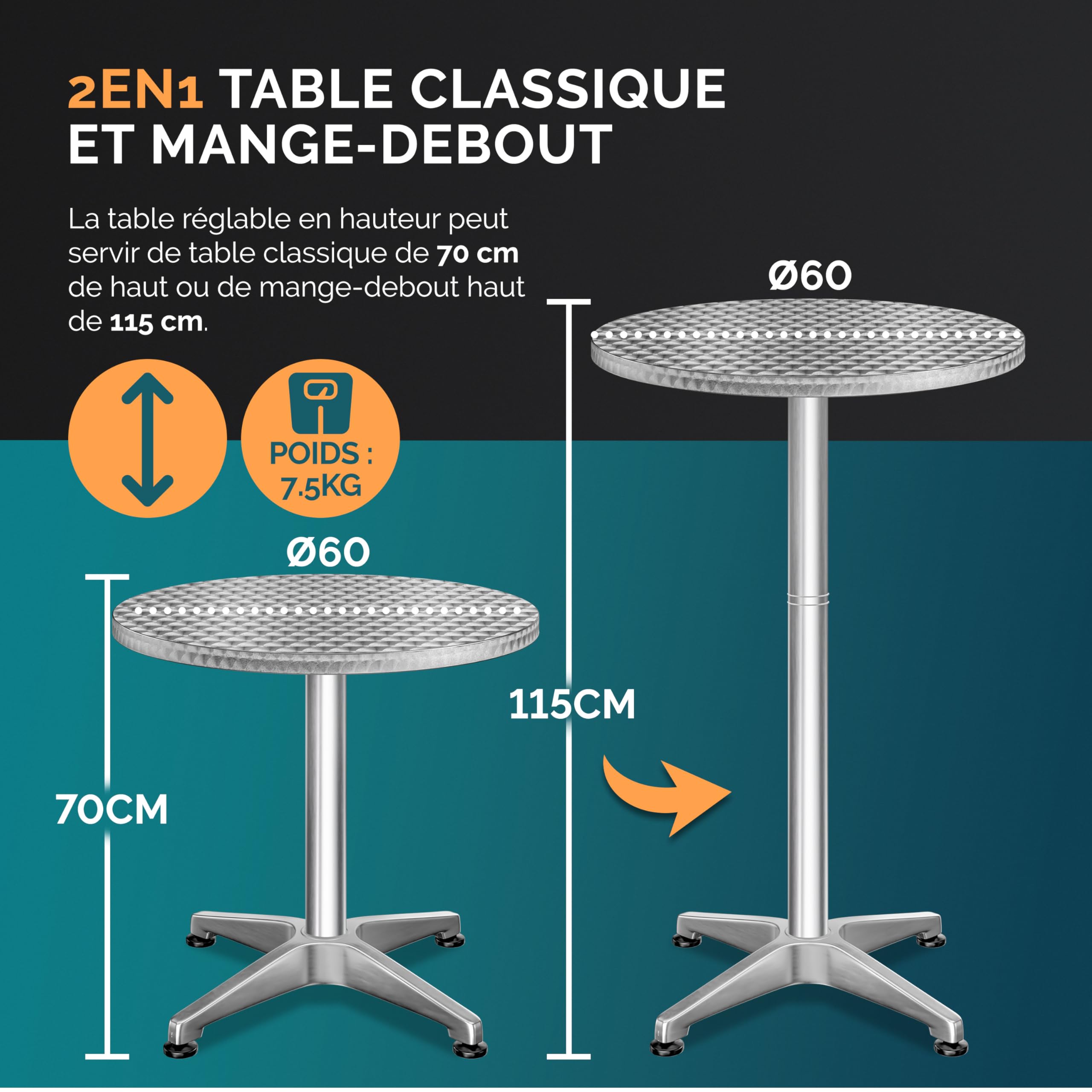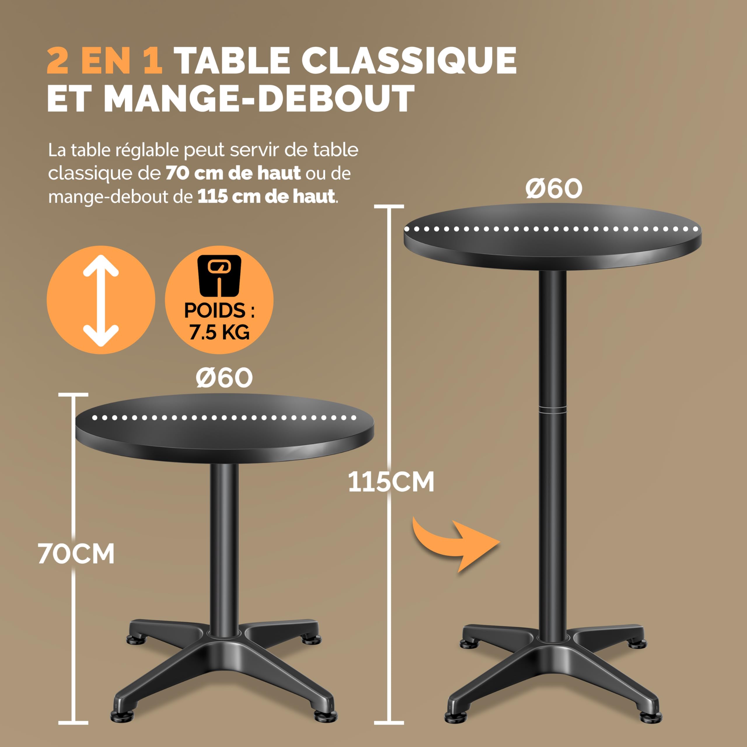 - HAUTEUR RÉGLABLE : La table de bar CASARIA est réglable sur 2 hauteurs différentes : 115 cm et 70 cm. Son plateau est pliable, pratique pour la ranger.