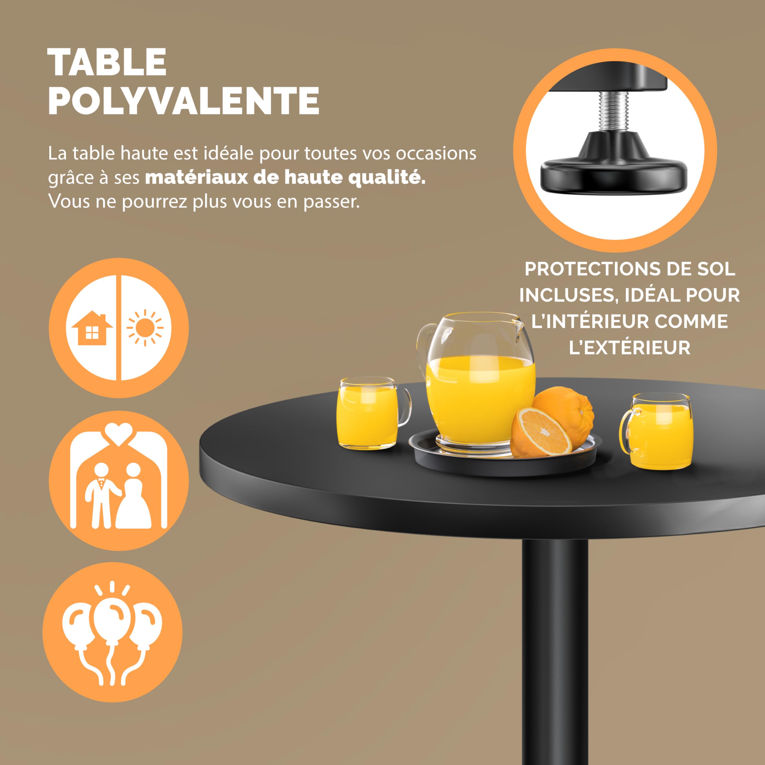- MONTAGE RAPIDE : La table de cocktail se monte rapidement et est facile à régler en hauteur. Simple à transporter, elle va devenir l'élément indispensable de vos événements.