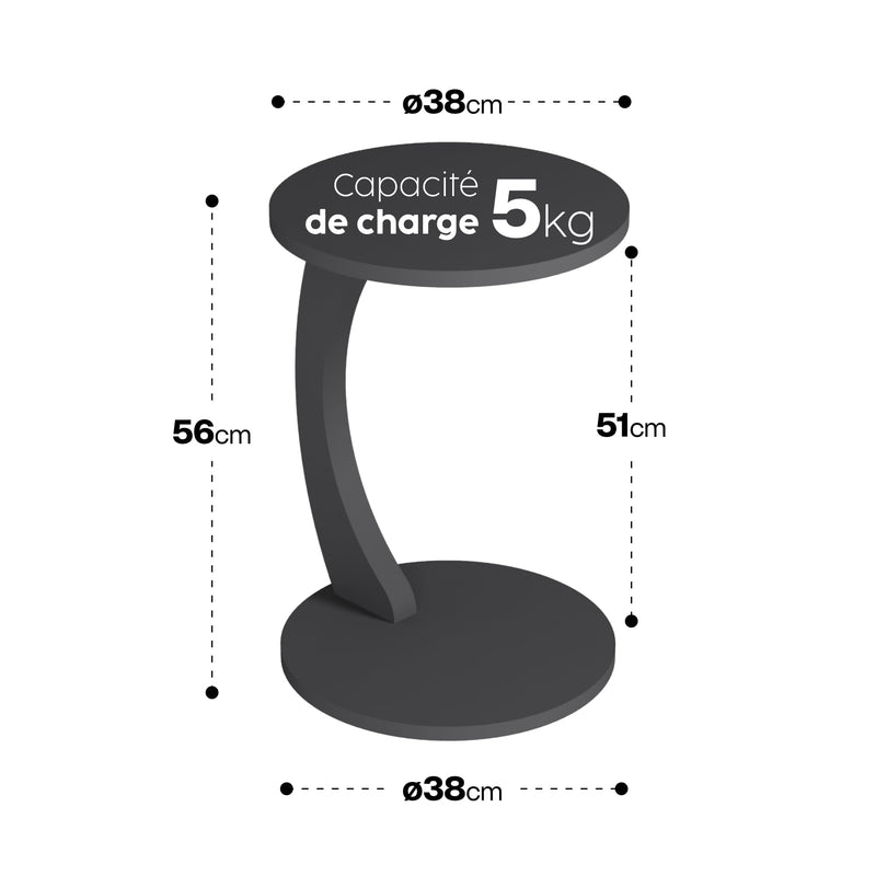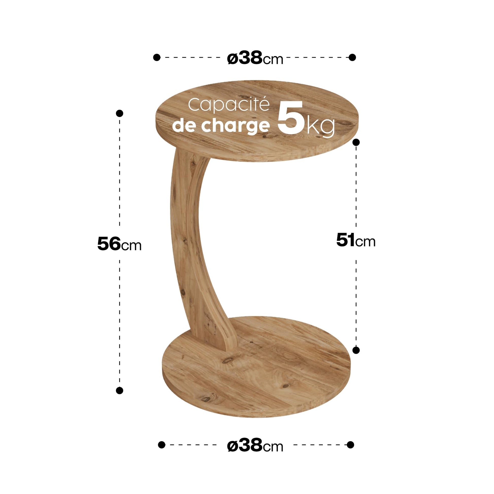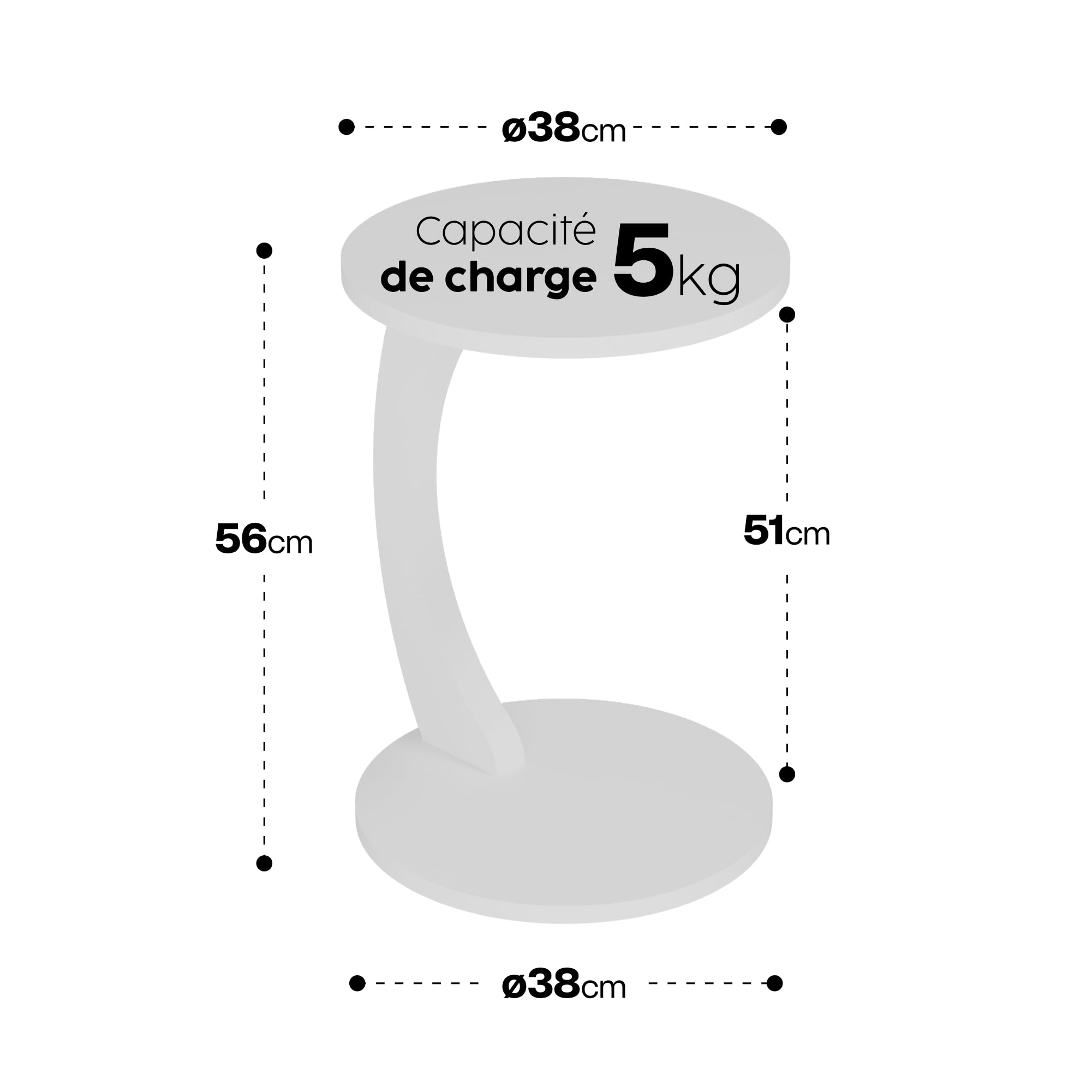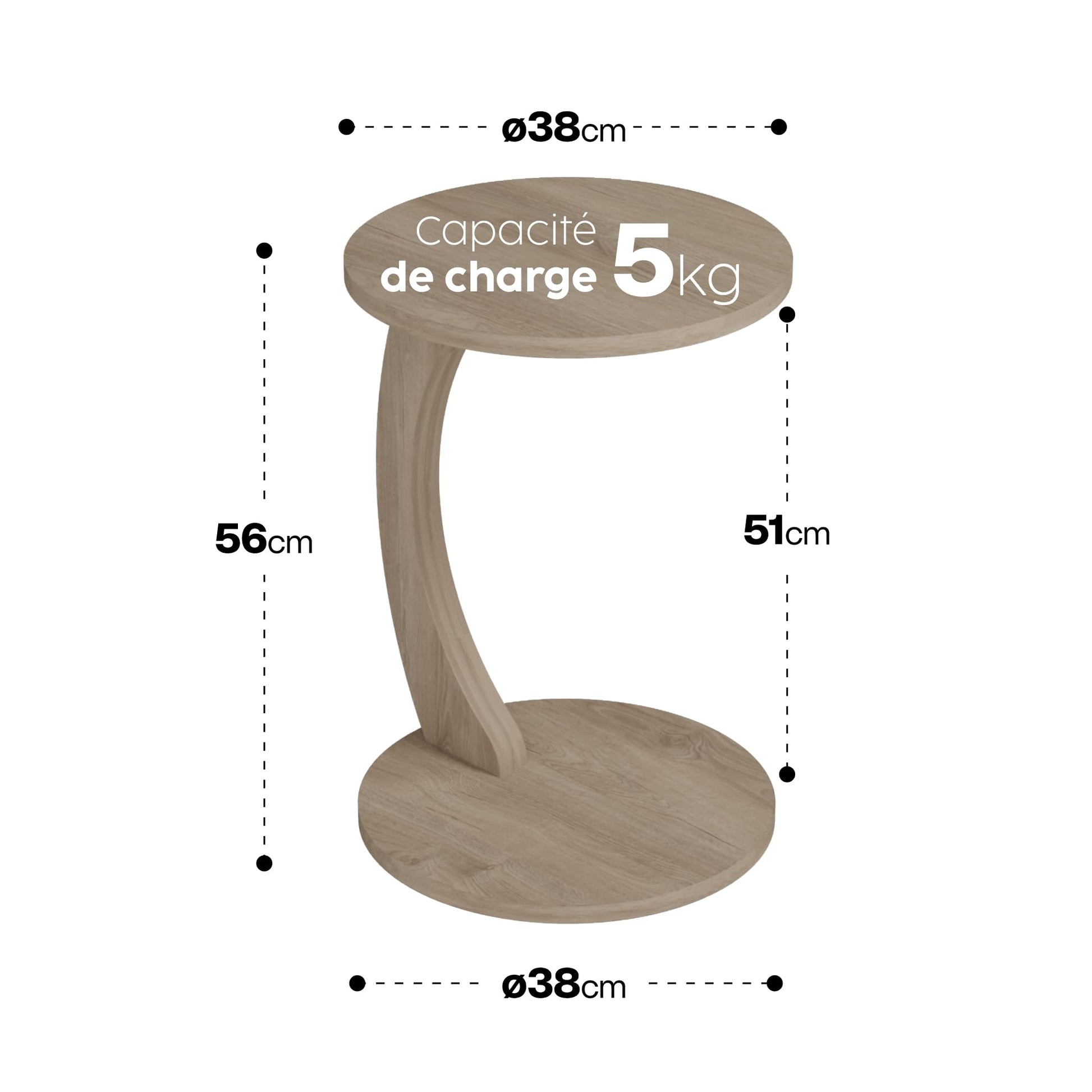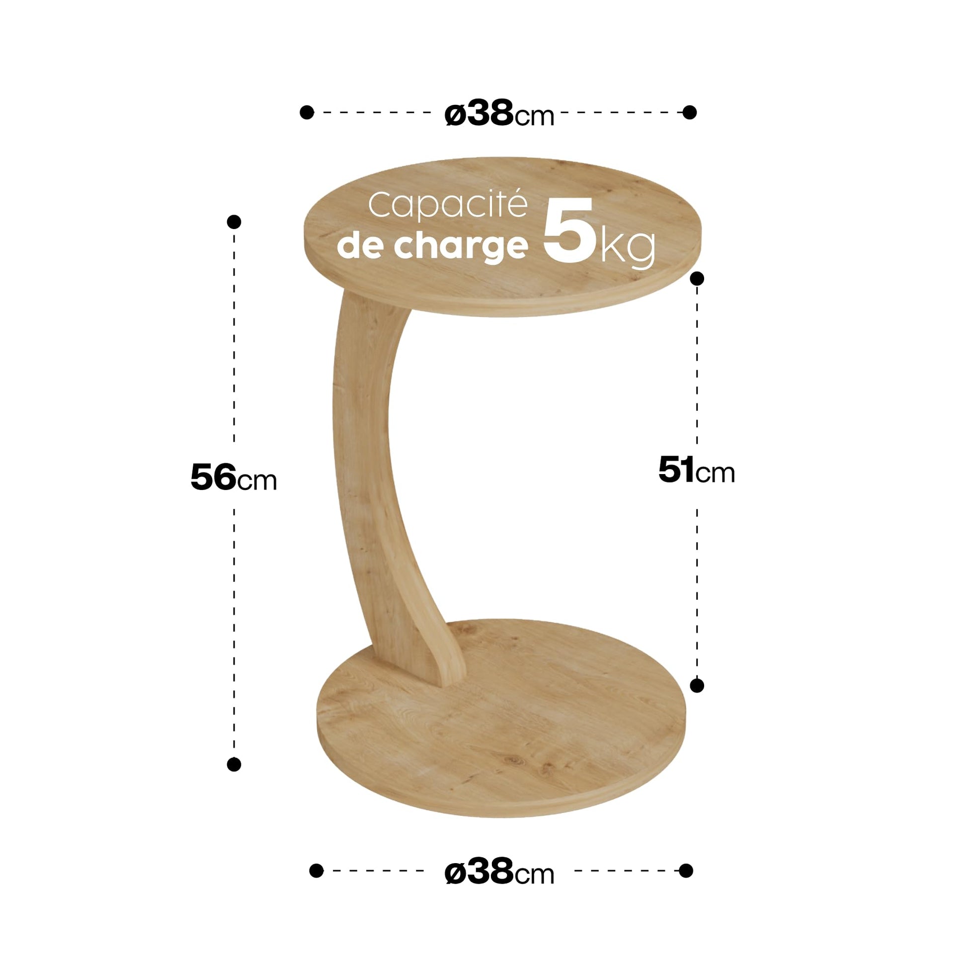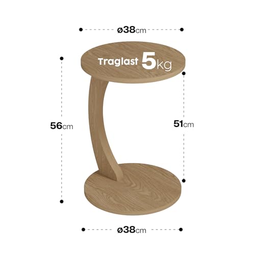 - Taille compacte : petite table ronde avec surface de table de 38 cm de diamètre et une hauteur totale de 56 cm, idéale comme étagère de canapé et compatible avec tous les types de canapés courants. #