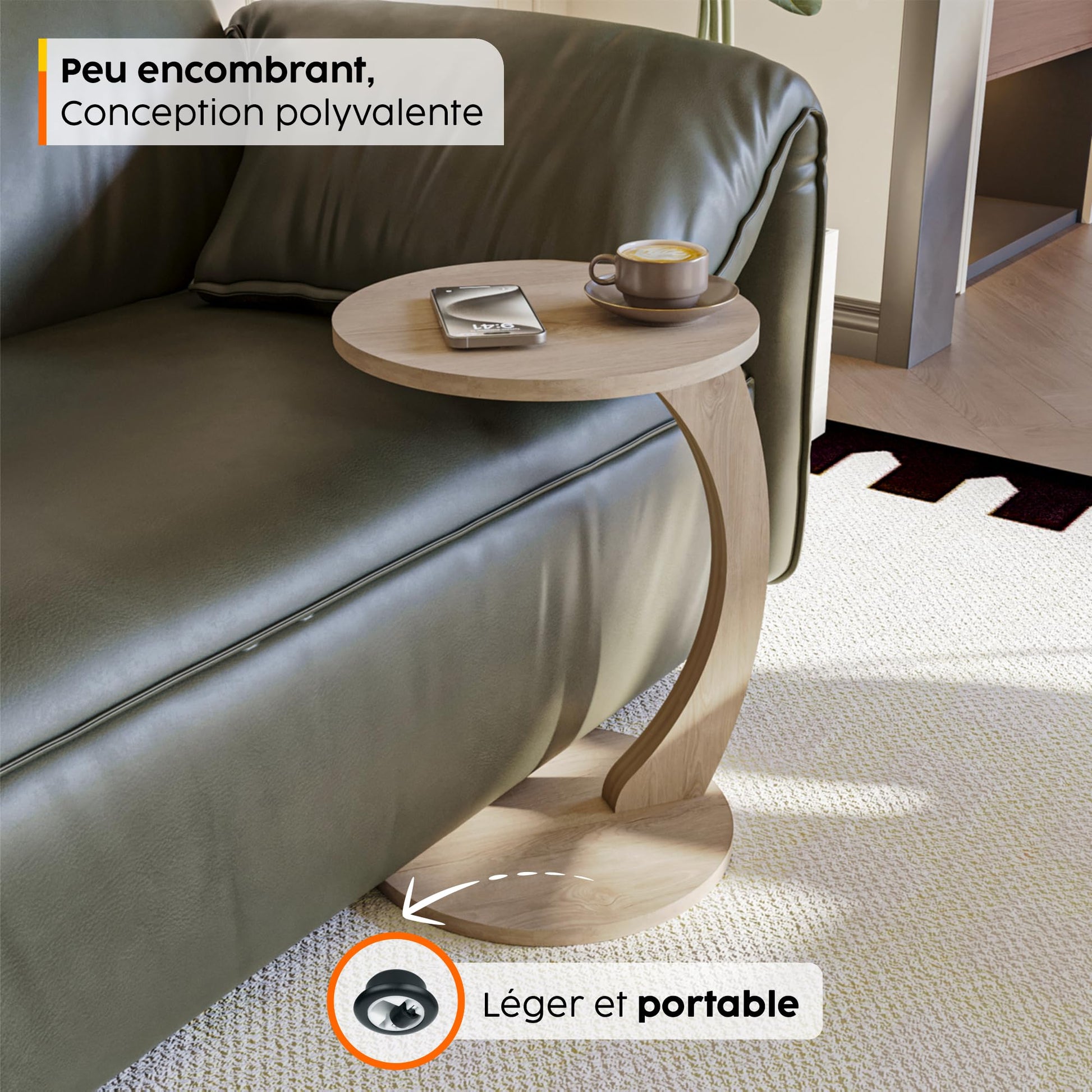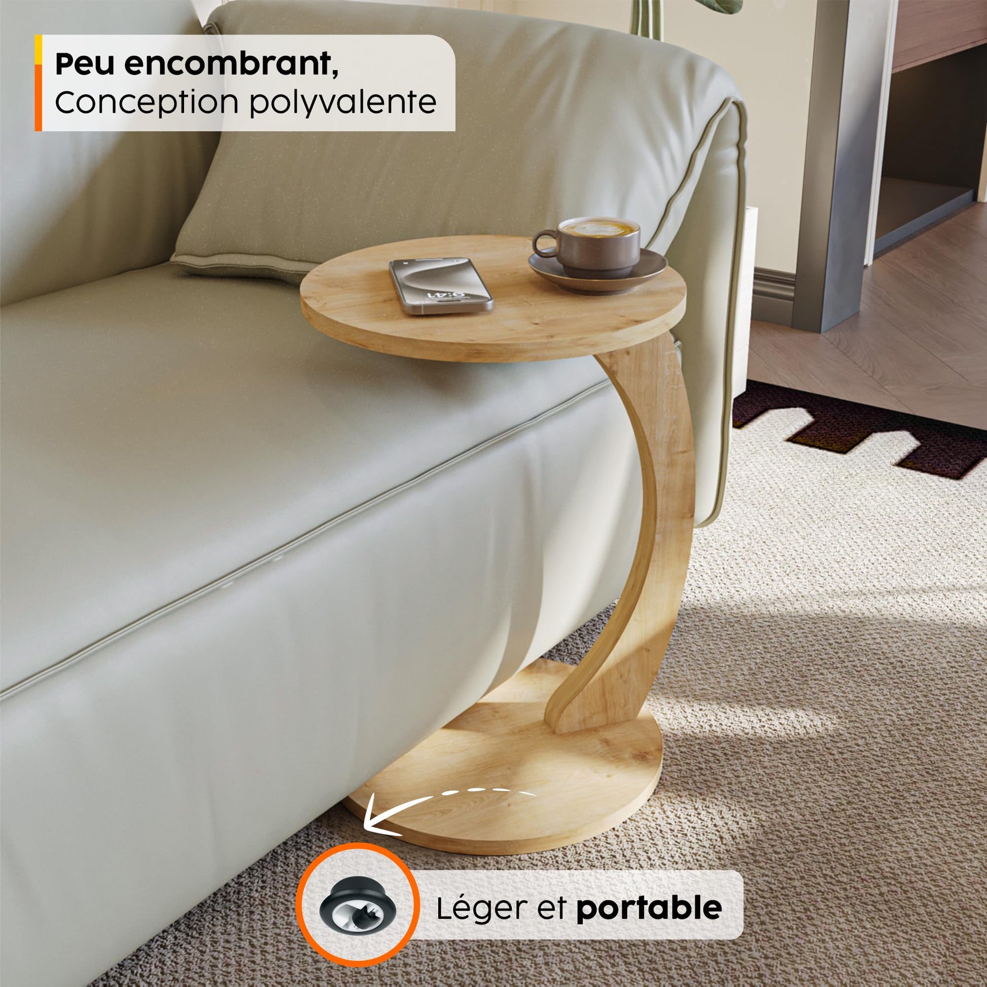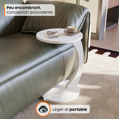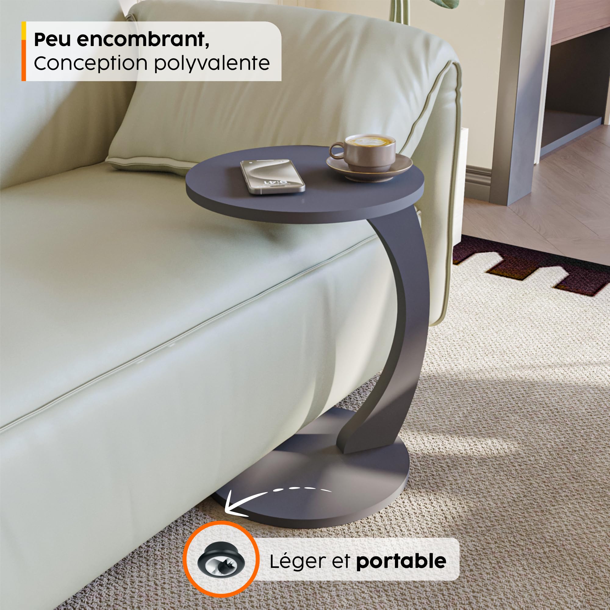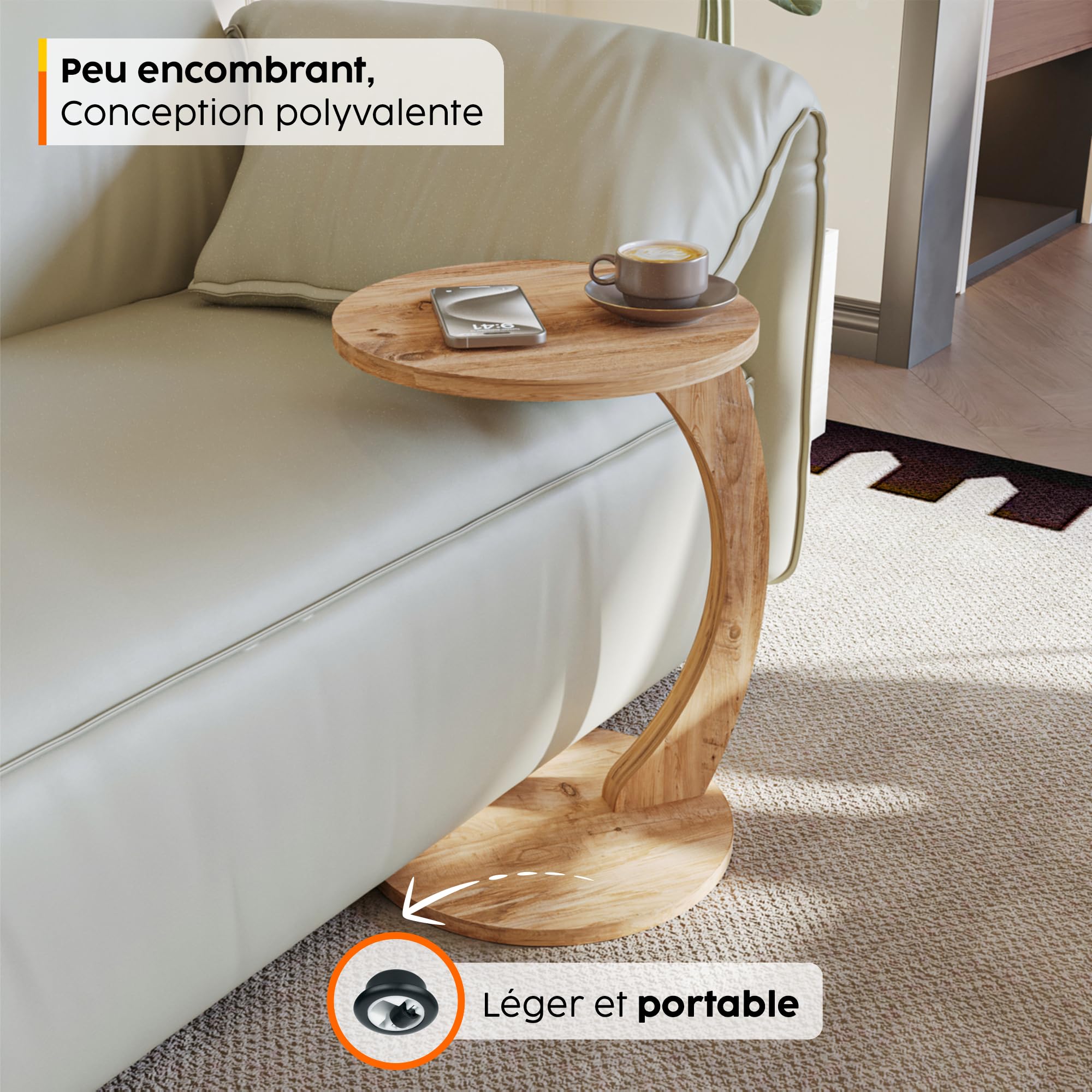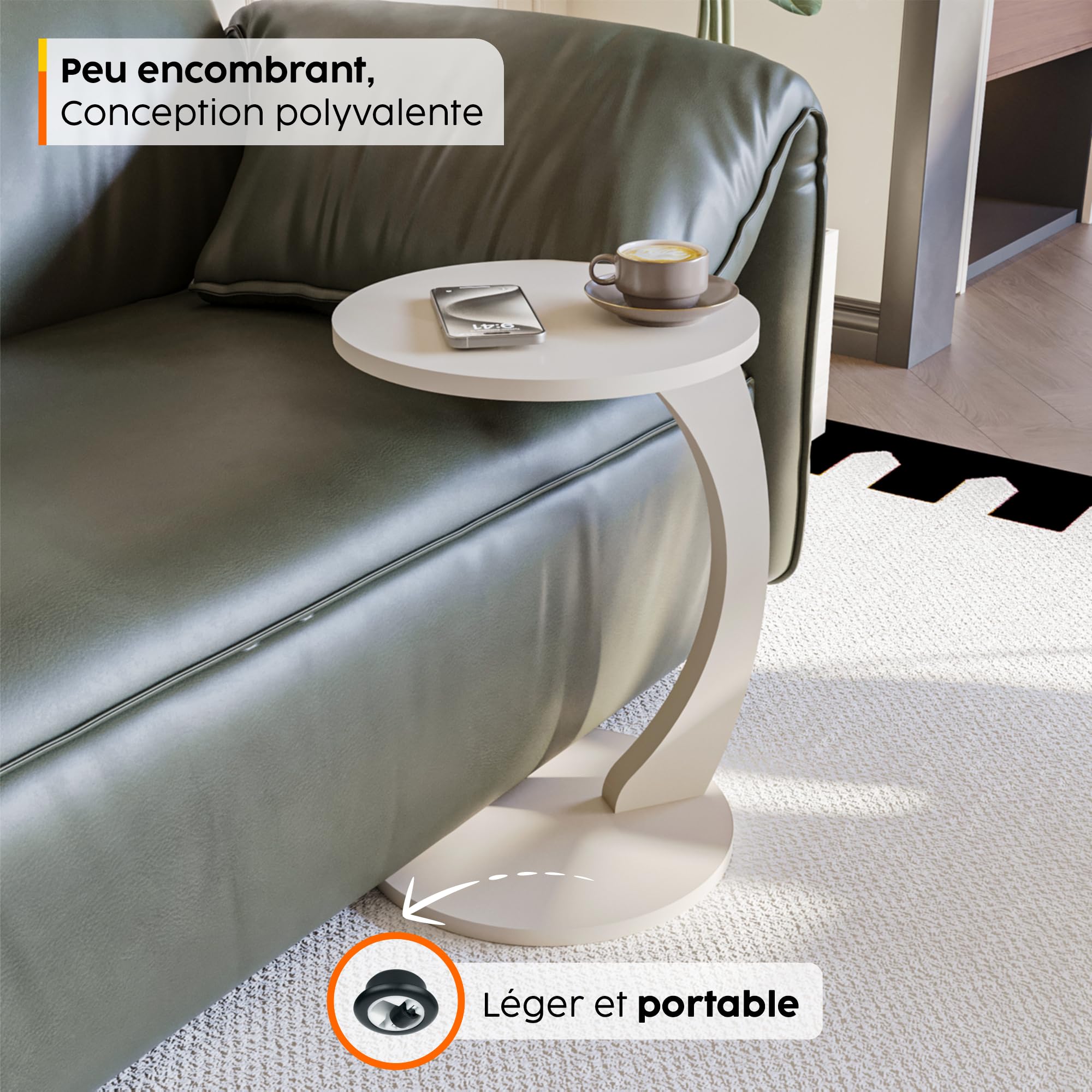 - Design astucieux : grâce à sa forme en C pratique, cette table de canapé s'adapte parfaitement au coussin du canapé, tout en se glissant facilement sous le siège. Pour une manipulation plus facile, nous avons équipé la table d'appoint de roulettes.