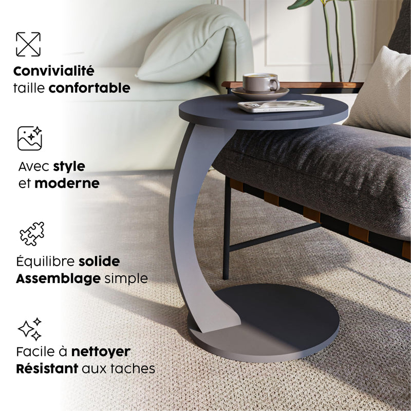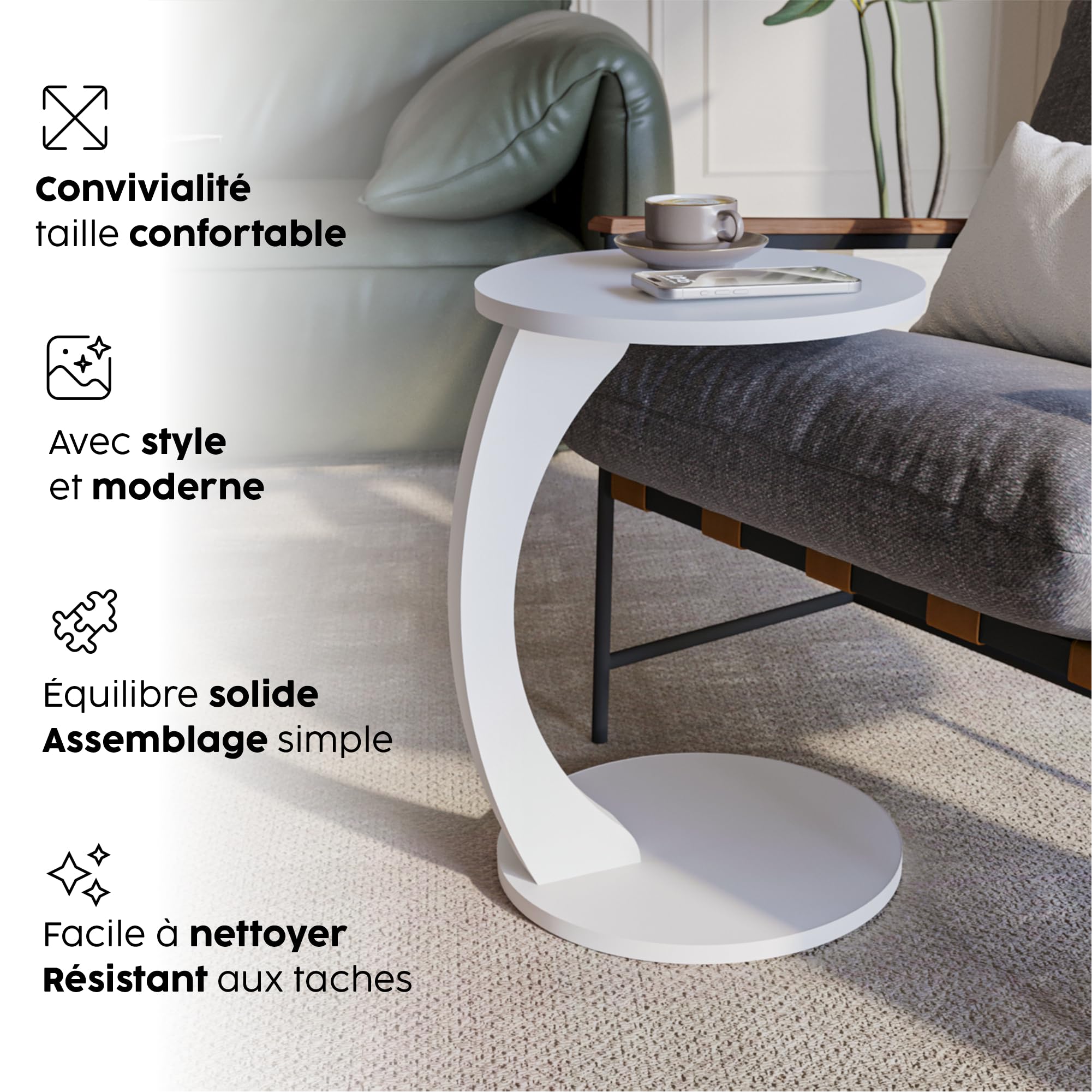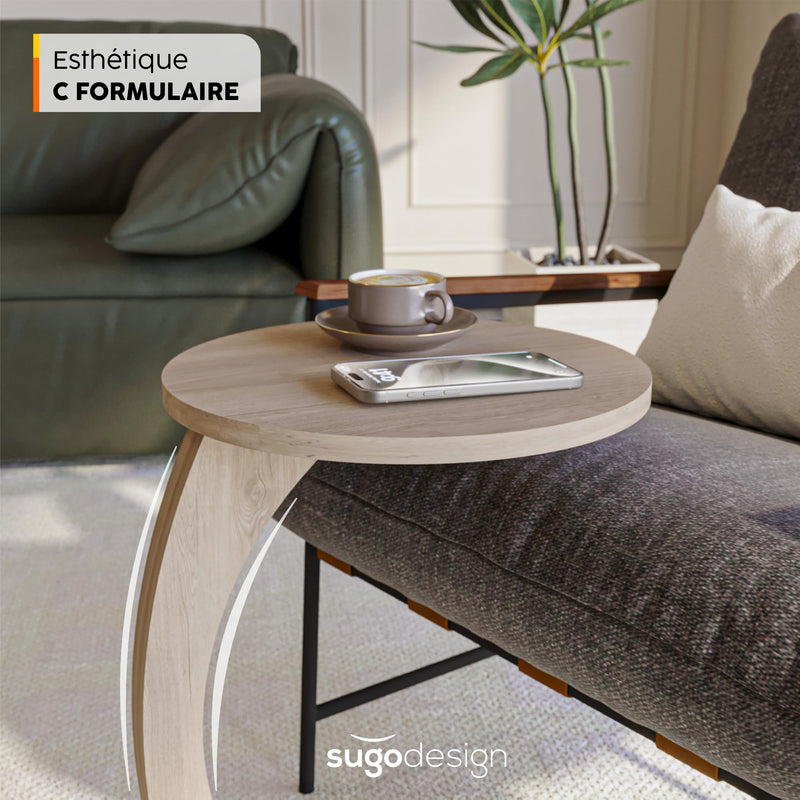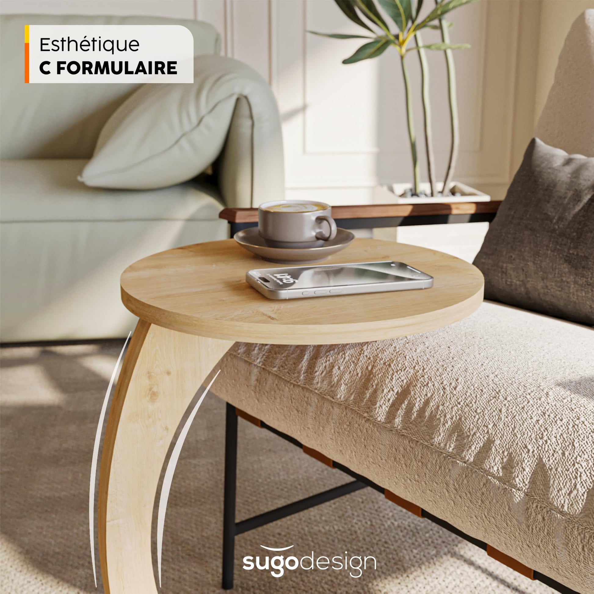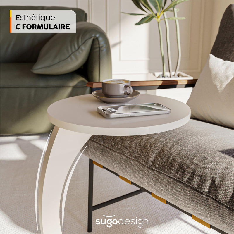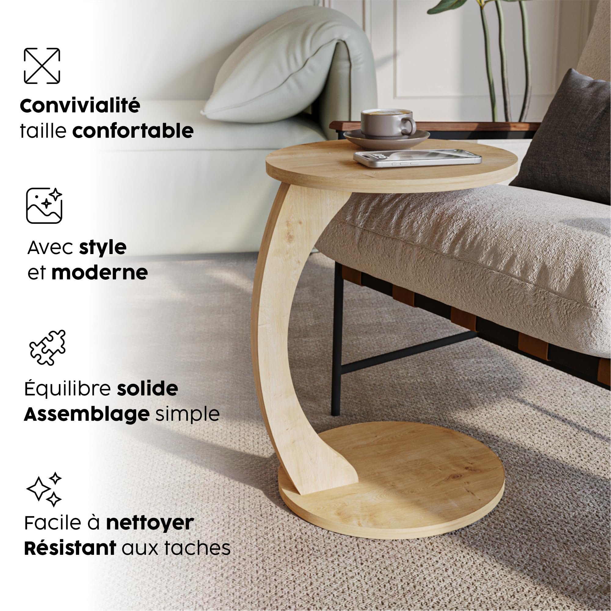 - Design astucieux : grâce à sa forme en C pratique, cette table de canapé s'adapte parfaitement au coussin du canapé, tout en se glissant facilement sous le siège. Pour une manipulation plus facile, nous avons équipé la table d'appoint de roulettes.
