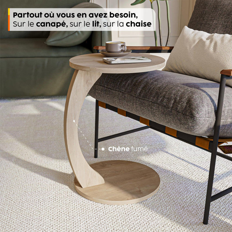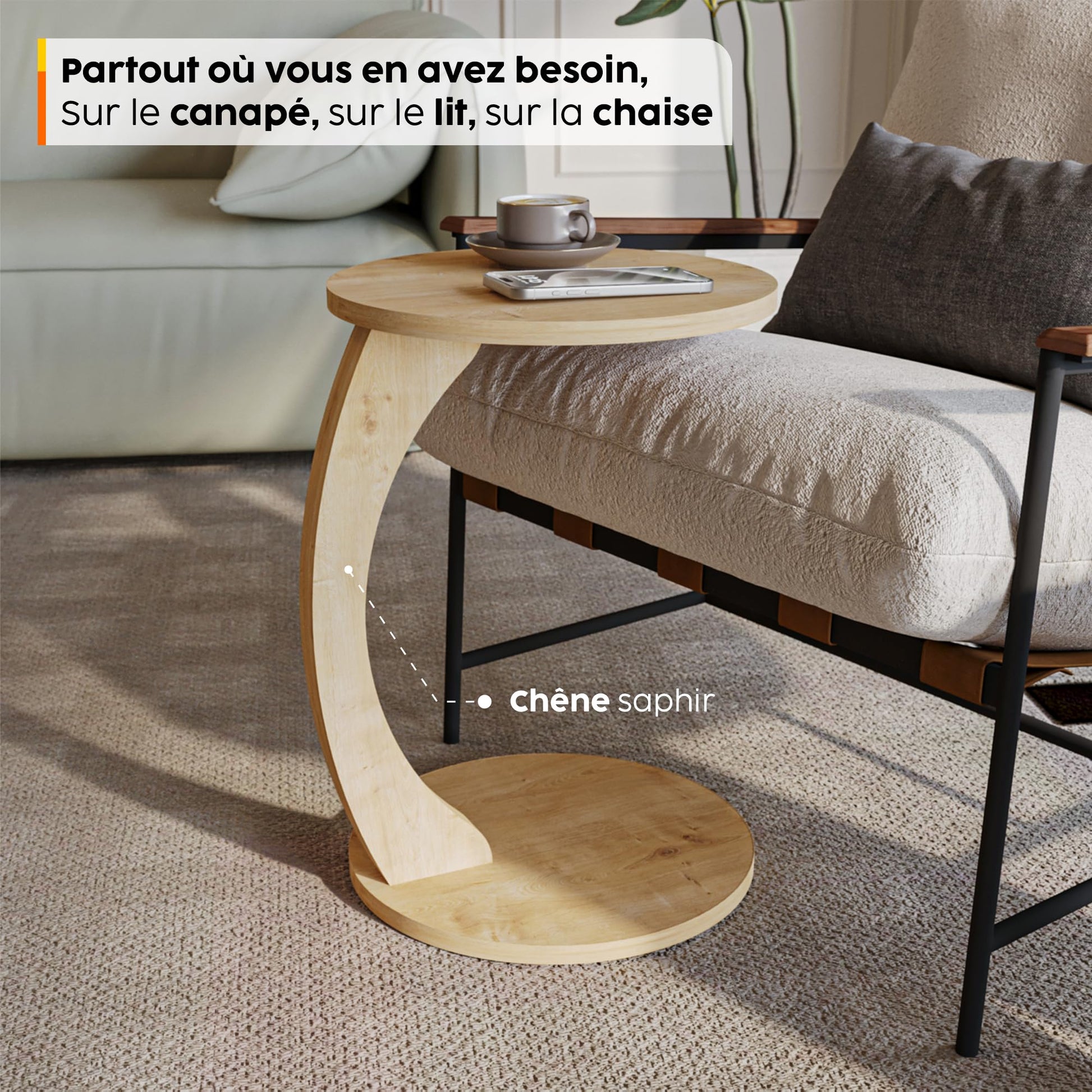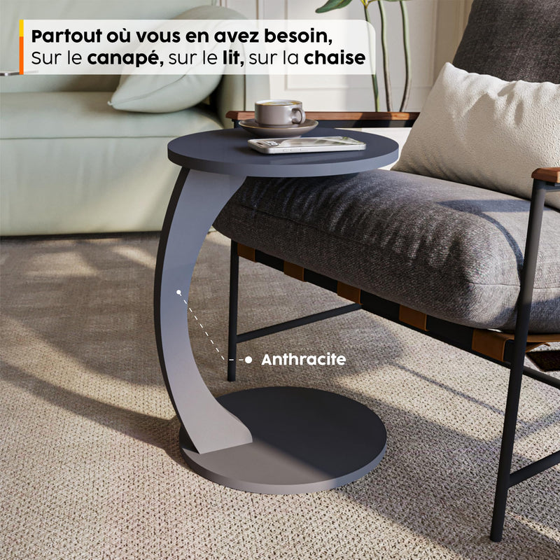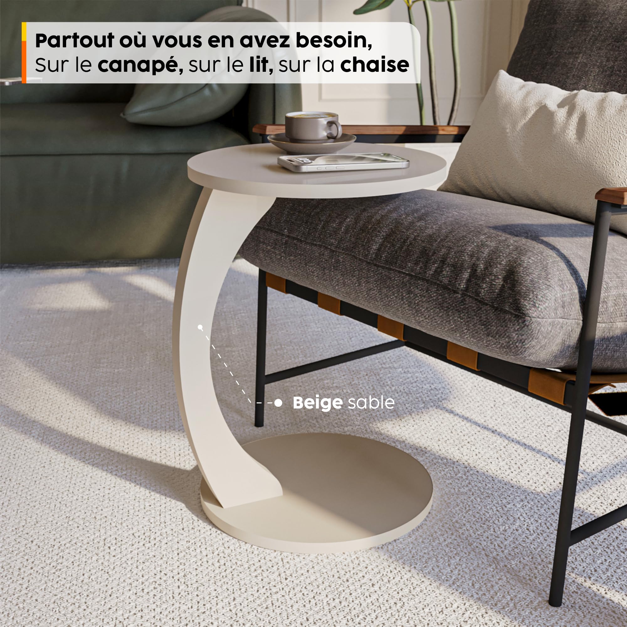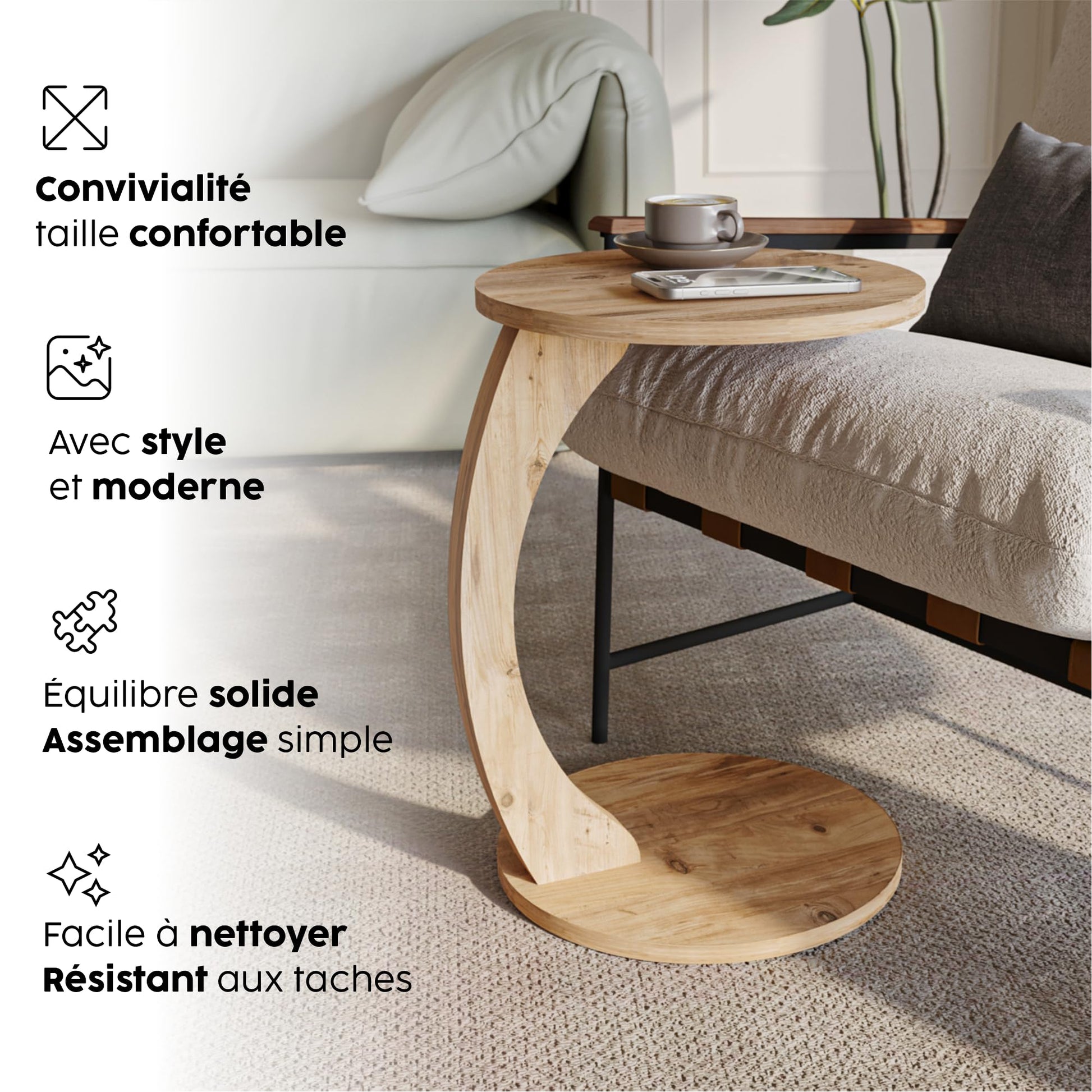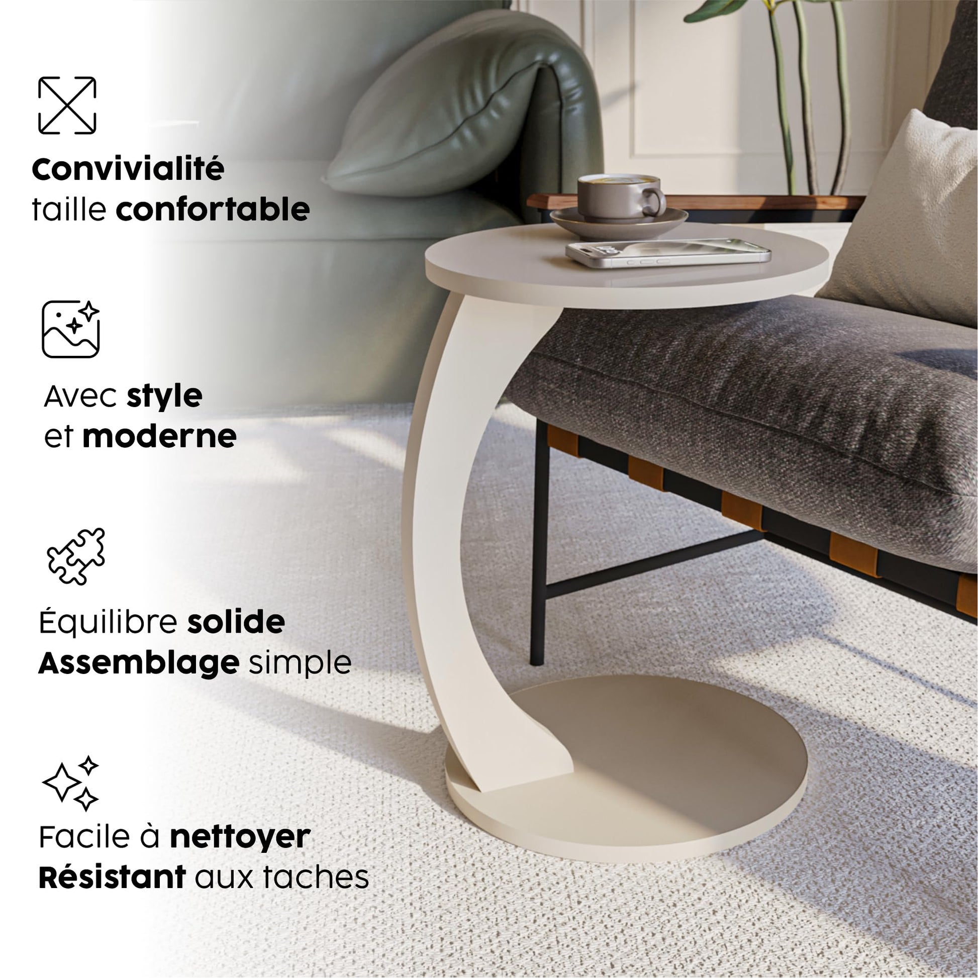 - Design astucieux : grâce à sa forme en C pratique, cette table de canapé s'adapte parfaitement au coussin du canapé, tout en se glissant facilement sous le siège. Pour une manipulation plus facile, nous avons équipé la table d'appoint de roulettes.