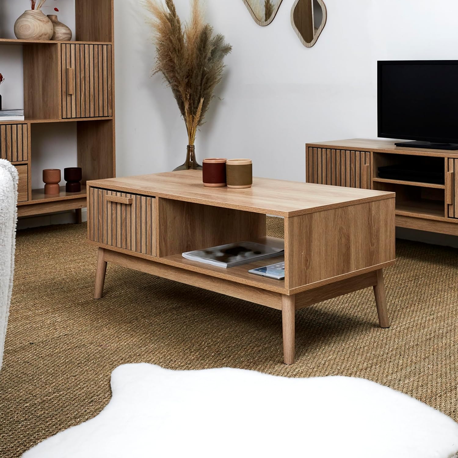 - Pratique : Ce meuble possède un tiroir ainsi qu'une case pour y ranger vos affaires ou les exposer.