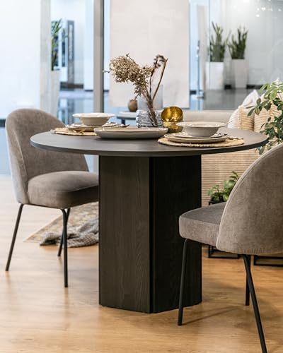 - Extensible : Non ; Forme de la table : Ronde ; Hauteur : 75 cm ; Largeur : 110 cm ; Profondeur : 110 cm ; Hauteur des pieds : 73 cm ; Matériau : Panneau laminé ; Matériau du plateau : Panneau de meuble ; Matériau des pieds : Panneau de meuble ; Protection des bords : Bords ABS.