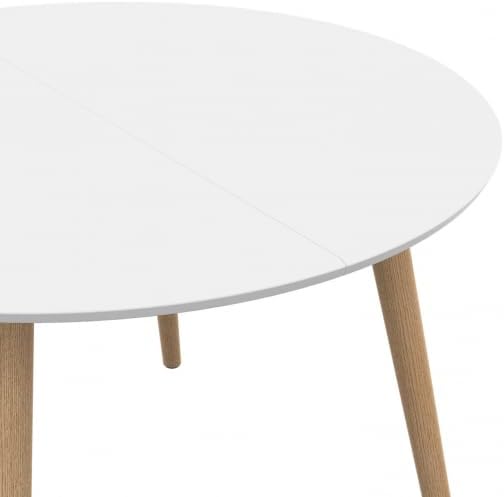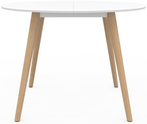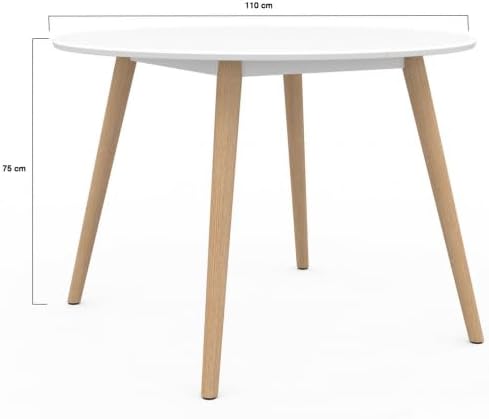 Avec son design tendance et intemporel, la table à manger ronde ANGELA 4 personnes blanc pieds bois s'adaptera parfaitement à tous les styles de décoration.Stable et robuste, cette table à manger est idéale pour une utilisation quotidienne. Avec son plateau blanc et ses 4 pieds en bois biseautés style scandinave, elle apportera une touche cosy et chaleureuse à votre salle à manger.Parfaite pour les petits espaces, cette table n'encombra pas votre pièce de vie grâce à sa forme arrondie. Partagez de bons moments en famille ou entre amis autour de la table à manger scandinave ANGELA et accueillez jusqu'à 4 personnes ! N'attendez plus et craquez pour cette table à manger ronde ANGELA blanc et bois au diamètre 110 cm ! Dimensions de la table à manger ronde ANGELA bois et blanc 110 cmDimensions globales : Diamètre 110 cm x Hauteur 75 cmMatériaux : plateau en MDF et pieds en boisColoris : blanc et boisPlateau coupé en 2 Capacité : 4 personnesÀ monter soi-mêmeRetrouvez l'ensemble de nos tables à manger sur notre boutique en ligne !