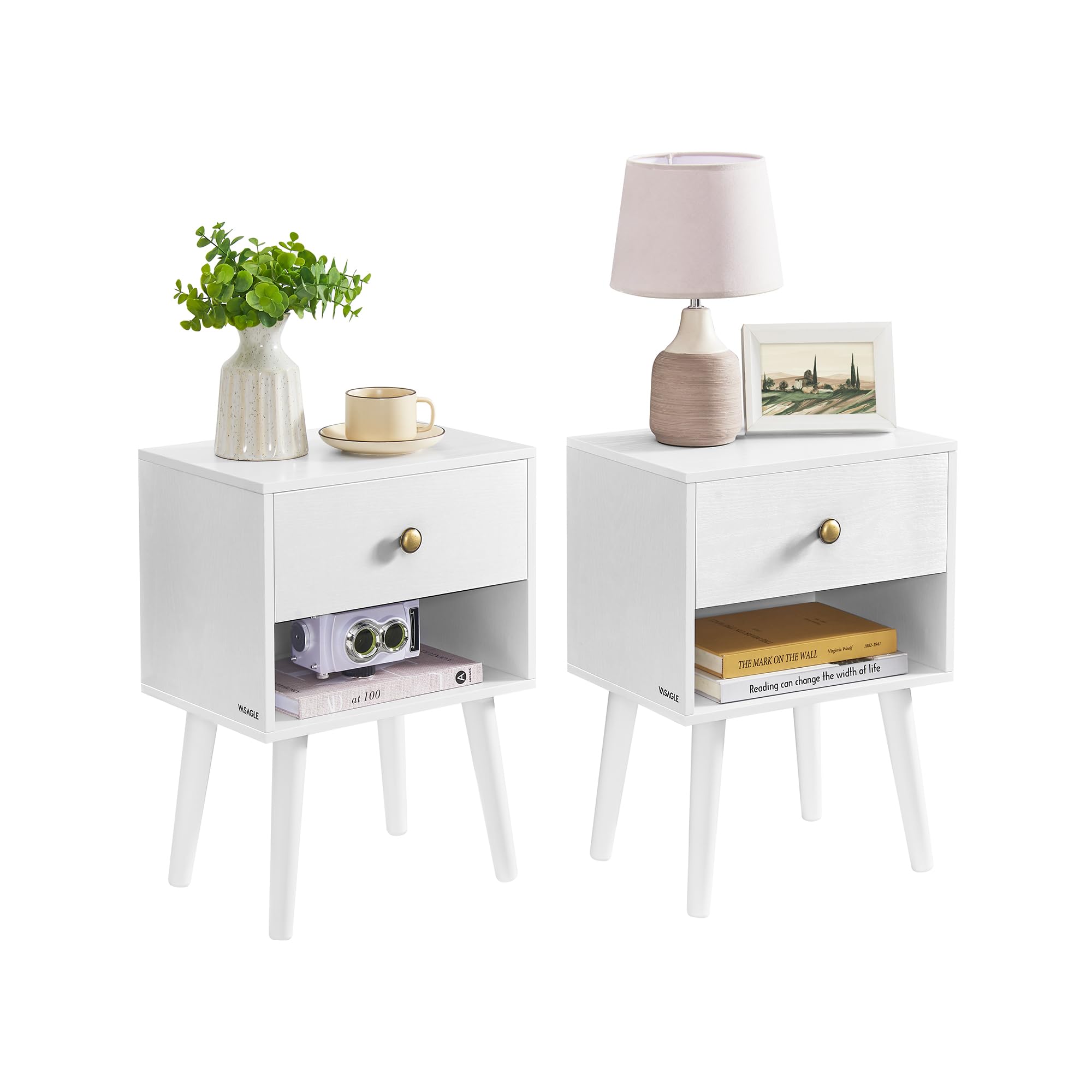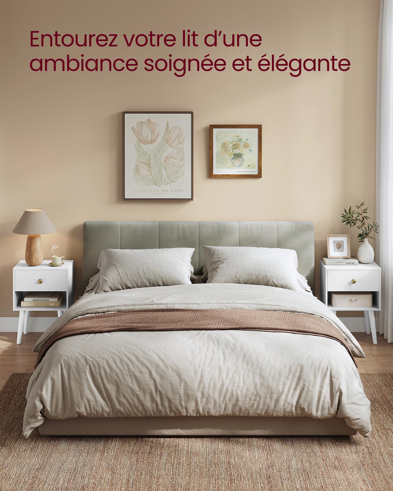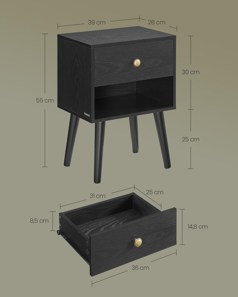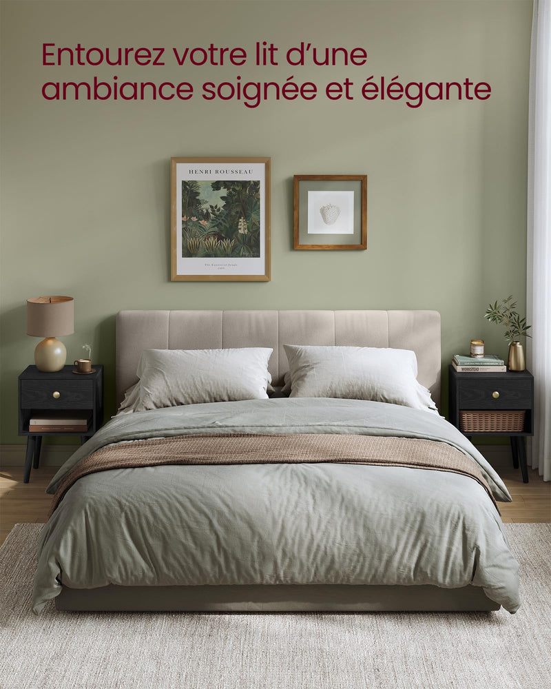 - 【NOMBREUX RANGEMENT】Conçue pour répondre à vos besoins de rangement, chaque table de nuit comporte un grand plateau pour la lampe ou vos objets déco, un tiroir fermé pour vos effets personnels et une étagère pour garder vos livres à portée de main