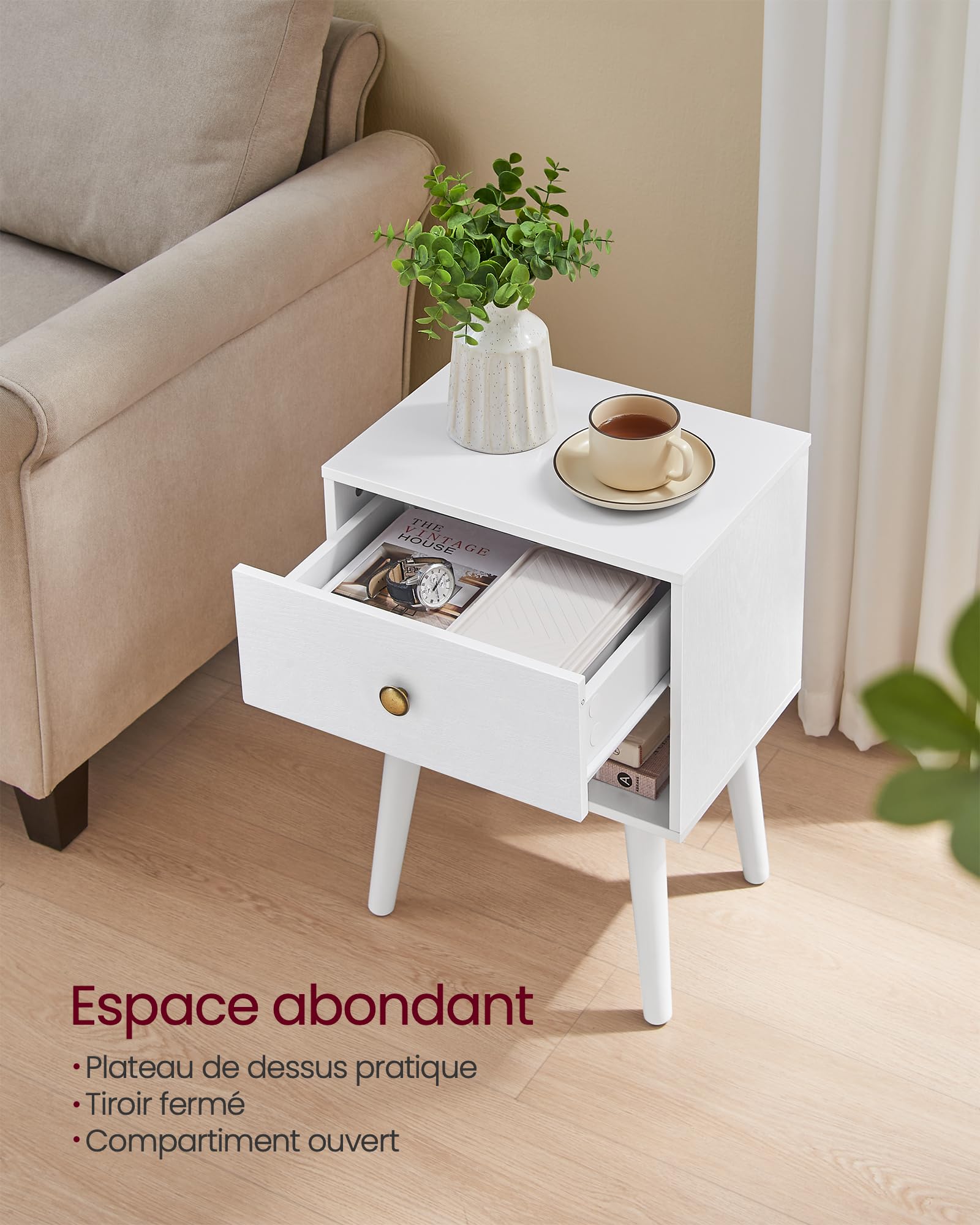 - 【TIROIR FACILE À OUVRIR ET À FERMER】Doté de glissières de qualité, le tiroir de ces table d’appoint est facile à ouvrir et à fermer, pour pouvoir prendre et ranger facilement des objets