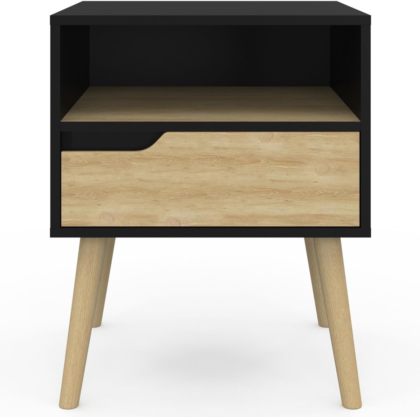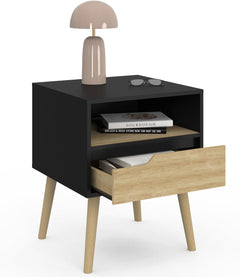 - Lot de 2 chevets HELSINKI nordiques noirs avec une niche et un tiroir pour une chambre ordonnée !