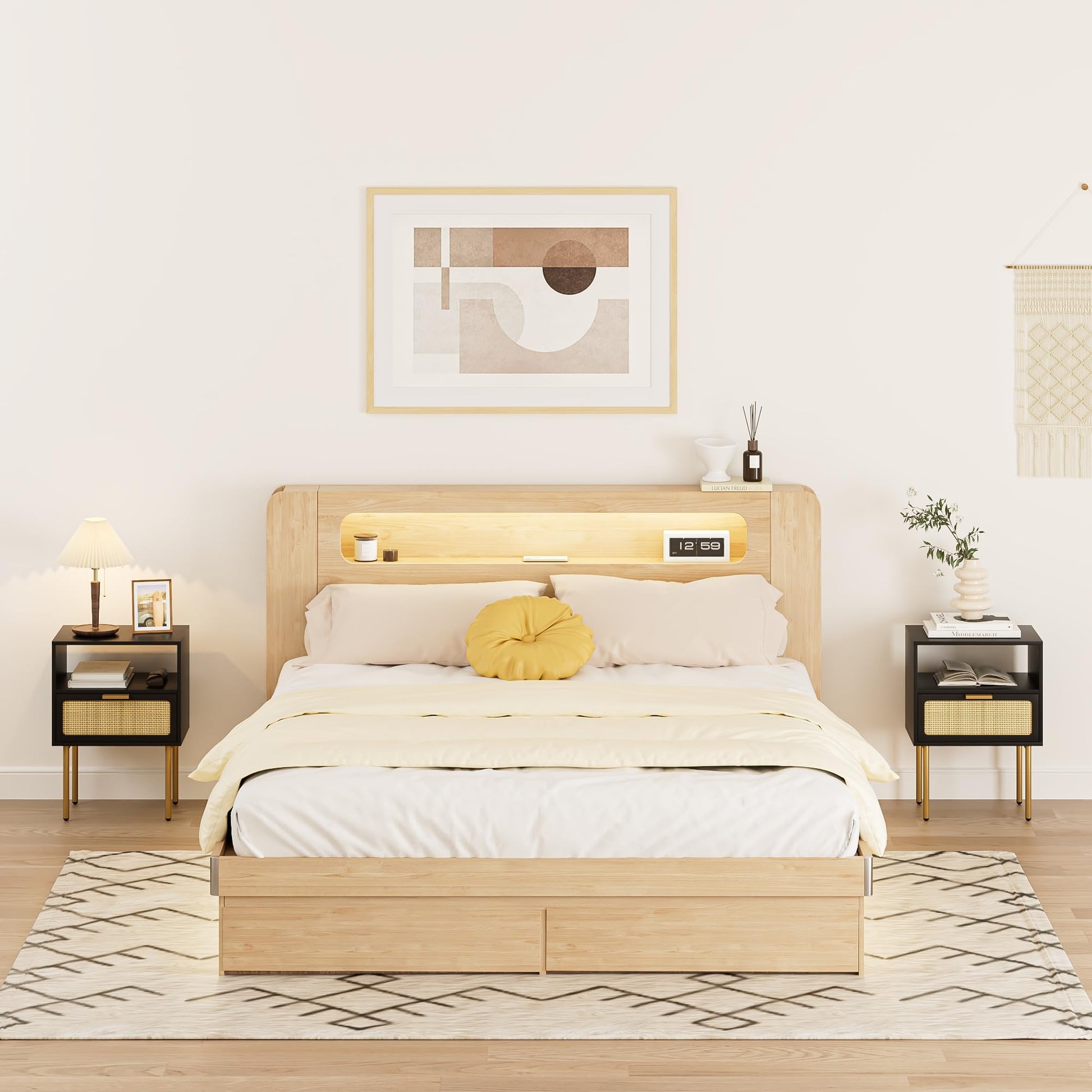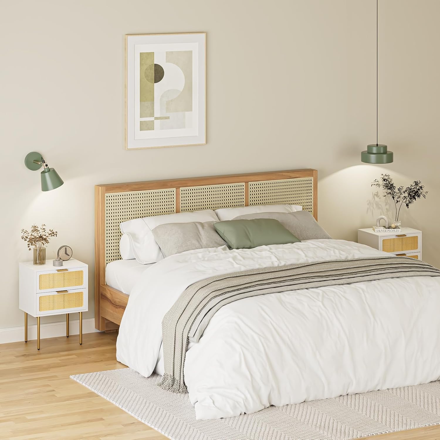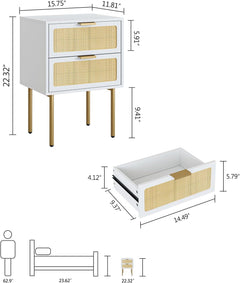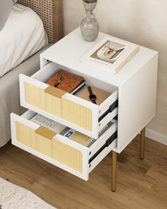 HEYZOEY Table de chevet en rotin avec tiroir, table de chevet avec pieds en bois pour chambre à coucher, salon, chêne naturel