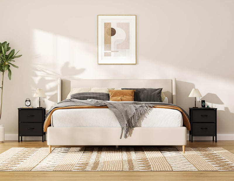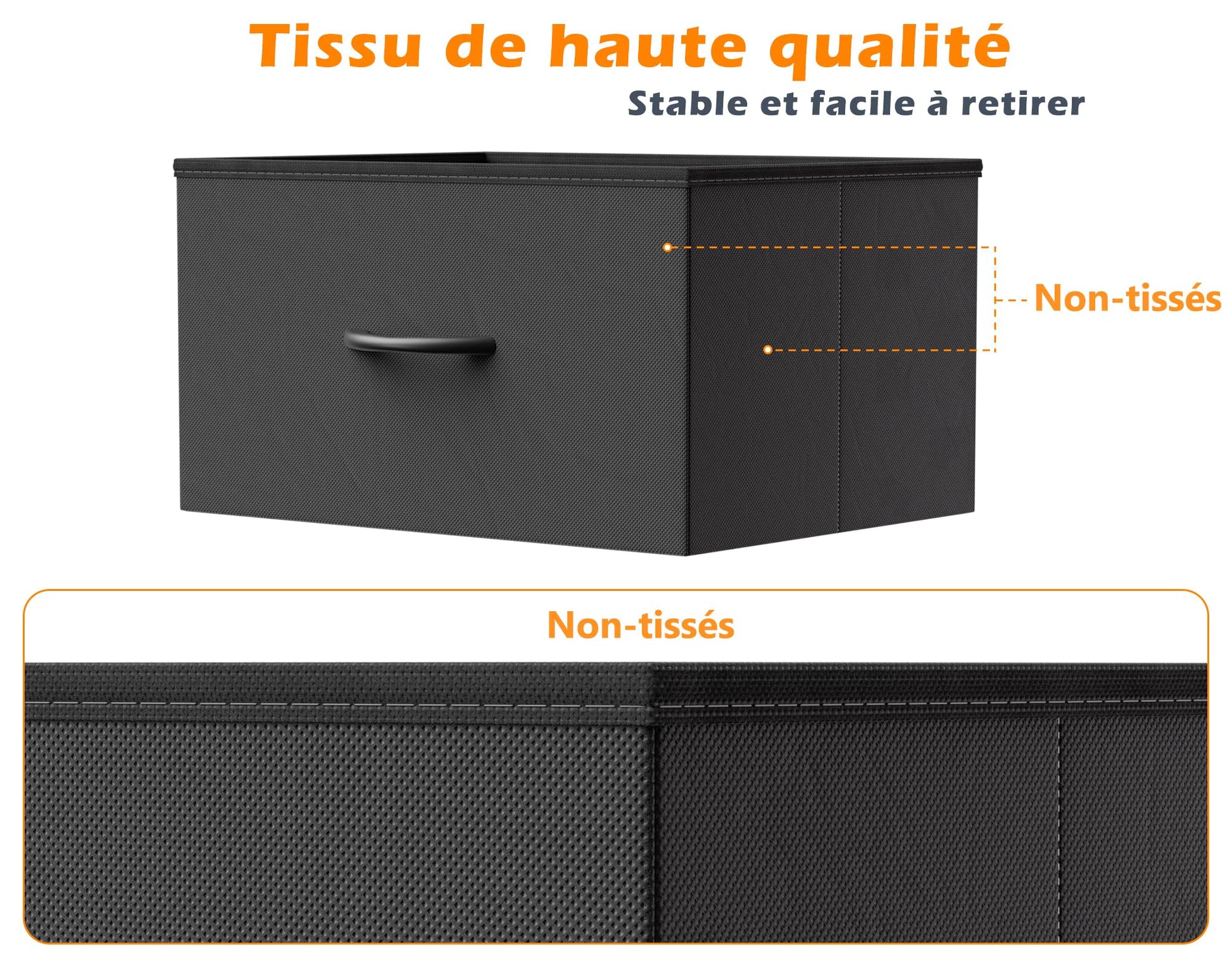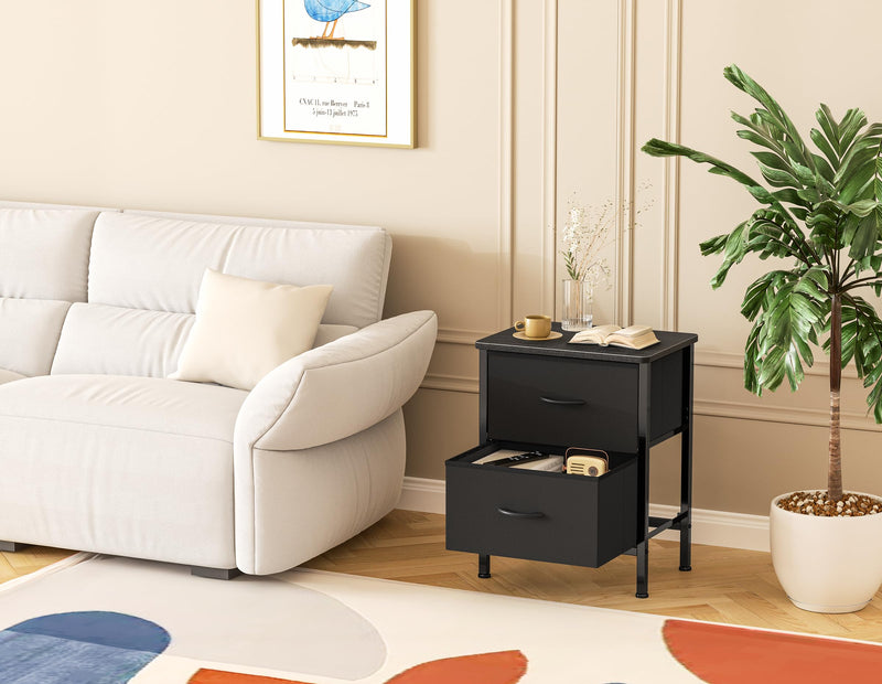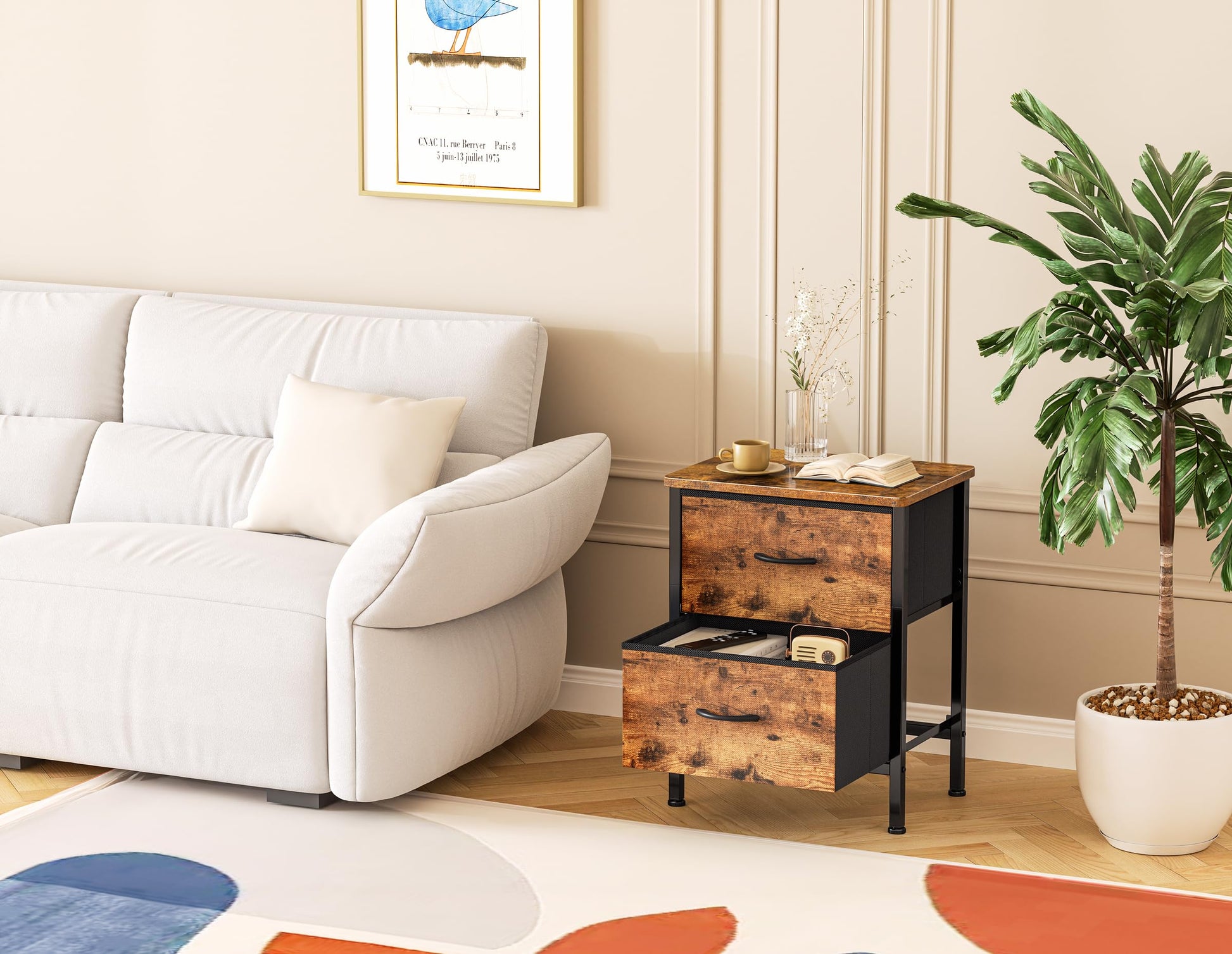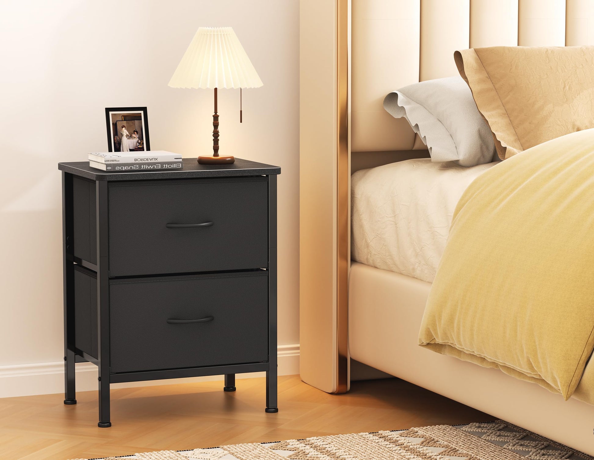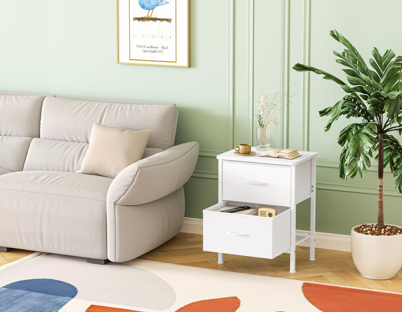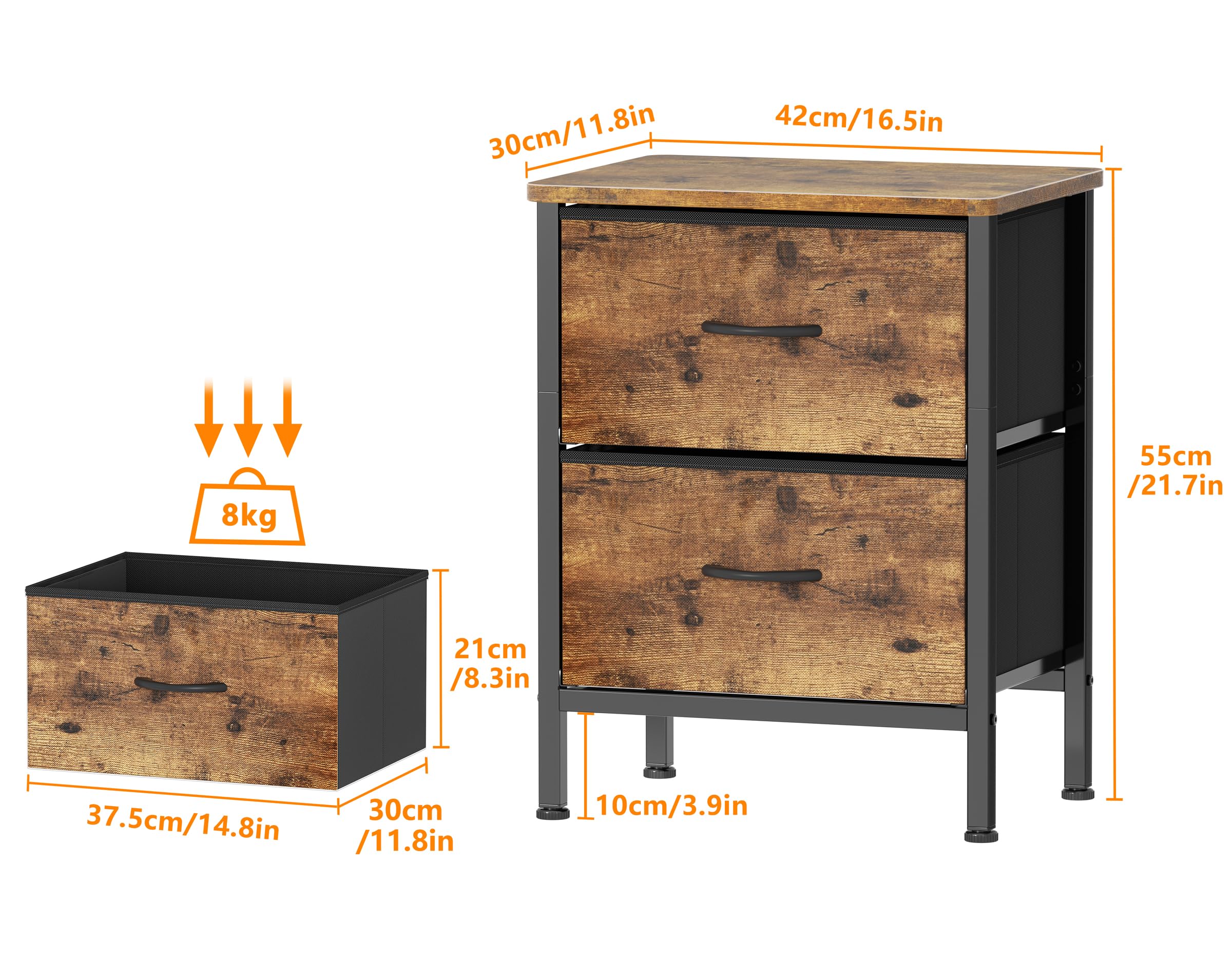 - 【Grand espace de rangement】Cette table de chevet dispose de deux tiroirs en tissu spacieux (37,5 x 27 x 21 cm chacun). Ils accueillent sans effort télécommandes, chargeurs, jouets et couvertures, pour une chambre toujours organisée et épurée.