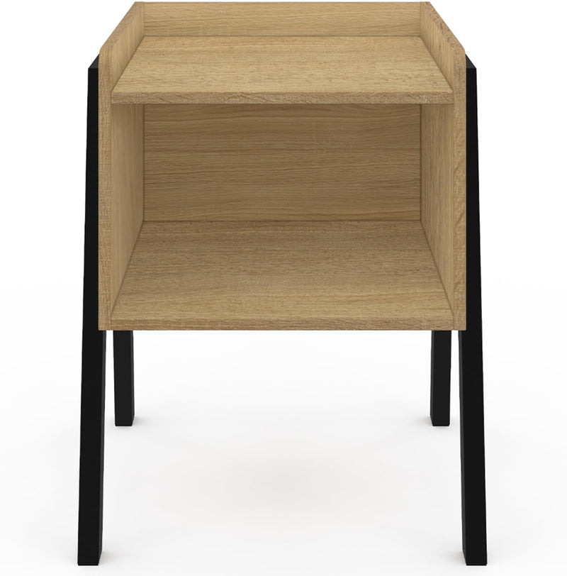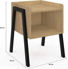 À la recherche de tables de chevet ou petites tables d'appoint ? Craquez pour le lot de 2 chevets DALAT. Leur design industriel apportera une touche tendance loft à votre intérieur en un clin d'œil.Que vous vous en serviez en tant que table de chevet ou table d'appoint en bout de canapé, vous pourrez y ranger aisément ce que vous souhaitez. En effet, leur tablette et leur niche de rangement vous permettent d'entreposer facilement vos effets personnels comme un réveil, des livres, bibelots ou lampe de chevet. Leur coloris bois et noir s'intégrera facilement à tous types de décoration. Les pieds en métal noir confèrent aux chevets stabilité et robustesse dans le temps. Et leur hauteur de 50 cm est idéale pour garder vos effets personnels à portée de main depuis votre lit ou canapé. Alors n'hésitez plus et optez pour ce joli lot de 2 tables de chevet DALAT au design industriel ! Dimensions du lot de 2 chevets DALATDimensions globales : Longueur 40 cm x largeur 40 cm x Hauteur 50 cmDimensions niche : L. 37.5 x l. 38 x H. 20.5 cmHauteur rebord : 4 cmHauteur des pieds : 23 cmMatériaux : Panneaux de particules de bois (PB)Tubes en métalColoris : Bois et noirÀ monter soi-même