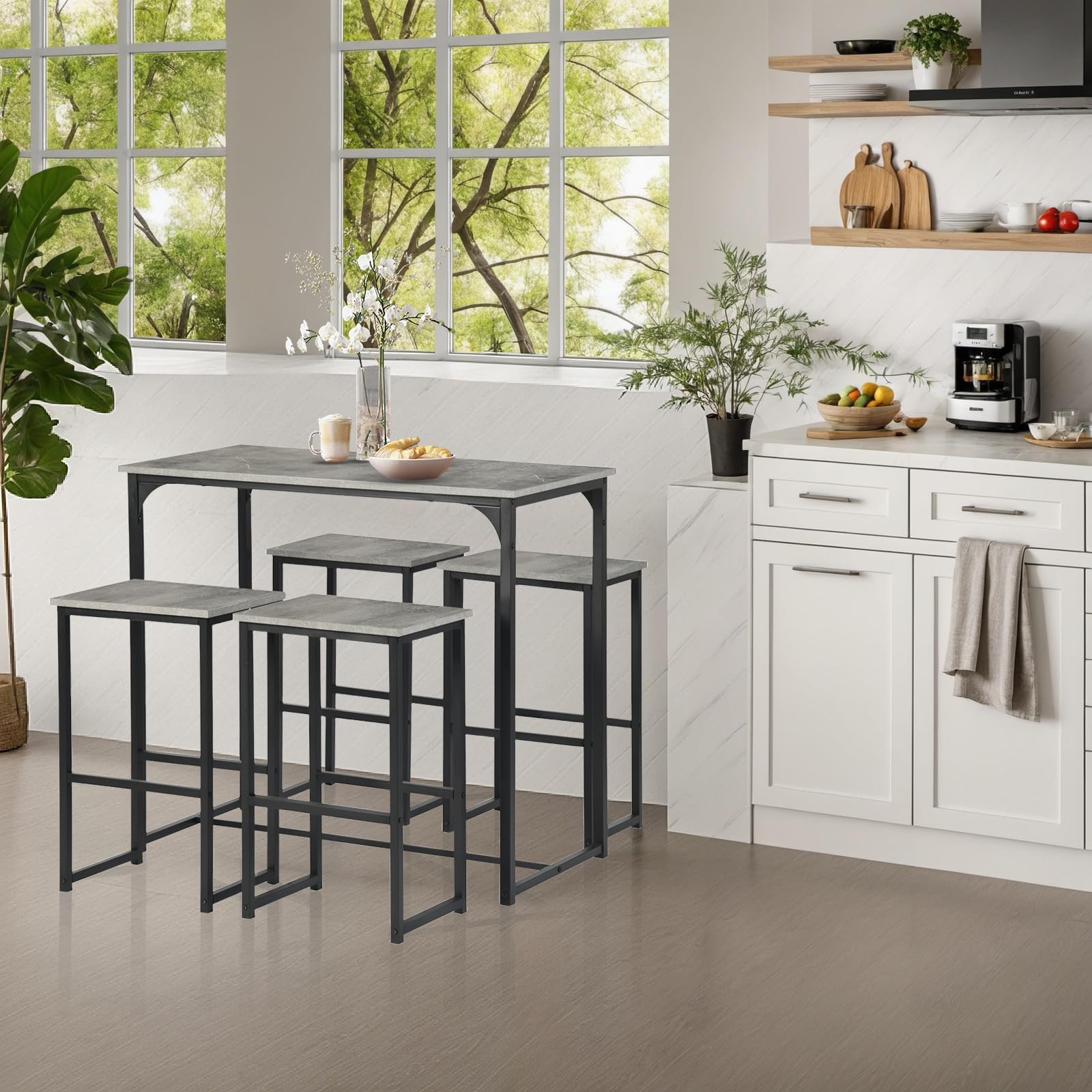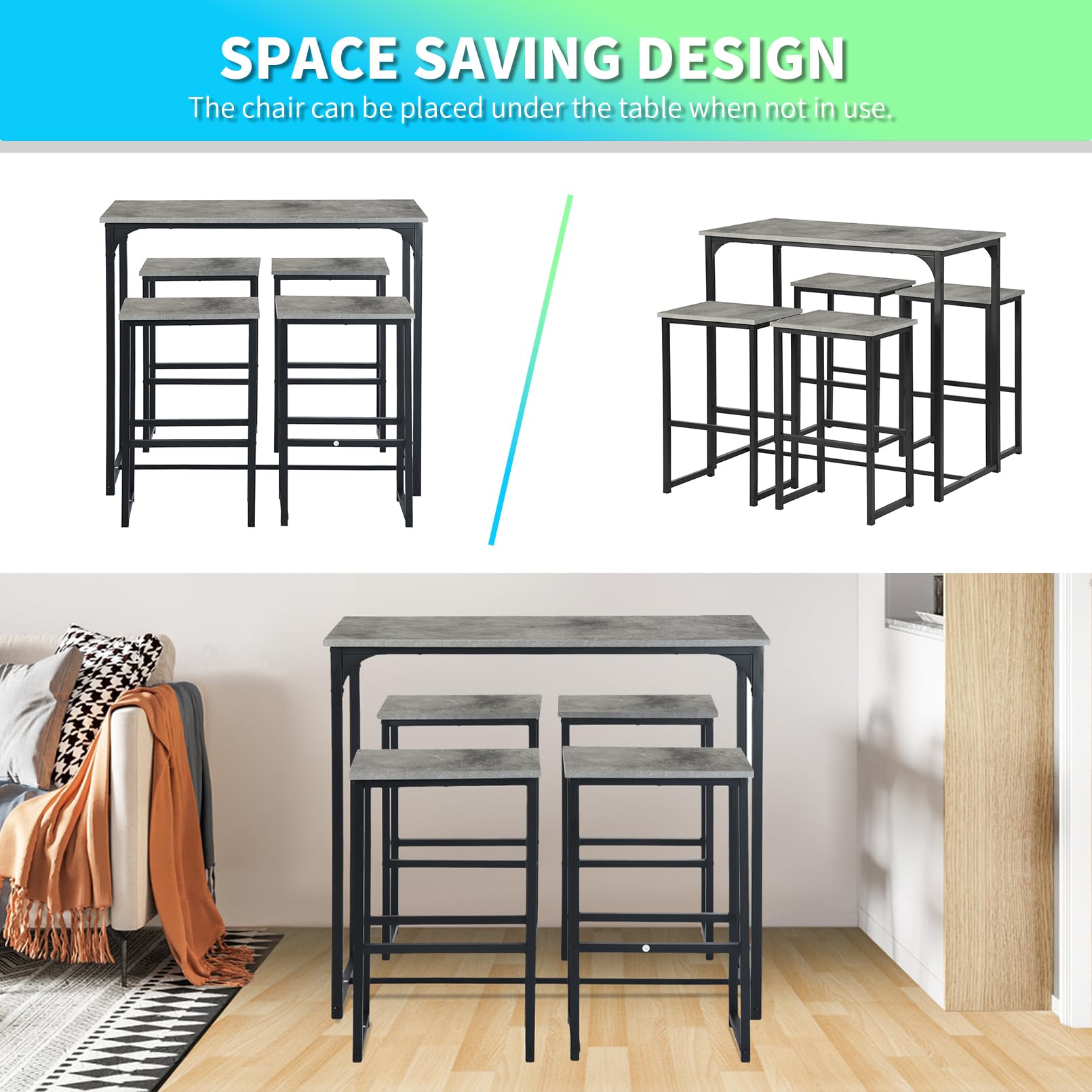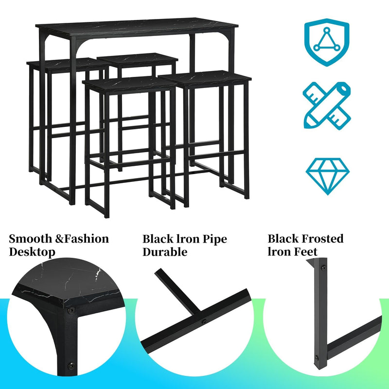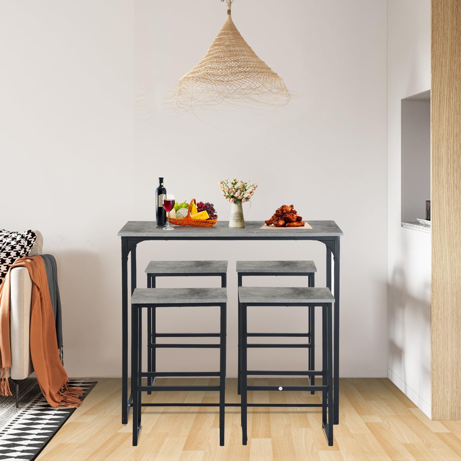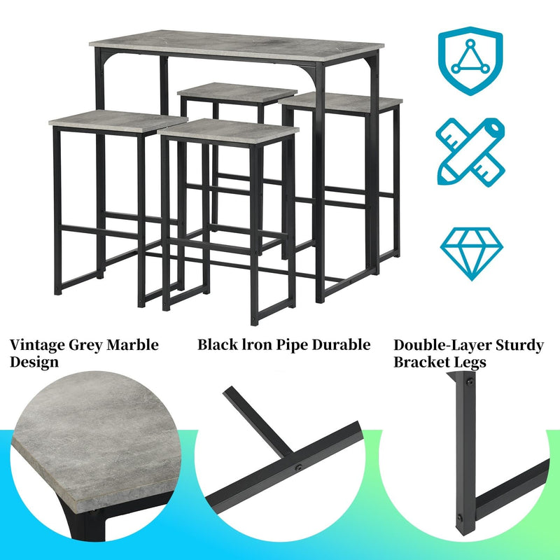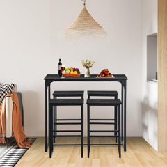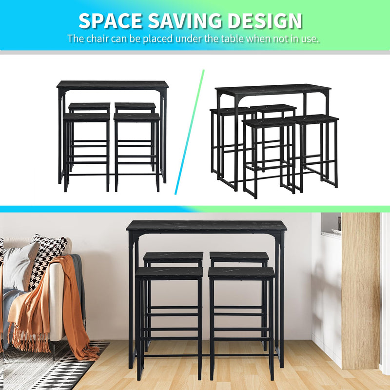 - Cette table de bar avec tabourets de bar composée d'une table de bar et de 4 tabourets de bar est parfaite pour un balcon, un bistro, une salle à manger ou une cuisine. Les chaises peuvent être facilement rangées sous la table pour économiser de l'espace.