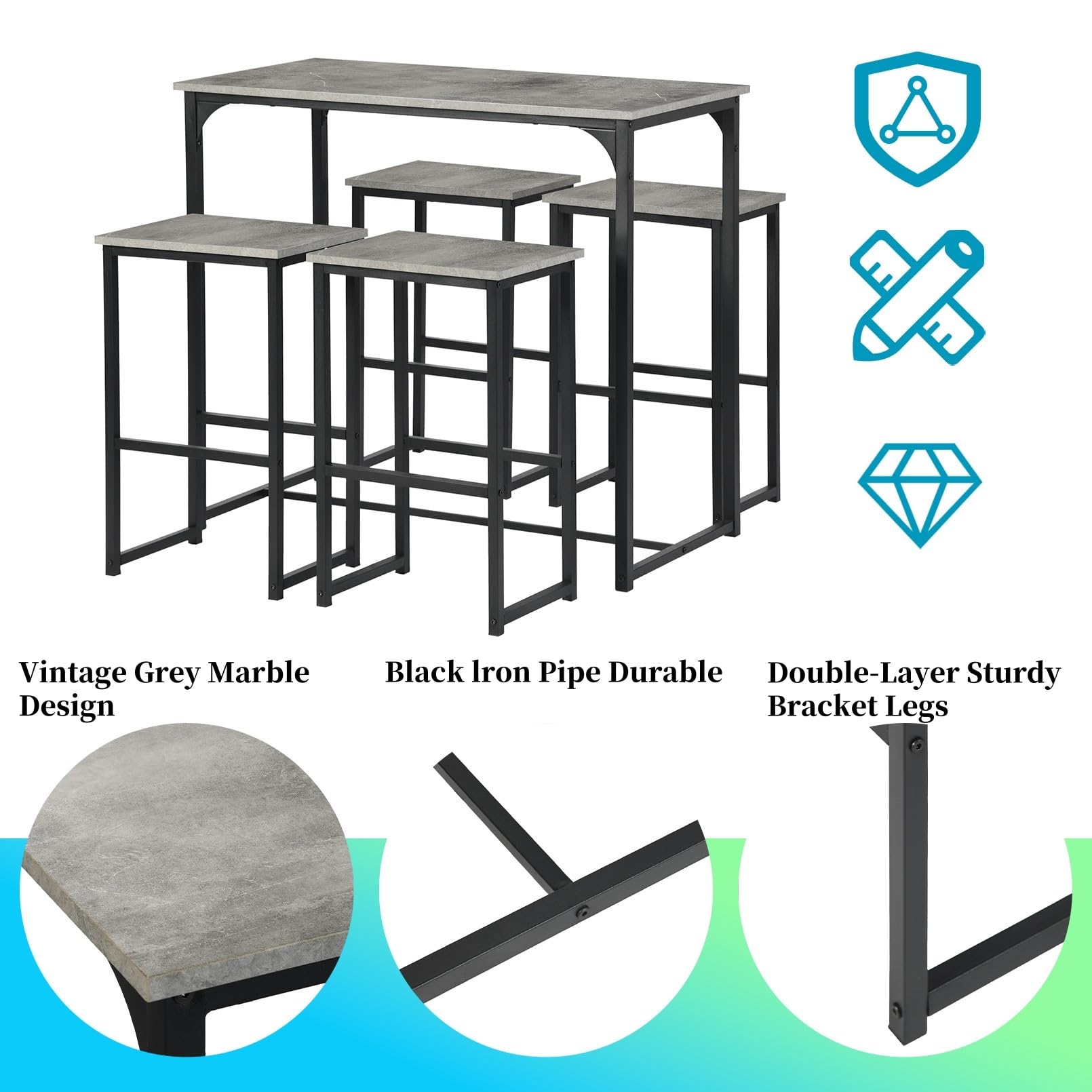 - L'ensemble de table de bar en bois est fabriqué en MDF et cadre en fer robuste et durable et est équipé de pieds en plastique pour protéger le sol des rayures.