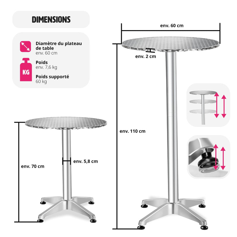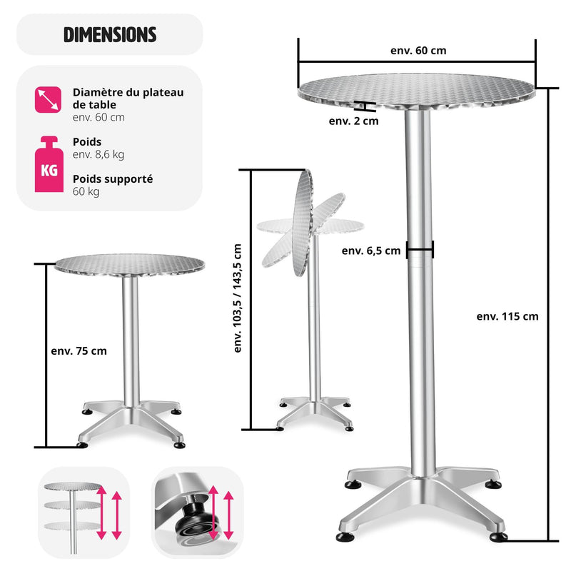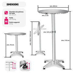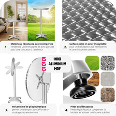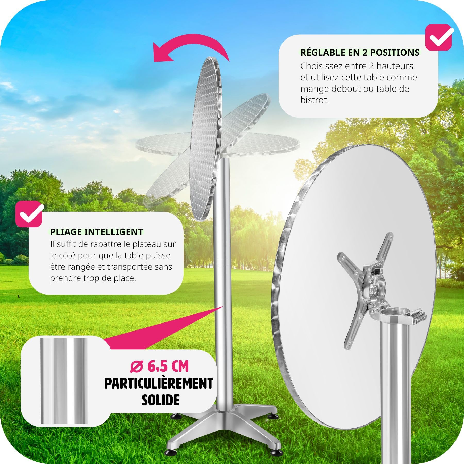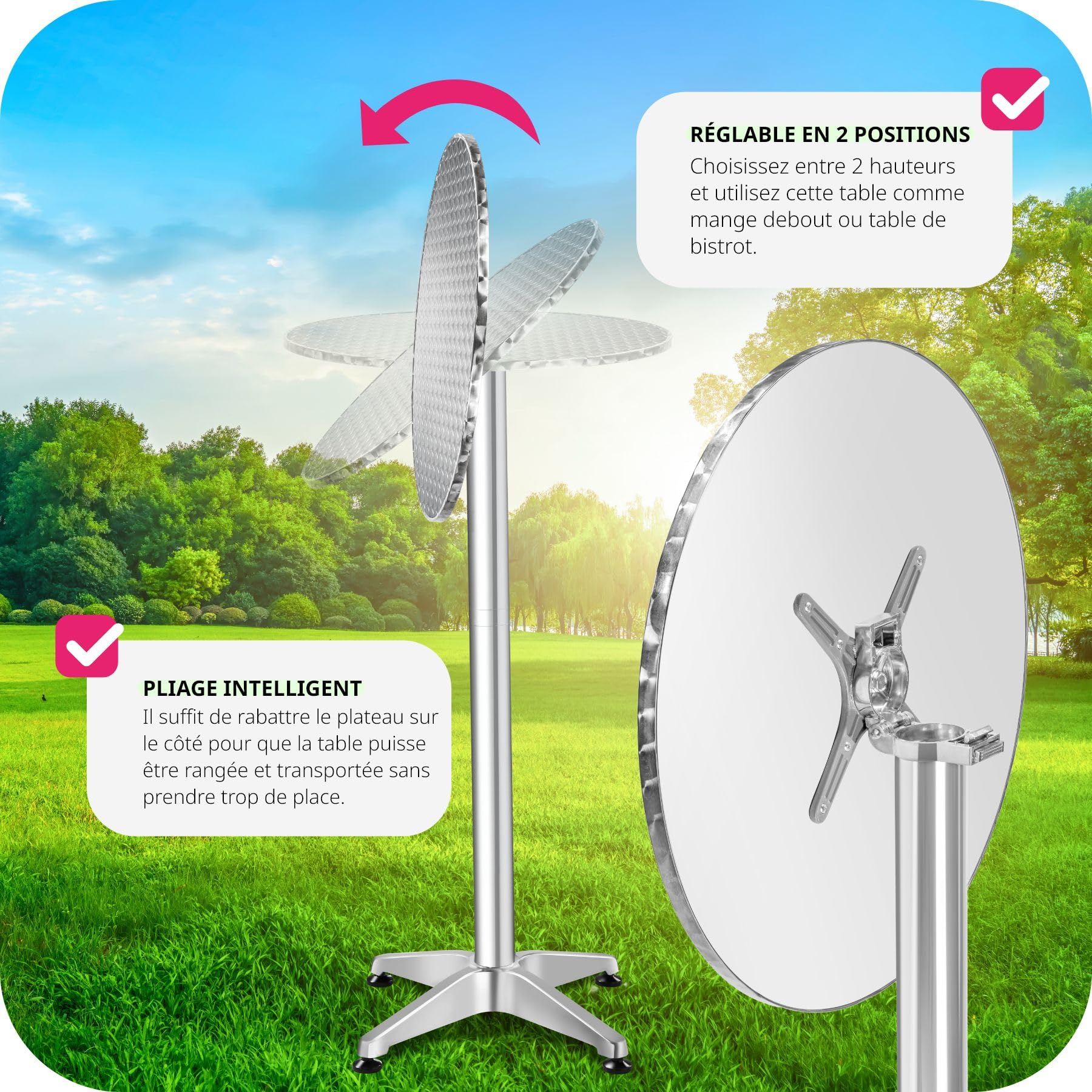 - DESIGN POLYVALENT : Transformez chaque espace avec notre Table de Bistrot! Qu'elle soit utilisée comme table ronde dans votre salle à manger ou comme table mange debout dans votre salon, elle s’adapte à tous vos besoins. Son design compact est parfait pour les petites tables de cuisine ou comme table ronde pliante pour les espaces extérieurs, offrant une polyvalence et un style sans pareils.