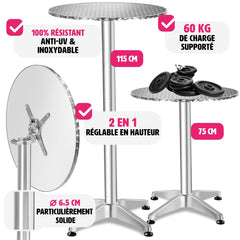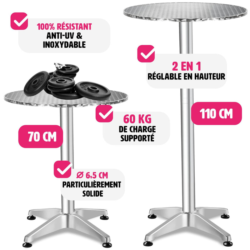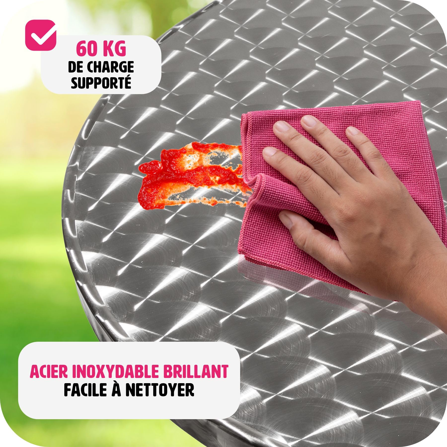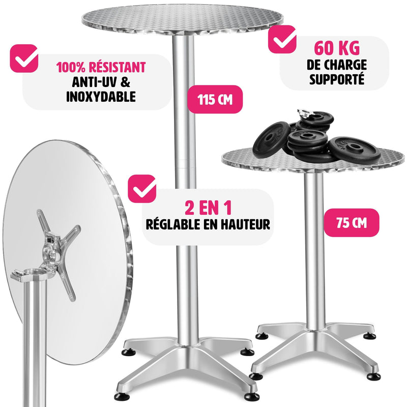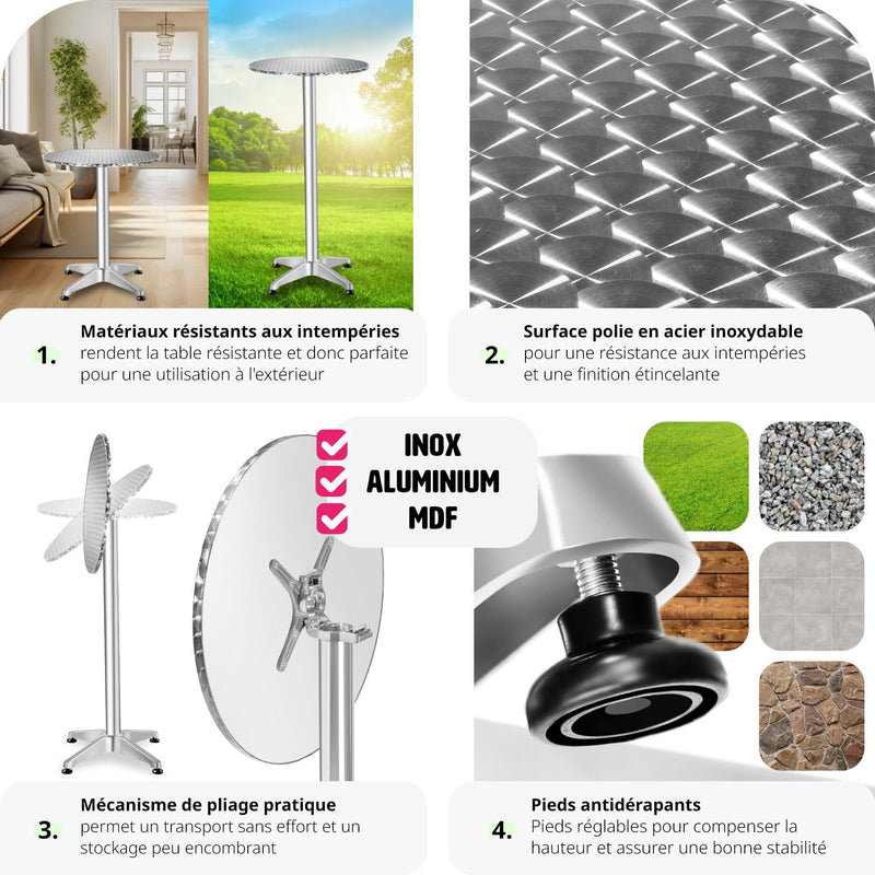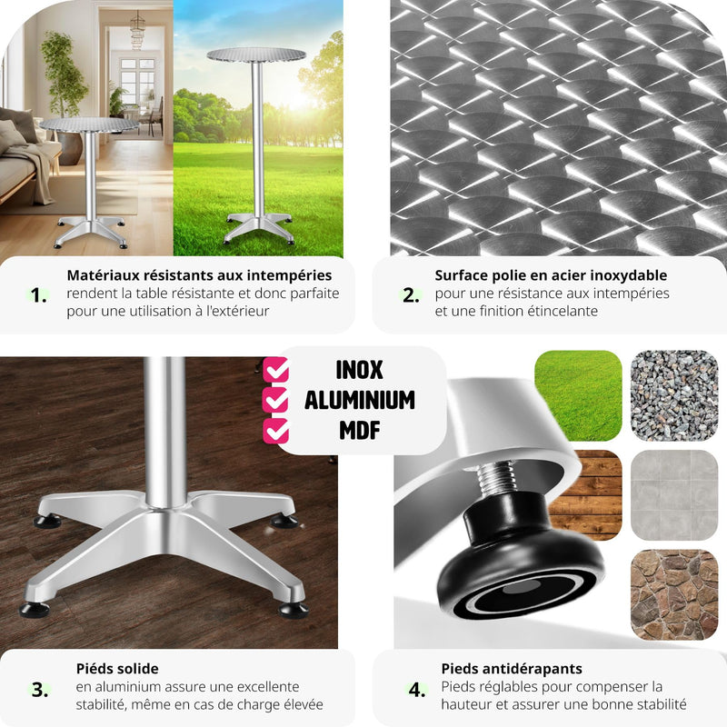 - RÉSISTANCE ÉPROUVÉE : Notre Table de Bistrot résiste à toutes les épreuves! Avec un plateau en MDF recouvert d'acier inoxydable, elle est parfaite pour une utilisation en extérieur comme table de jardin ou comme table haute cuisine. Son élégance naturelle la rend idéale pour les repas extensibles ou les fêtes de famille, offrant une résistance inégalée aux intempéries et à l'usure quotidienne.