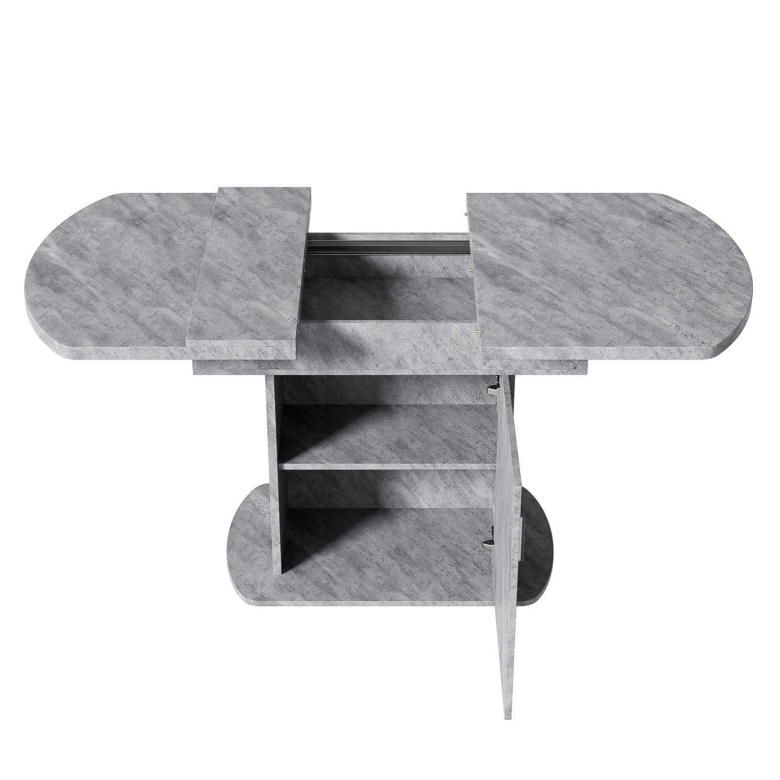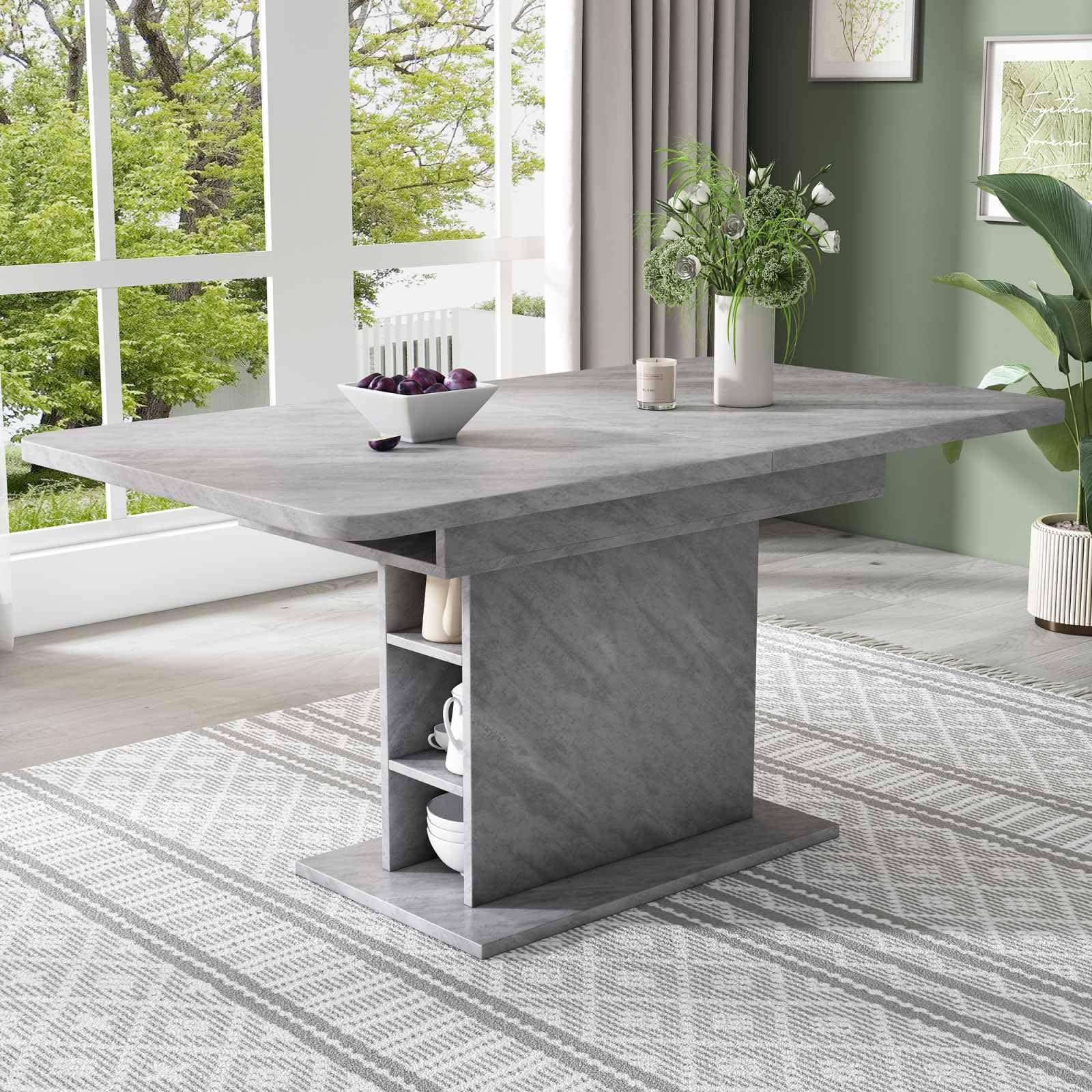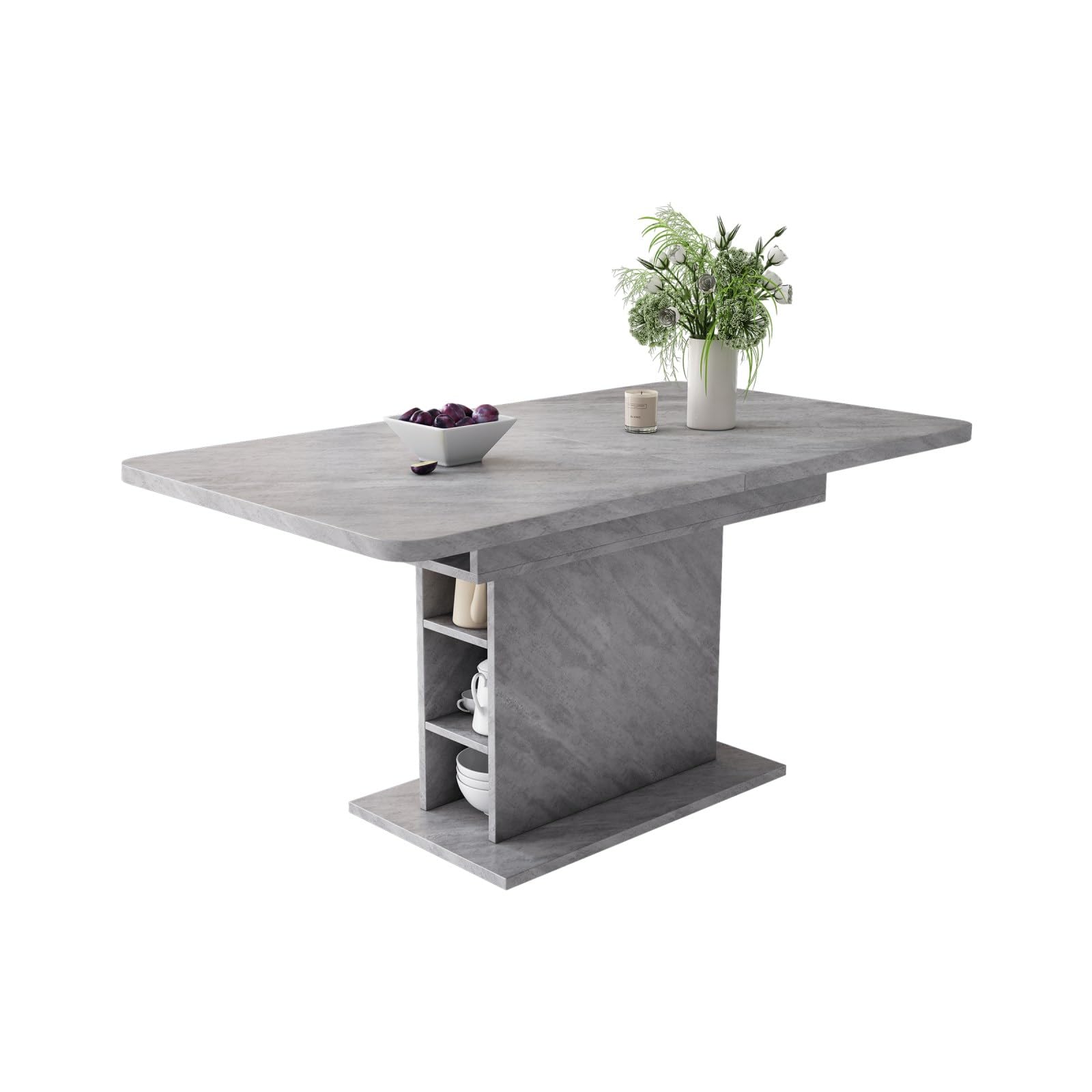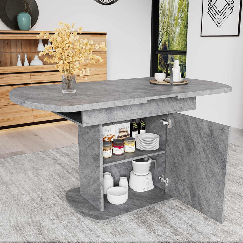 Grâce à sa conception télescopique unique, cette table de salle à manger peut facilement ajuster la longueur du plateau en fonction des besoins, qu'il s'agisse de petits rassemblements ou de dîners en famille. Le meuble de rangement situé sous la table est à la fois esthétique et pratique, car il permet d'organiser les objets et de garder la salle à manger bien rangée. Sa polyvalence permet de transformer la table en table de travail ou en espace créatif en dehors des repas, ce qui en fait un outil pratique pour la vie de famille. Élégante et spacieuse, elle allie une simplicité moderne à des éléments vintage classiques pour s'adapter à un large éventail de styles d'intérieur. La table est disponible en blanc et en gris, en trois styles pour répondre aux préférences esthétiques des différents utilisateurs.
