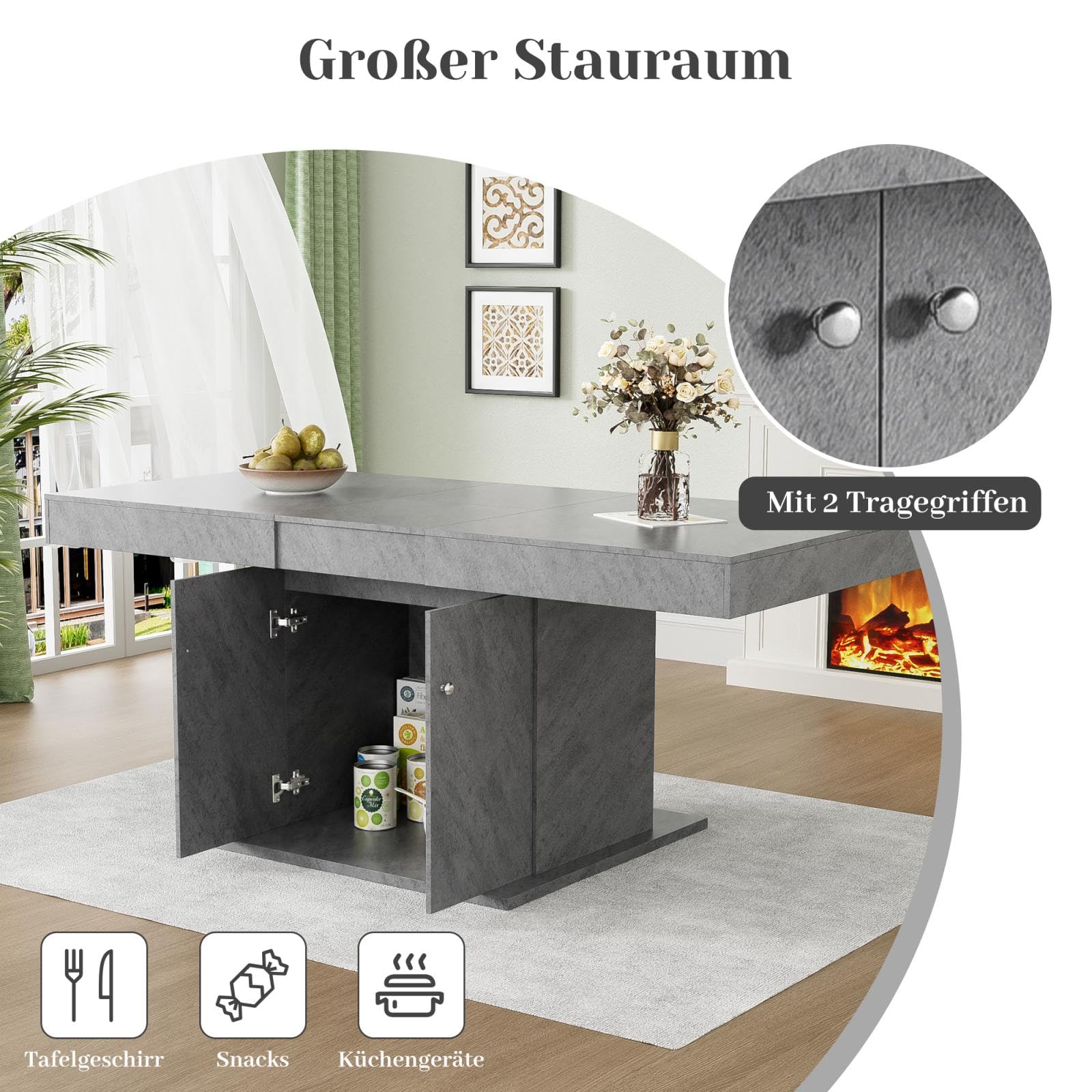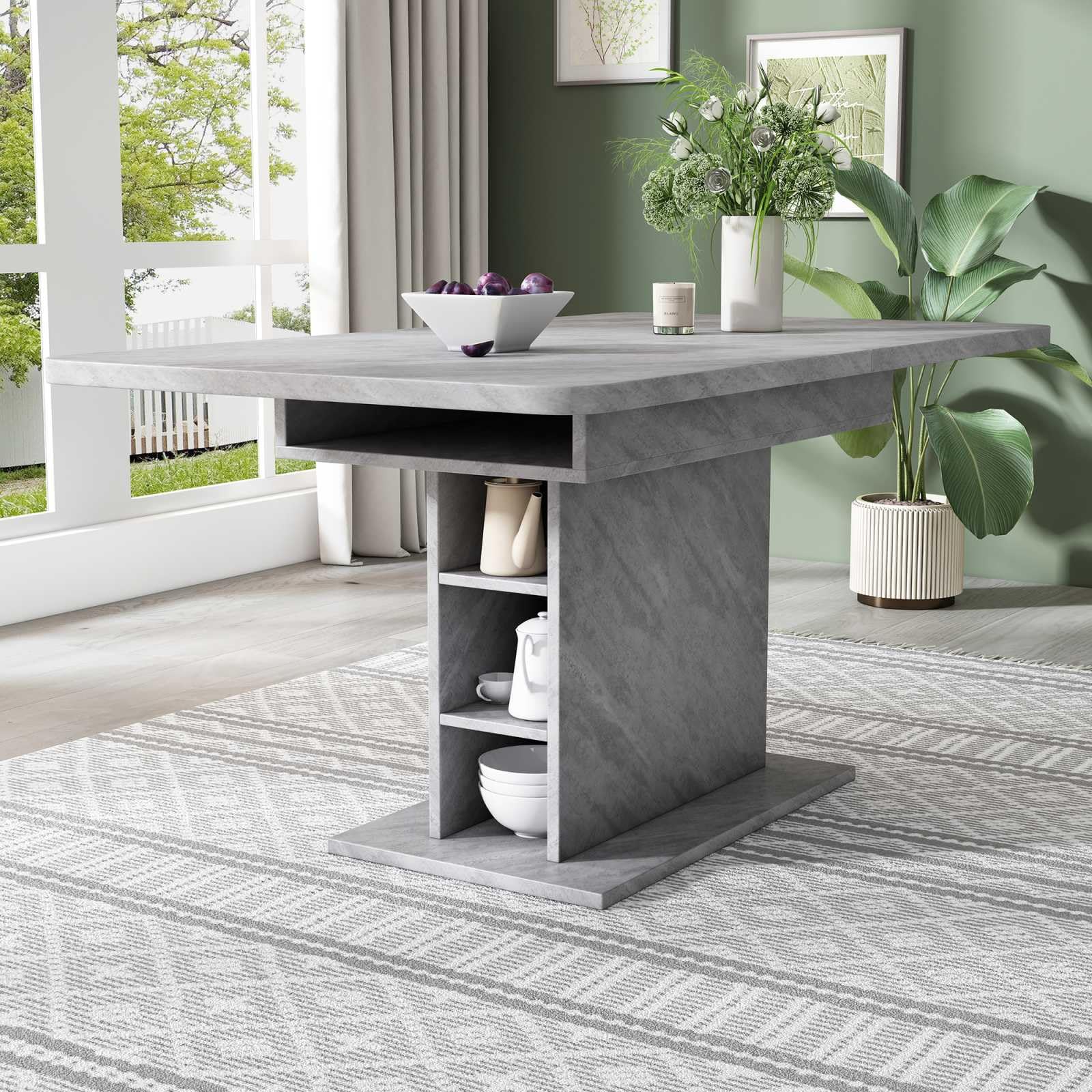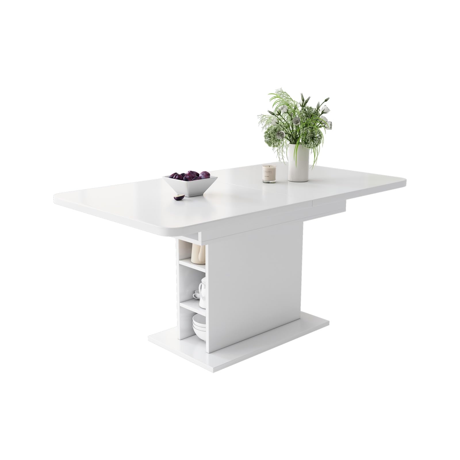 Grâce à sa conception télescopique unique, cette table de salle à manger peut facilement ajuster la longueur du plateau en fonction des besoins, qu'il s'agisse de petits rassemblements ou de dîners en famille. Le meuble de rangement situé sous la table est à la fois esthétique et pratique, car il permet d'organiser les objets et de garder la salle à manger bien rangée. Sa polyvalence permet de transformer la table en table de travail ou en espace créatif en dehors des repas, ce qui en fait un outil pratique pour la vie de famille. Élégante et spacieuse, elle allie une simplicité moderne à des éléments vintage classiques pour s'adapter à un large éventail de styles d'intérieur. La table est disponible en blanc et en gris, en trois styles pour répondre aux préférences esthétiques des différents utilisateurs.