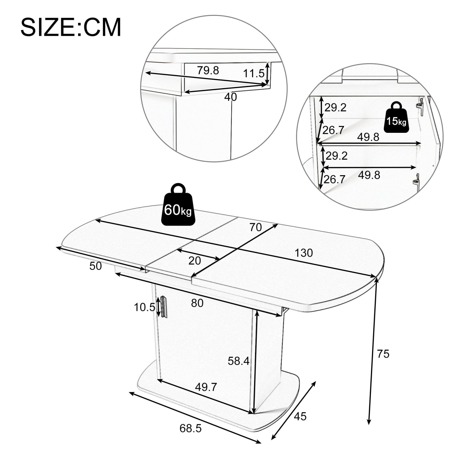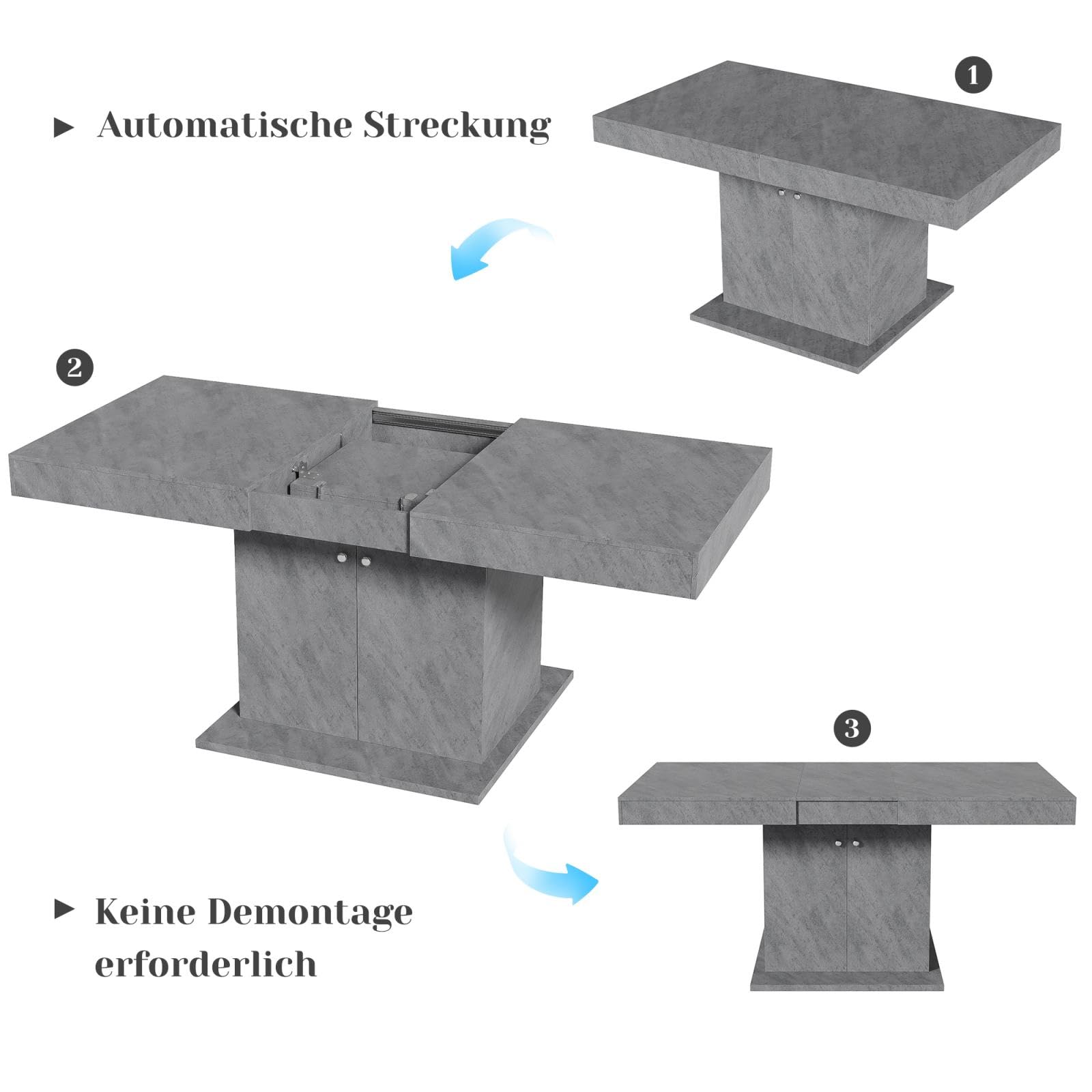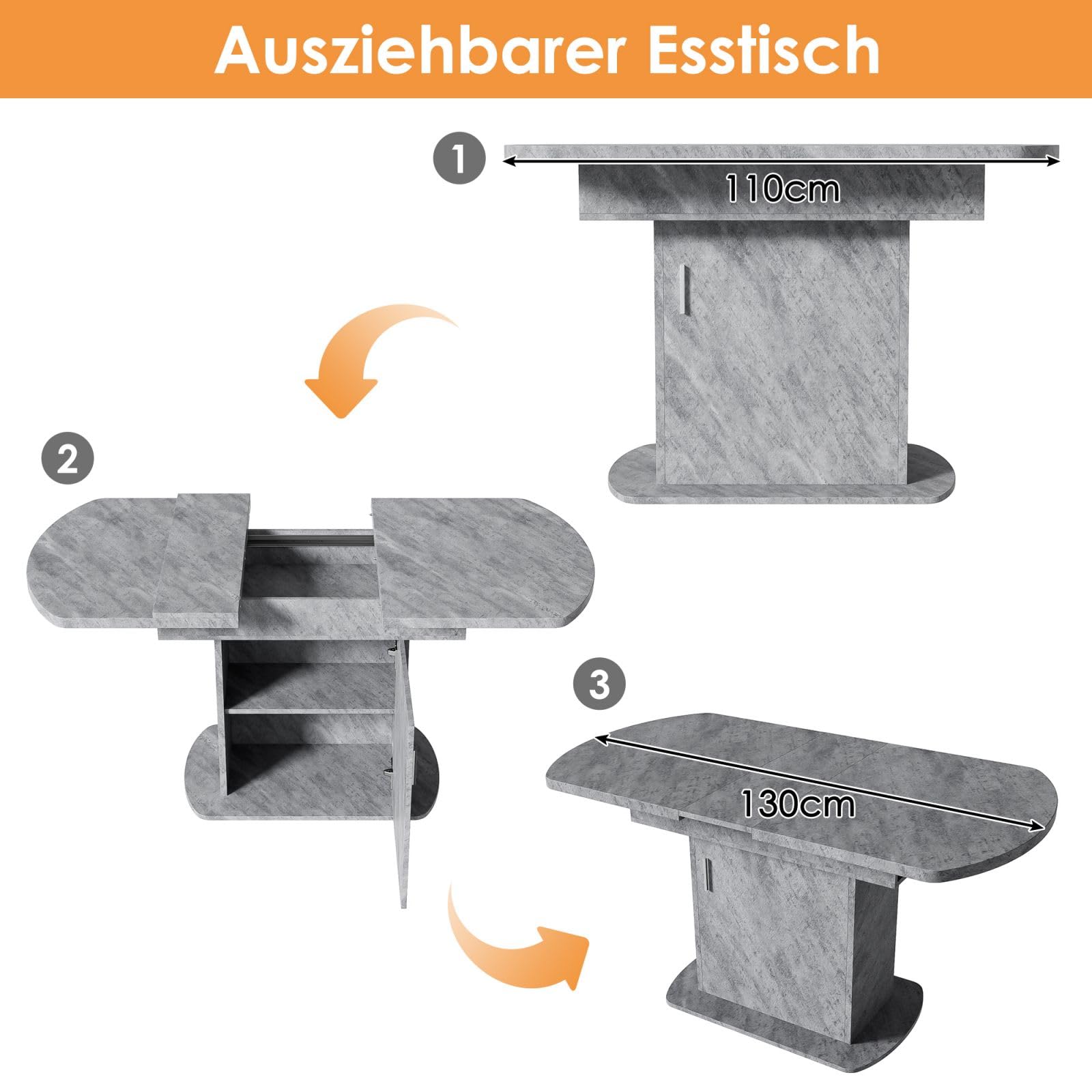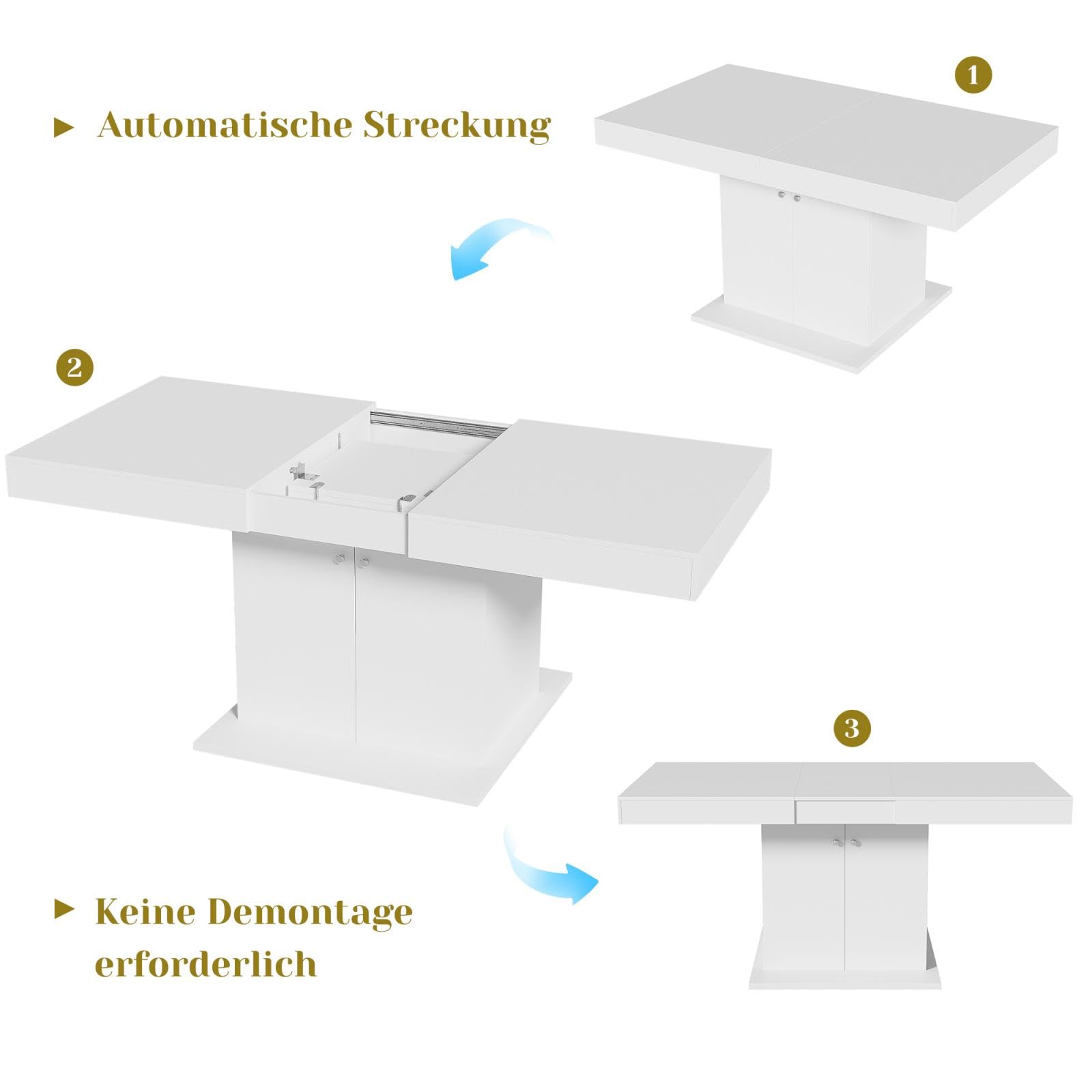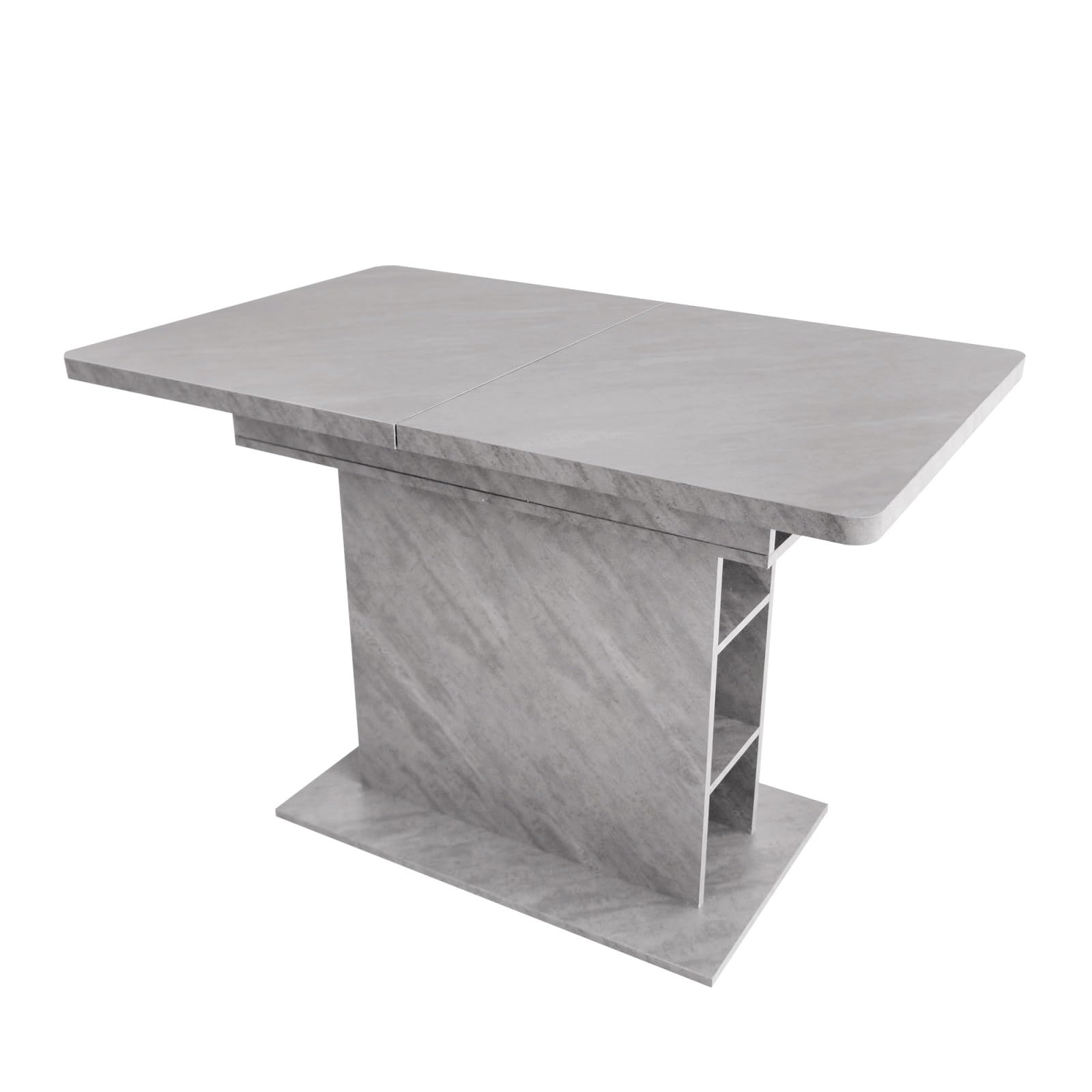 - Conception flexible de l'extension du plateau de table : Cette table de salle à manger est dotée d'une conception télescopique unique qui vous permet d'ajuster facilement la longueur et la taille du plateau de la table en fonction de vos besoins réels. Cette conception permet non seulement d'augmenter l'espace de repas, mais aussi la flexibilité et la polyvalence de la table, ce qui la rend adaptable à différents types de repas, qu'il s'agisse d'une petite fête ou d'un dîner en famille, qui peuvent être gérés avec facilité.