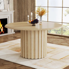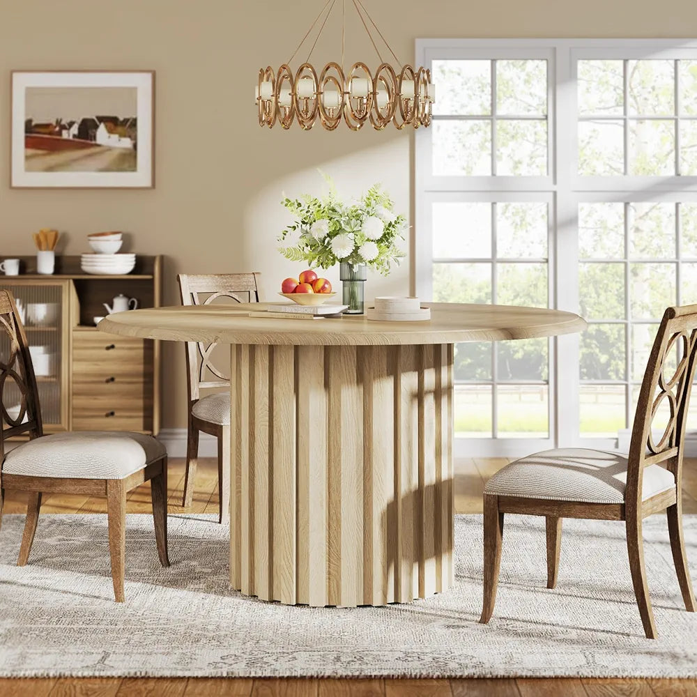 - Design élégant : cette grande table à manger allie l'esthétique moderne au style campagnard, avec une base ronde et un plateau de table texturé en bois transparent. Elle constitue un ajout chaleureux et accueillant à n'importe quelle pièce.