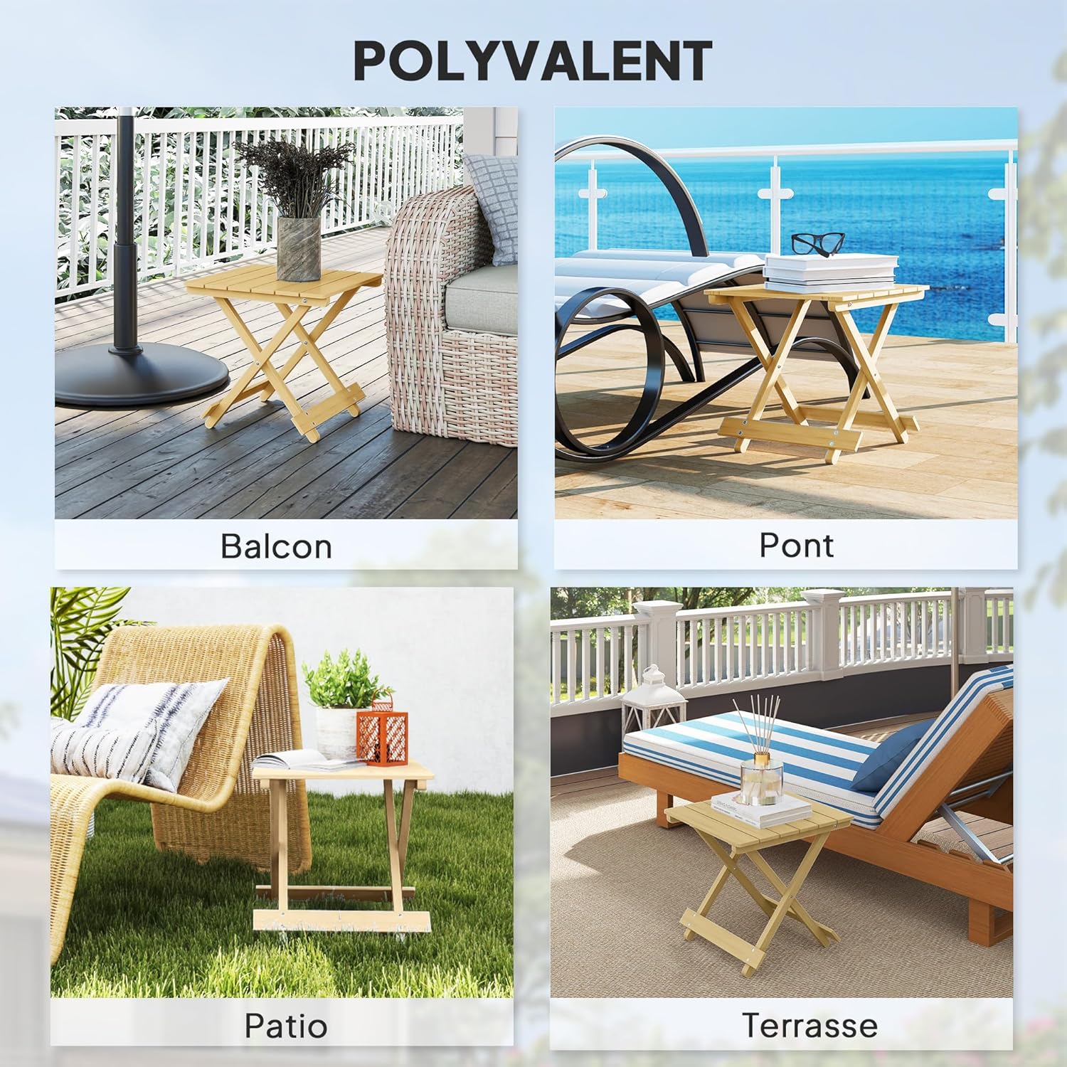 - POLYVALENCE ASSURÉE : Agissant comme table d'extérieur ou table d'appoint pliable, cette table basse de jardin en bois massif est parfaitement adaptée à un usage aussi bien intérieur qu'extérieur